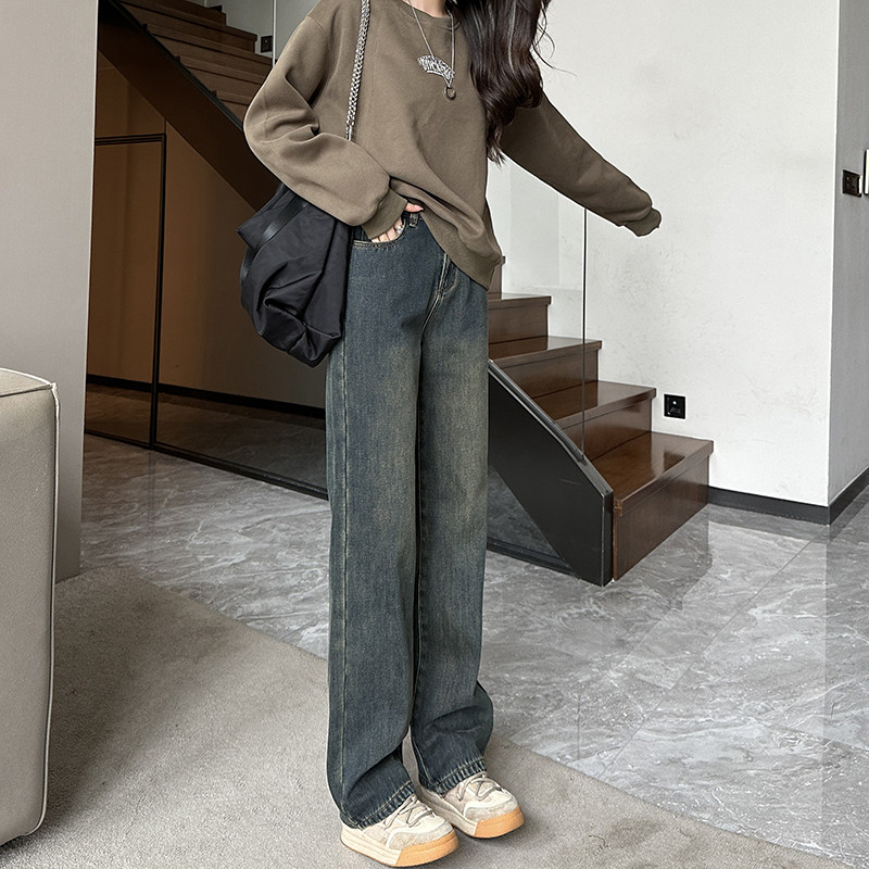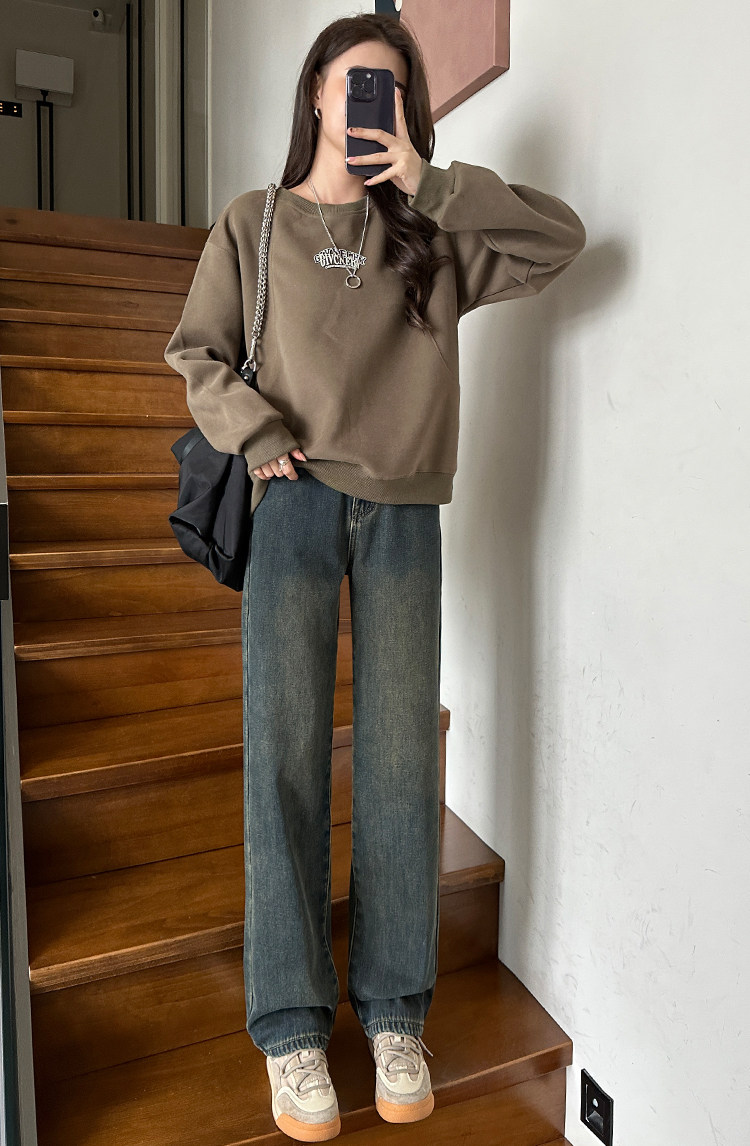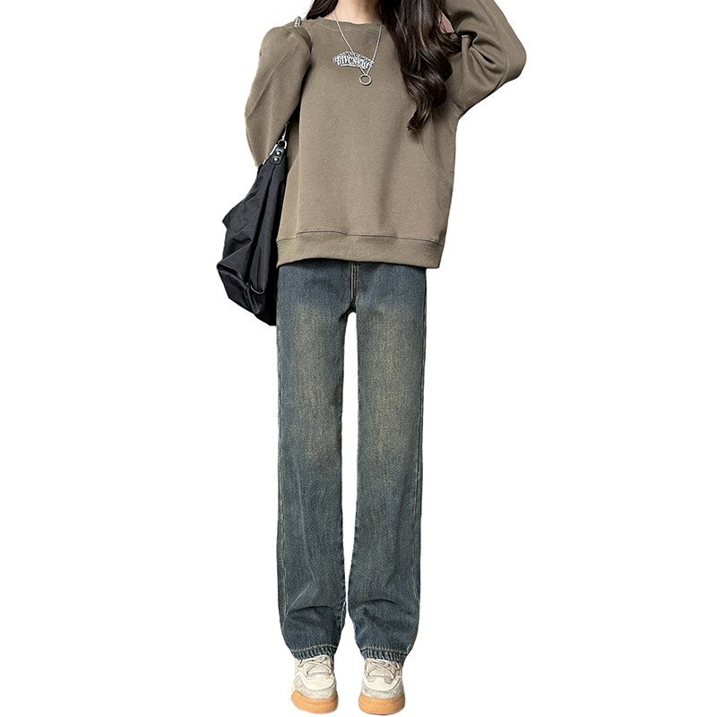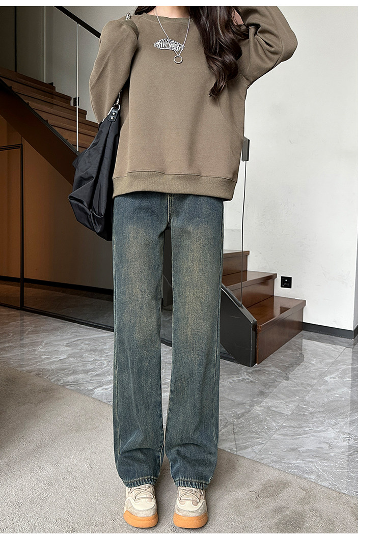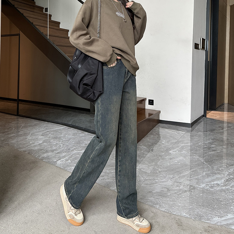 Демисезонные джинсы с начесом, штаны, приталенные леггинсы, высокая талия, свободный прямой крой