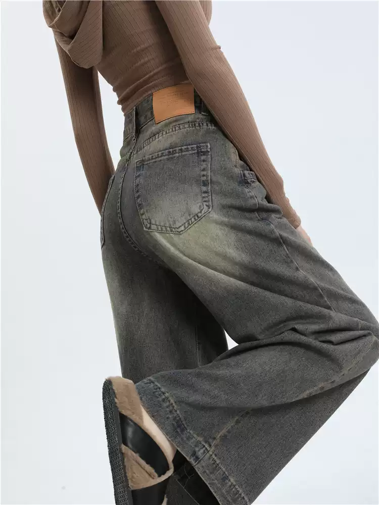 Ретро демисезонные джинсы, штаны, леггинсы, высокая талия, свободный прямой крой
