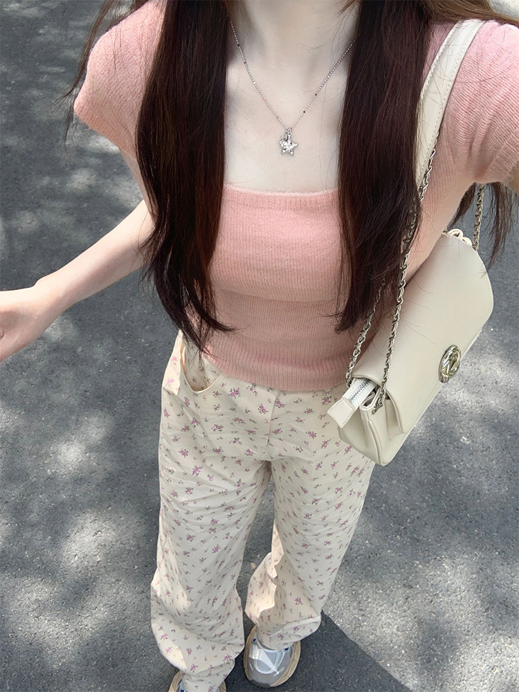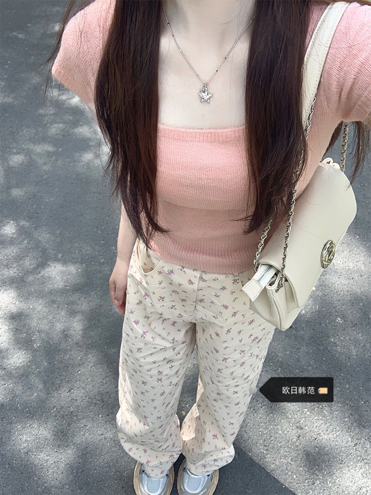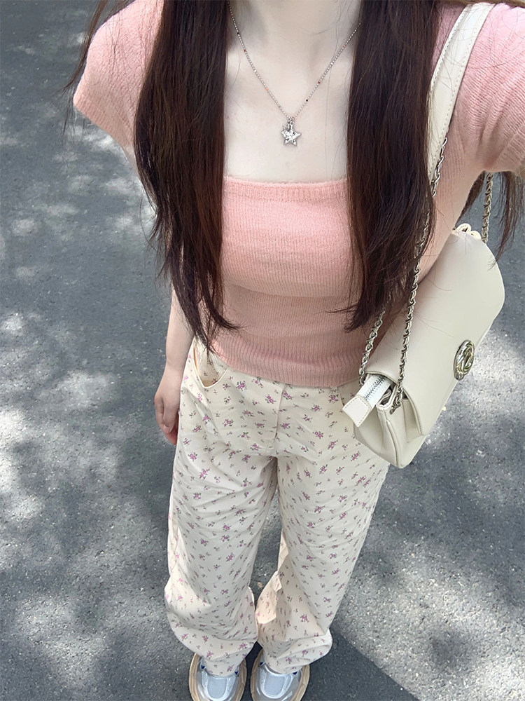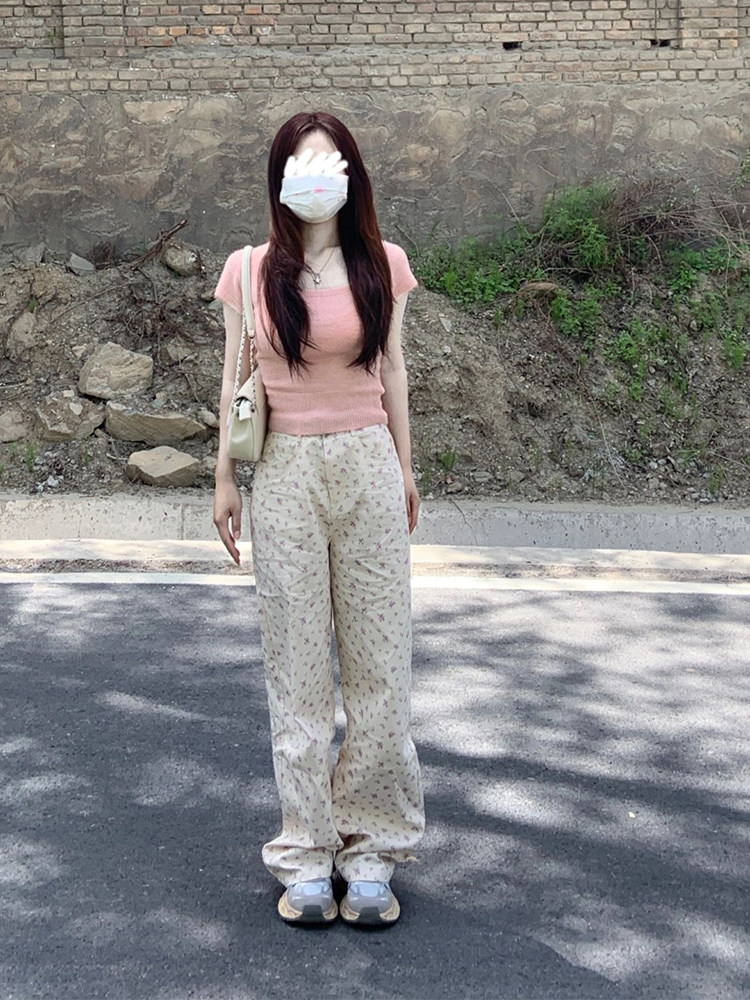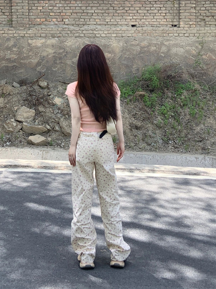 Бежевые демисезонные прямые свободные джинсы, штаны, приталенные леггинсы, большой размер, цветочный принт, оверсайз