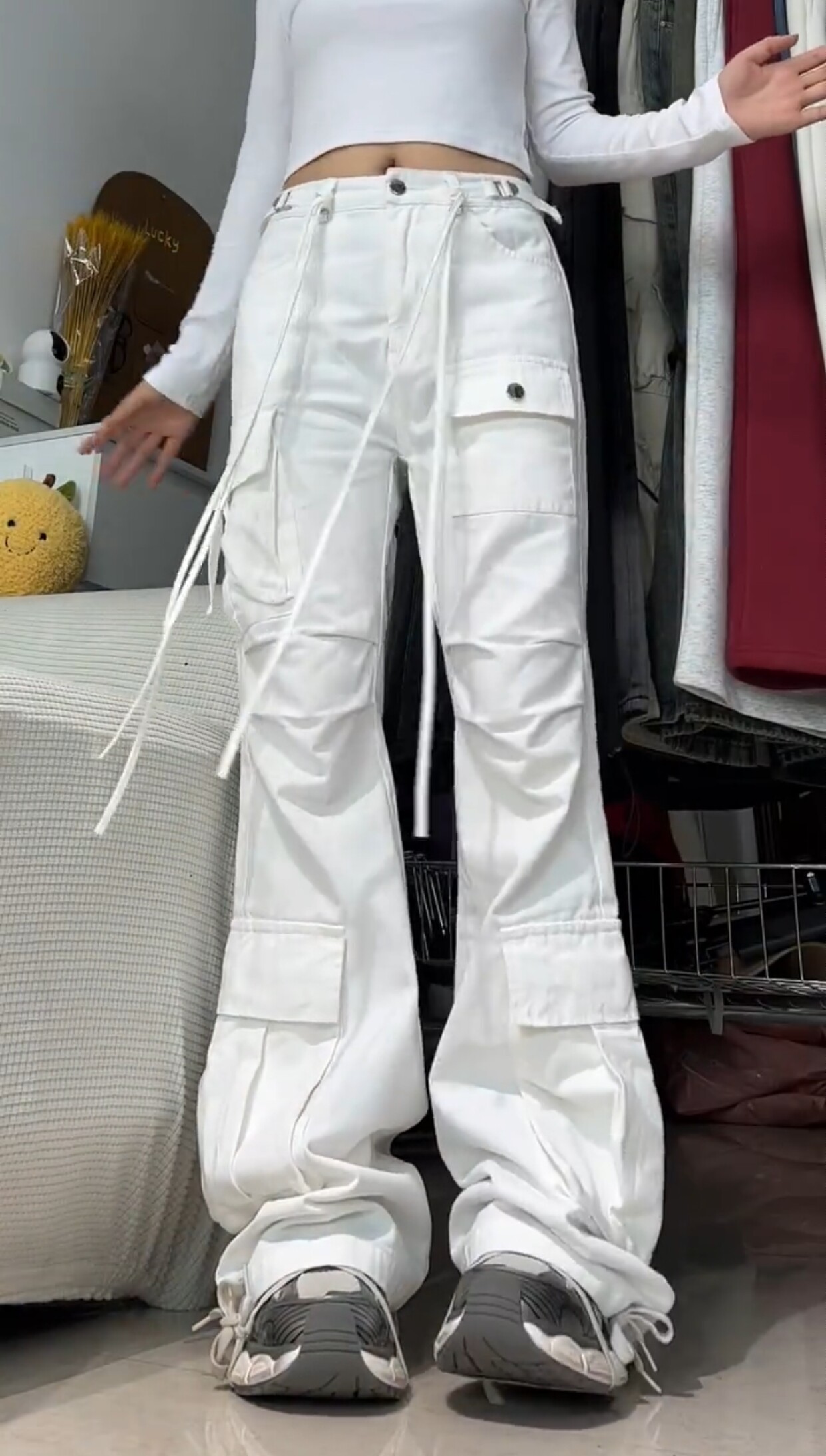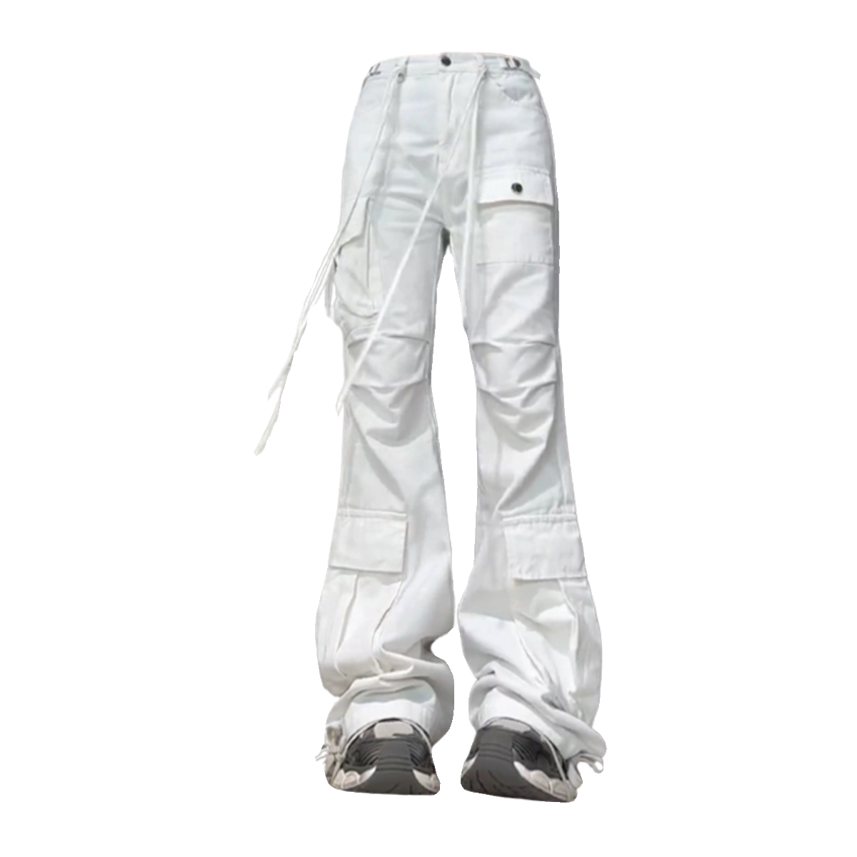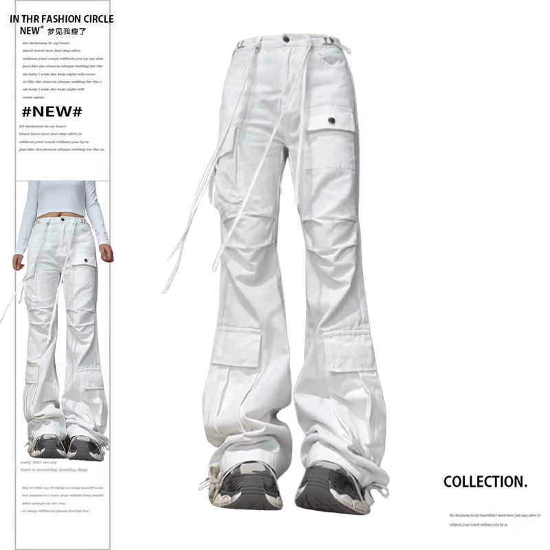 Белые демисезонные джинсы, штаны, дизайнерские леггинсы для отдыха, большой размер, в американском стиле, тренд сезона, высокая талия, свободный крой
