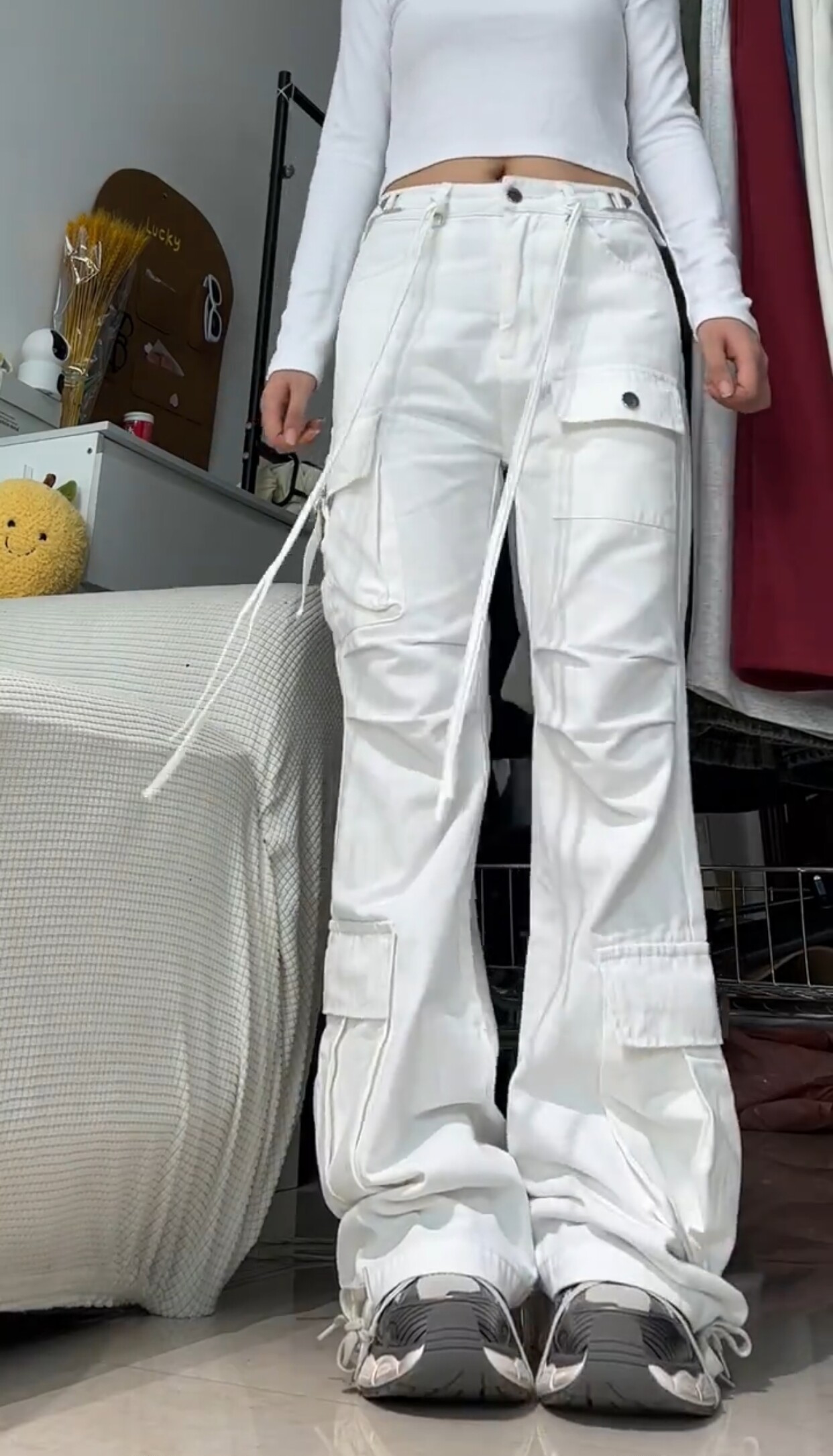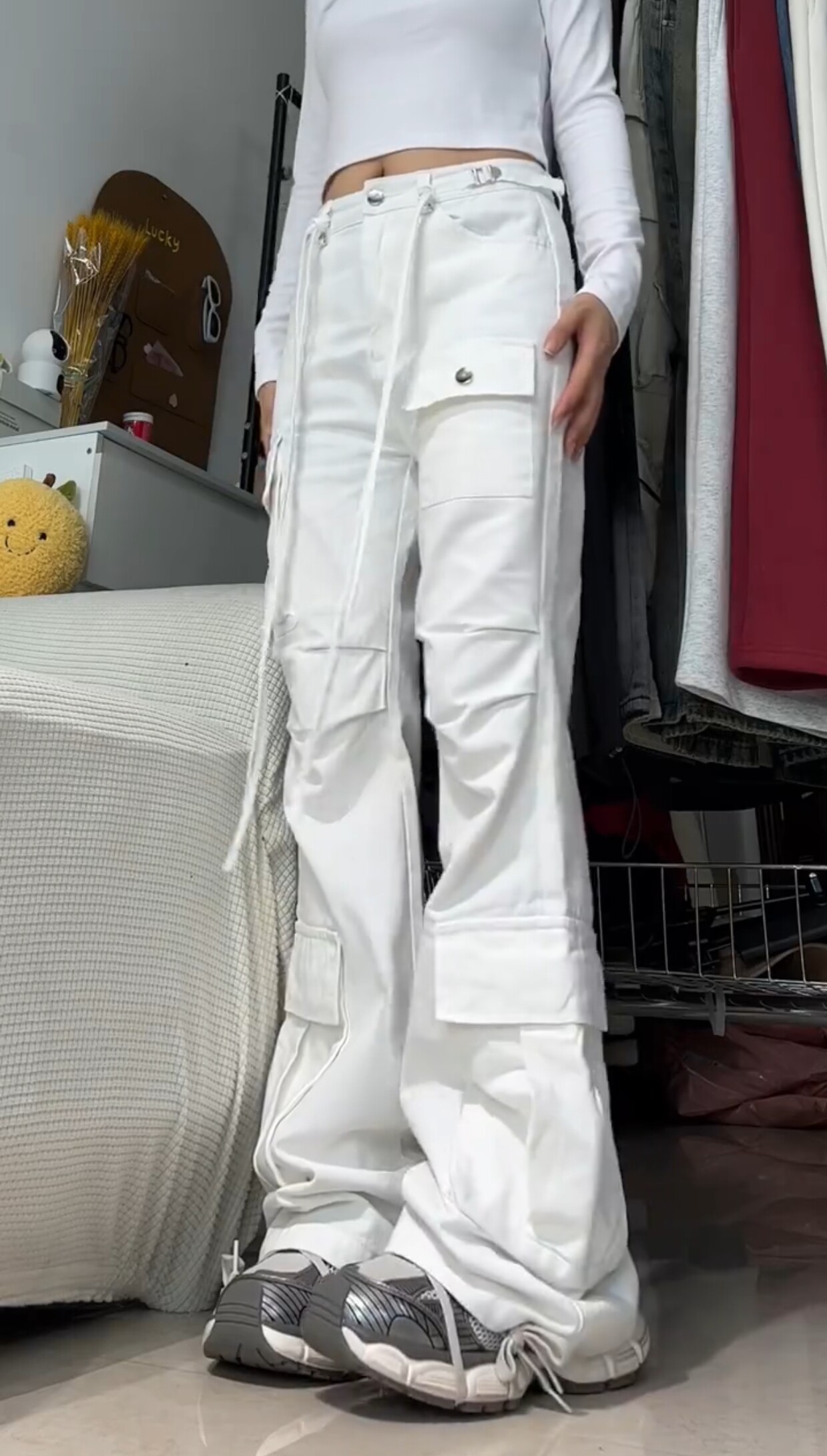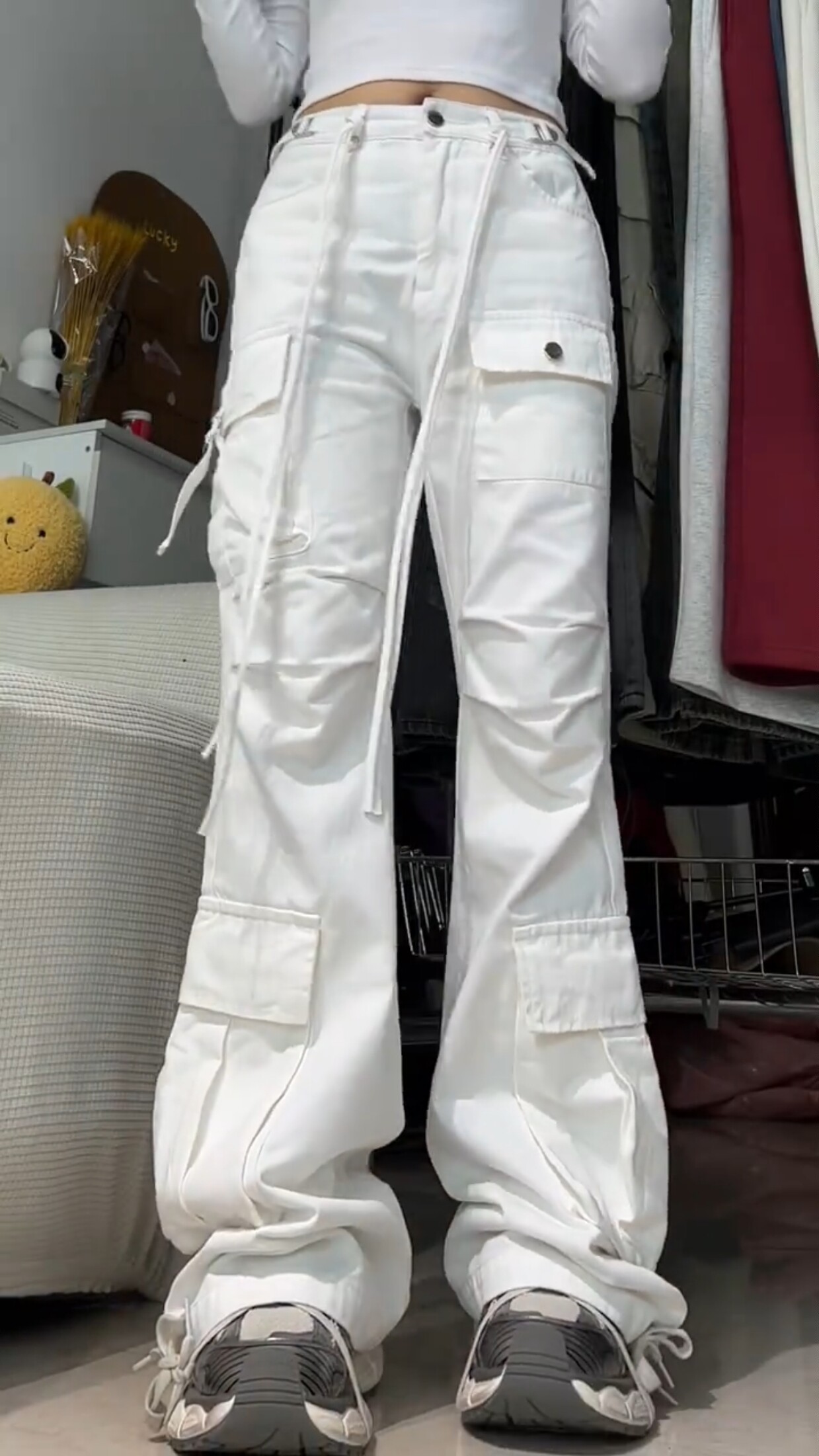 Белые демисезонные джинсы, штаны, дизайнерские леггинсы для отдыха, большой размер, в американском стиле, тренд сезона, высокая талия, свободный крой