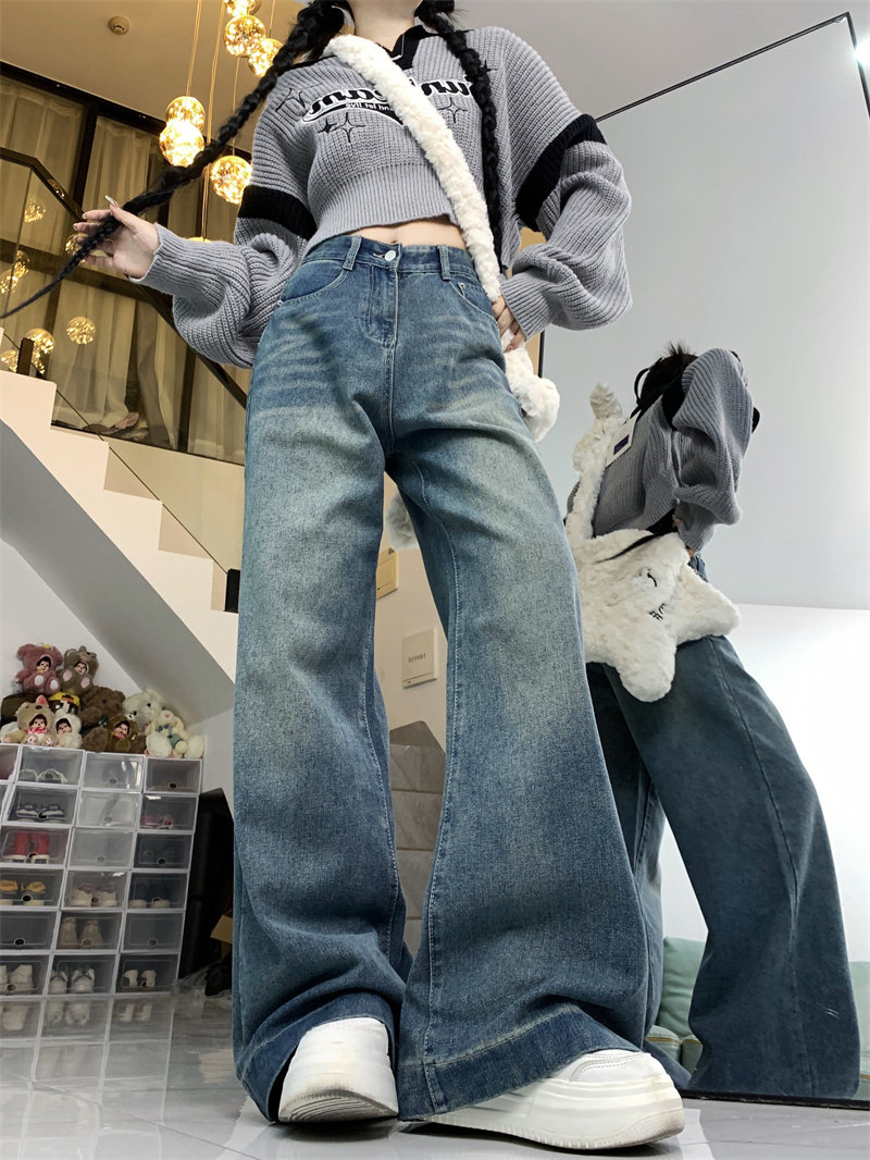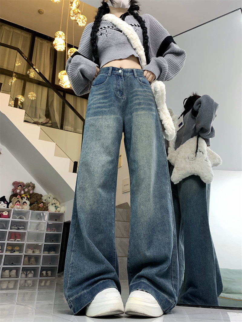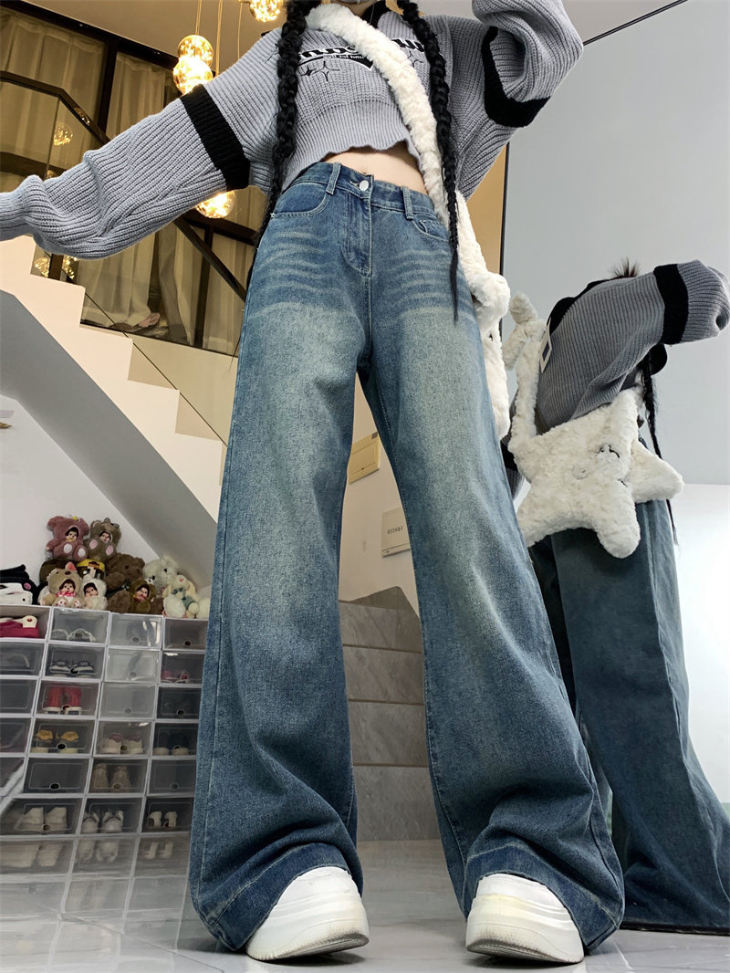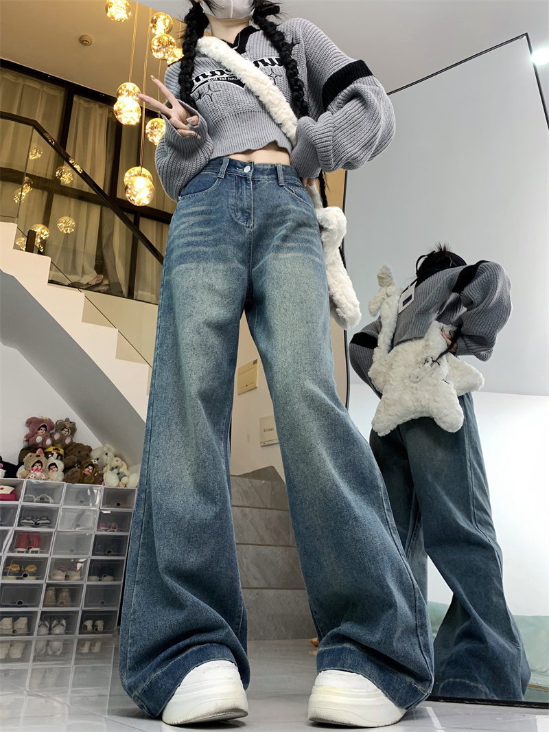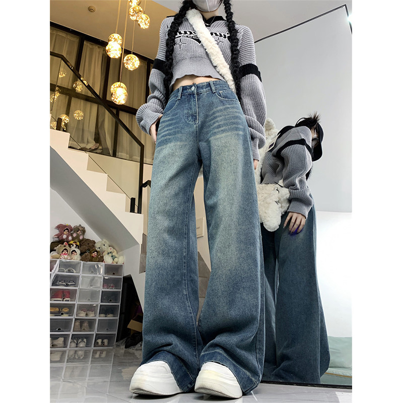 Ретро осенние джинсы, дизайнерские штаны, большой размер, в американском стиле, оверсайз, высокая талия, свободный прямой крой