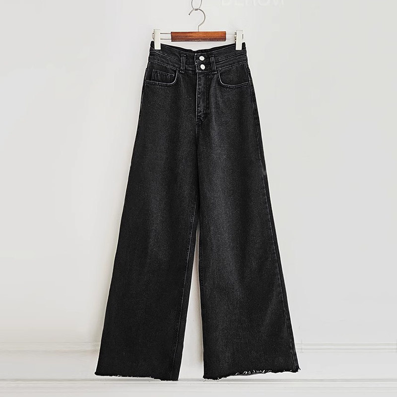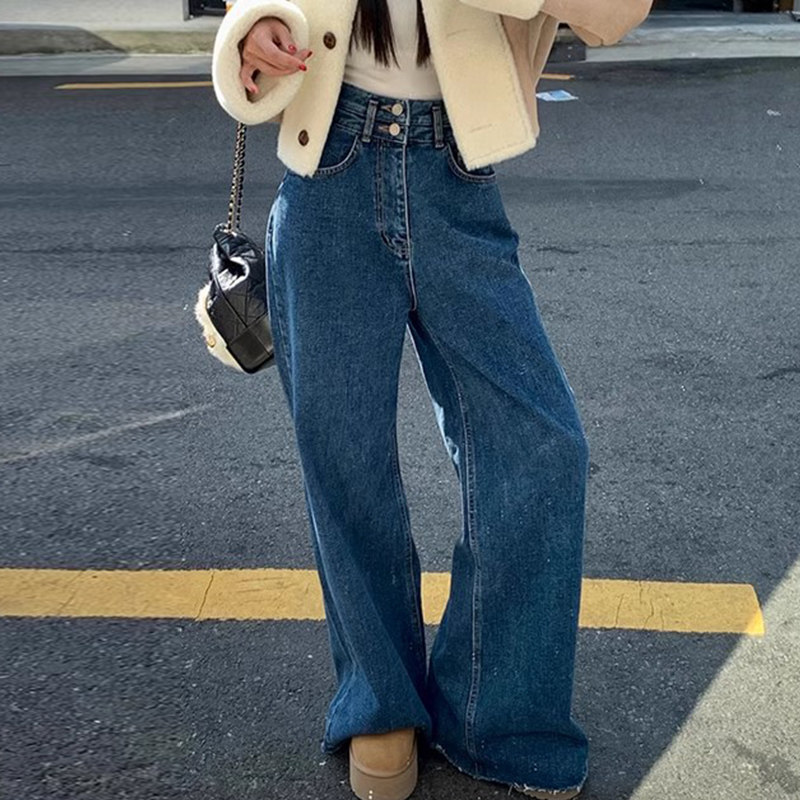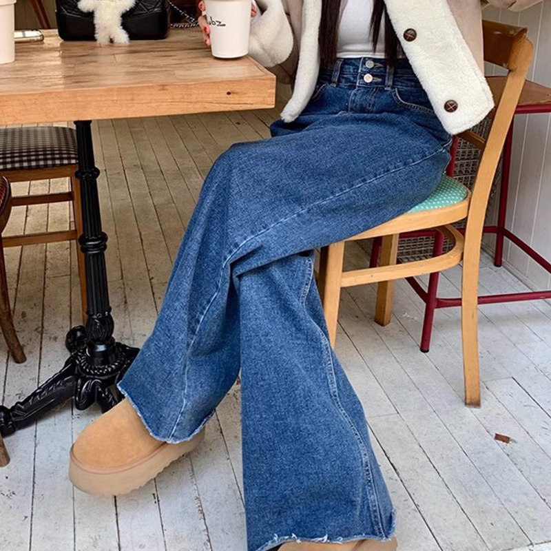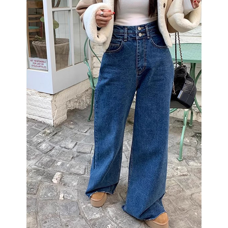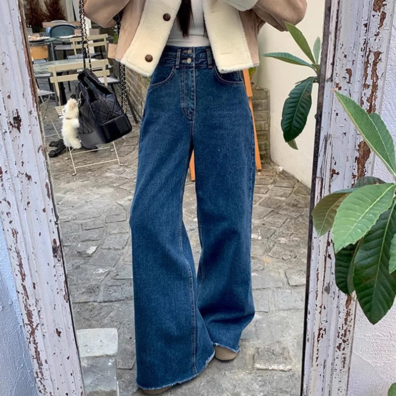 Демисезонные ретро дизайнерские штаны, джинсы, в корейском стиле, высокая талия