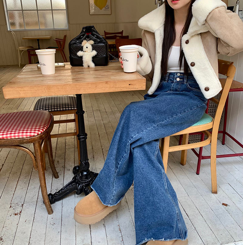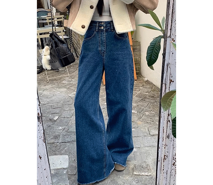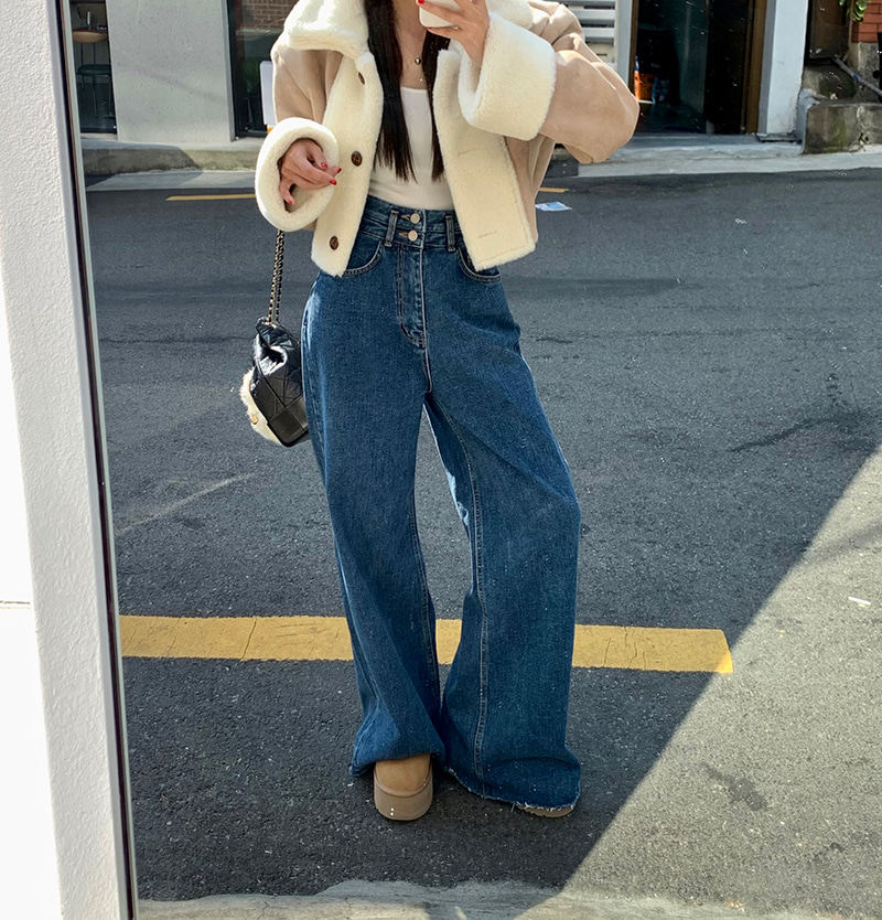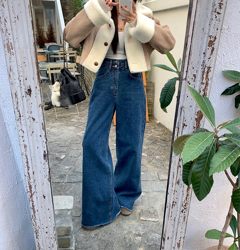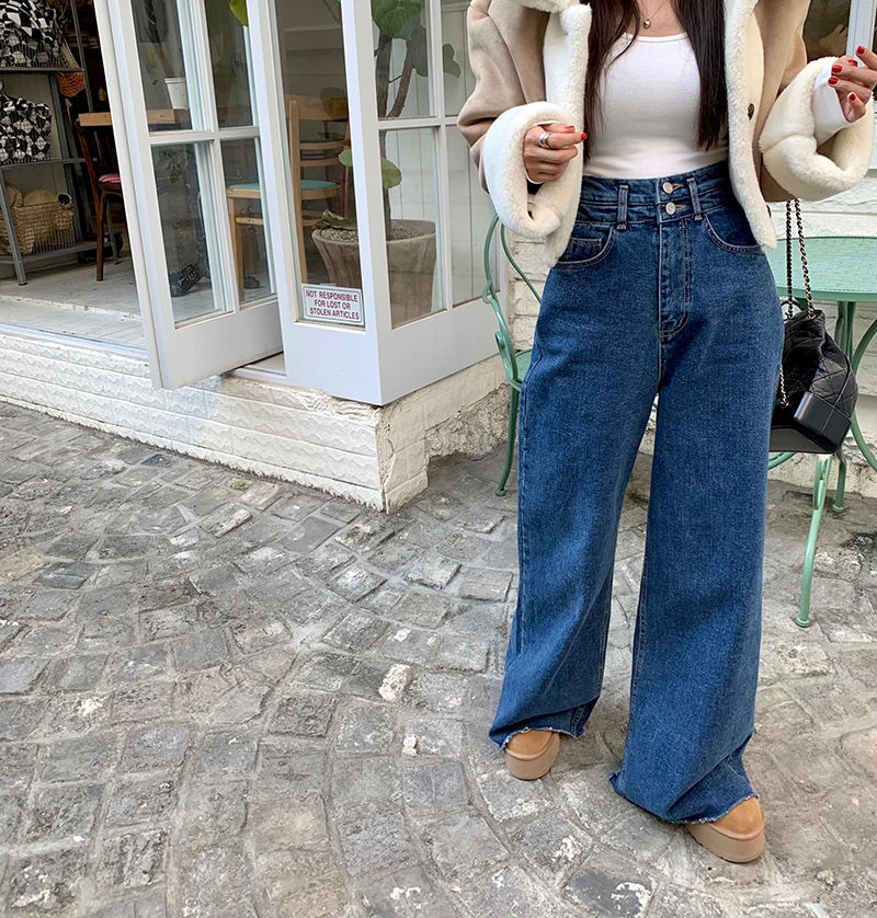 Демисезонные ретро дизайнерские штаны, джинсы, в корейском стиле, высокая талия