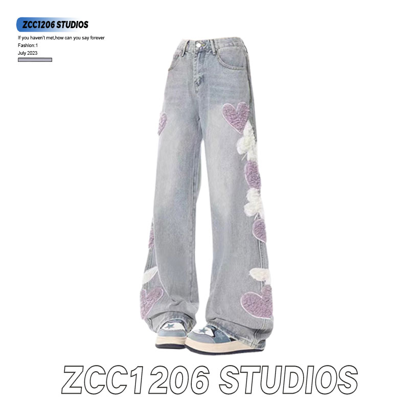 Брендовые ретро джинсы, дизайнерские штаны, в американском стиле, с вышивкой, высокая талия, оверсайз, свободный прямой крой