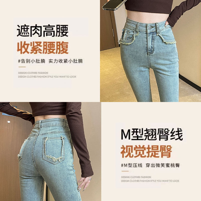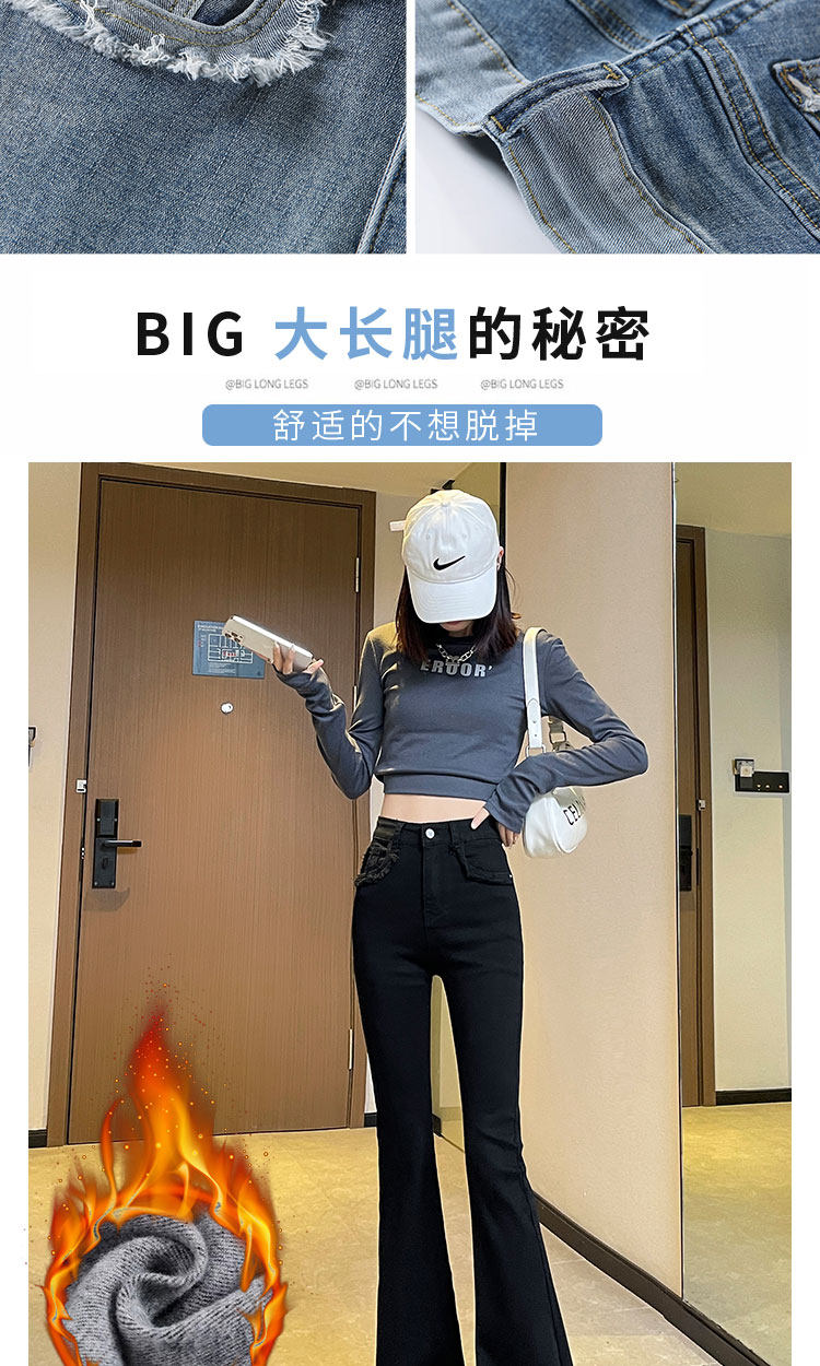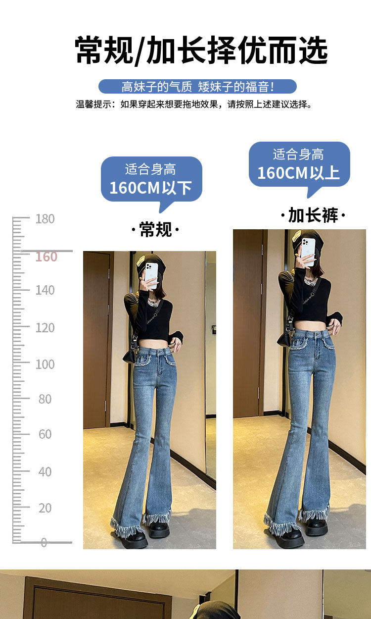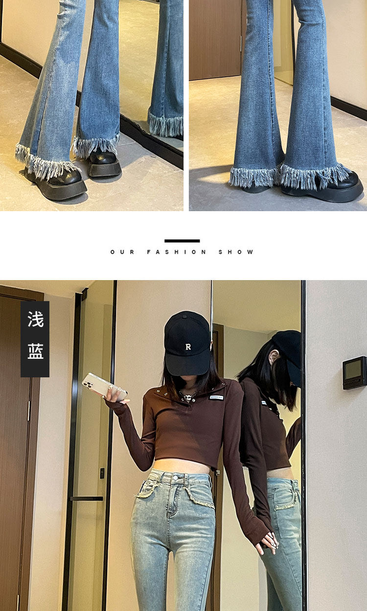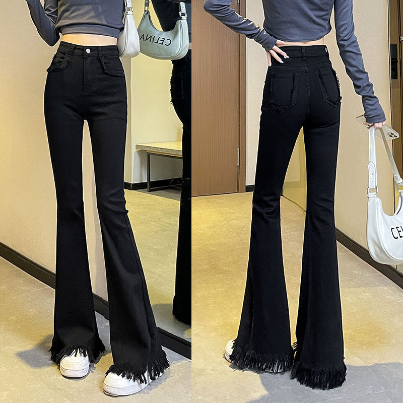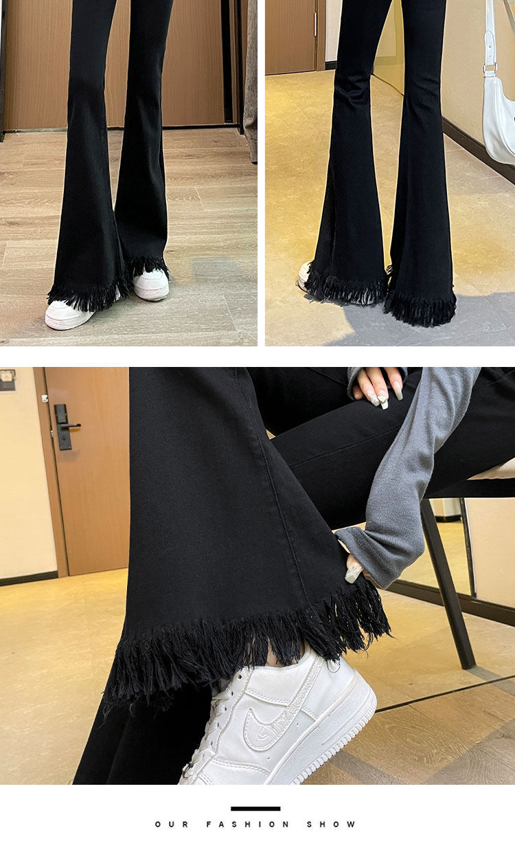 Черные демисезонные джинсы с начесом, штаны, приталенные леггинсы, штаны-клёш с кисточками, высокая талия, облегающий крой