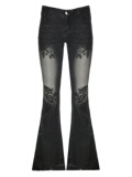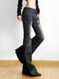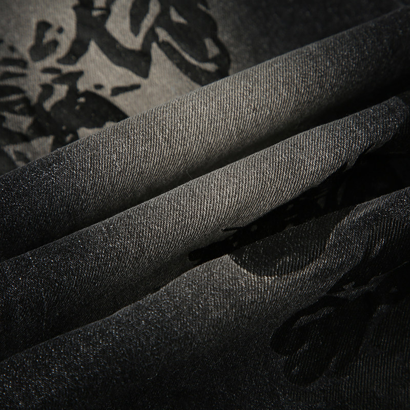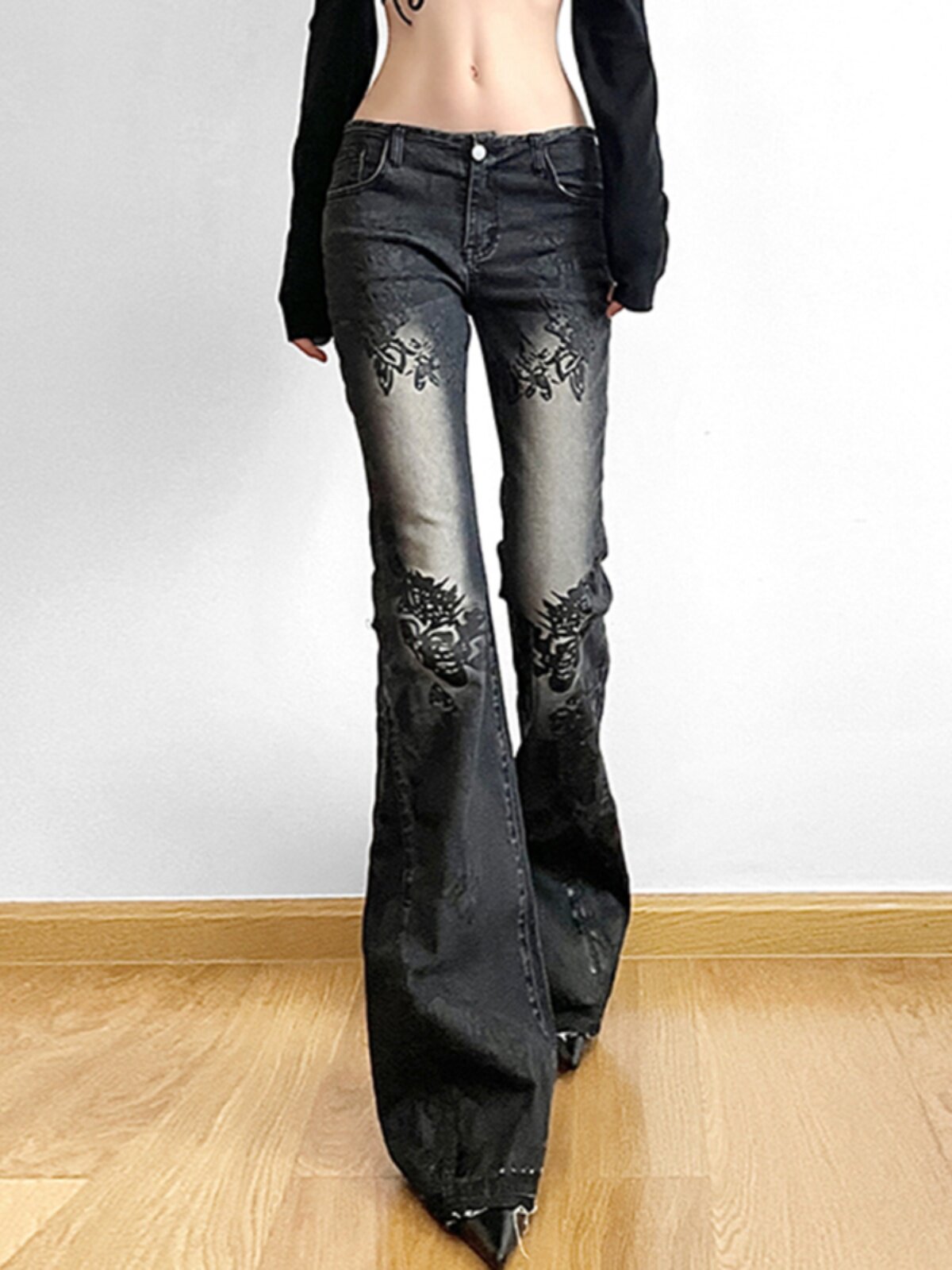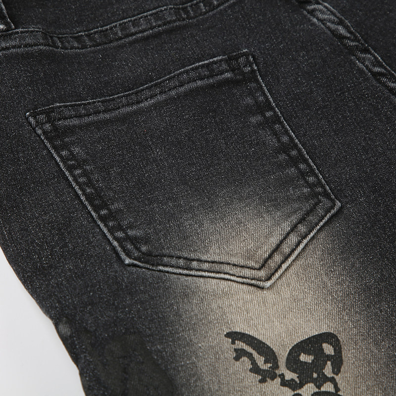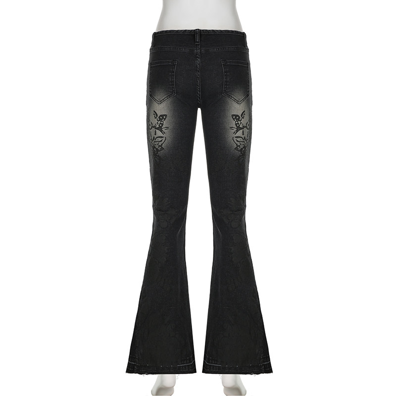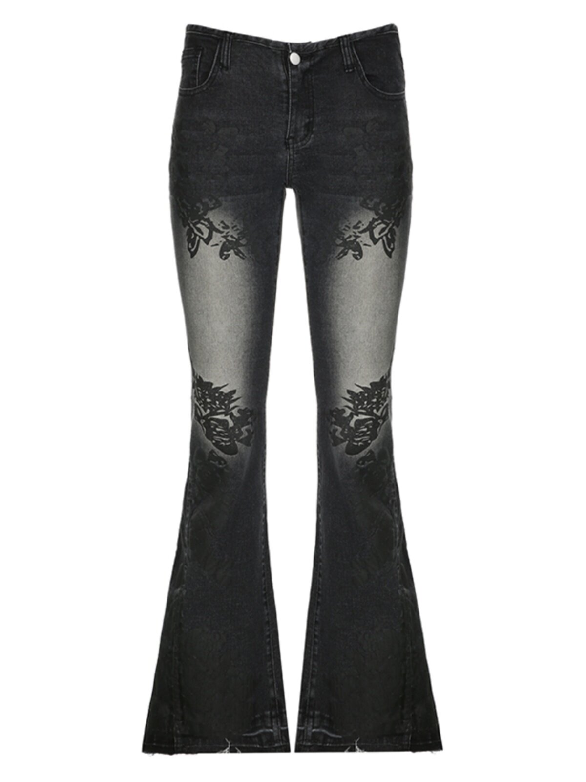 ROCKMORE [Yabi Retrospective] модные узкие расклешенные джинсы с заниженной талией и винтажным растительным принтом