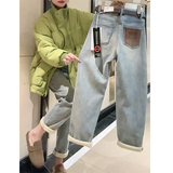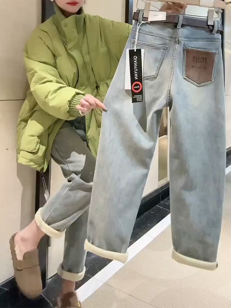 Утепленные штаны, демисезонные джинсы, леггинсы, большой размер, свободный прямой крой, для формы тела «груша»