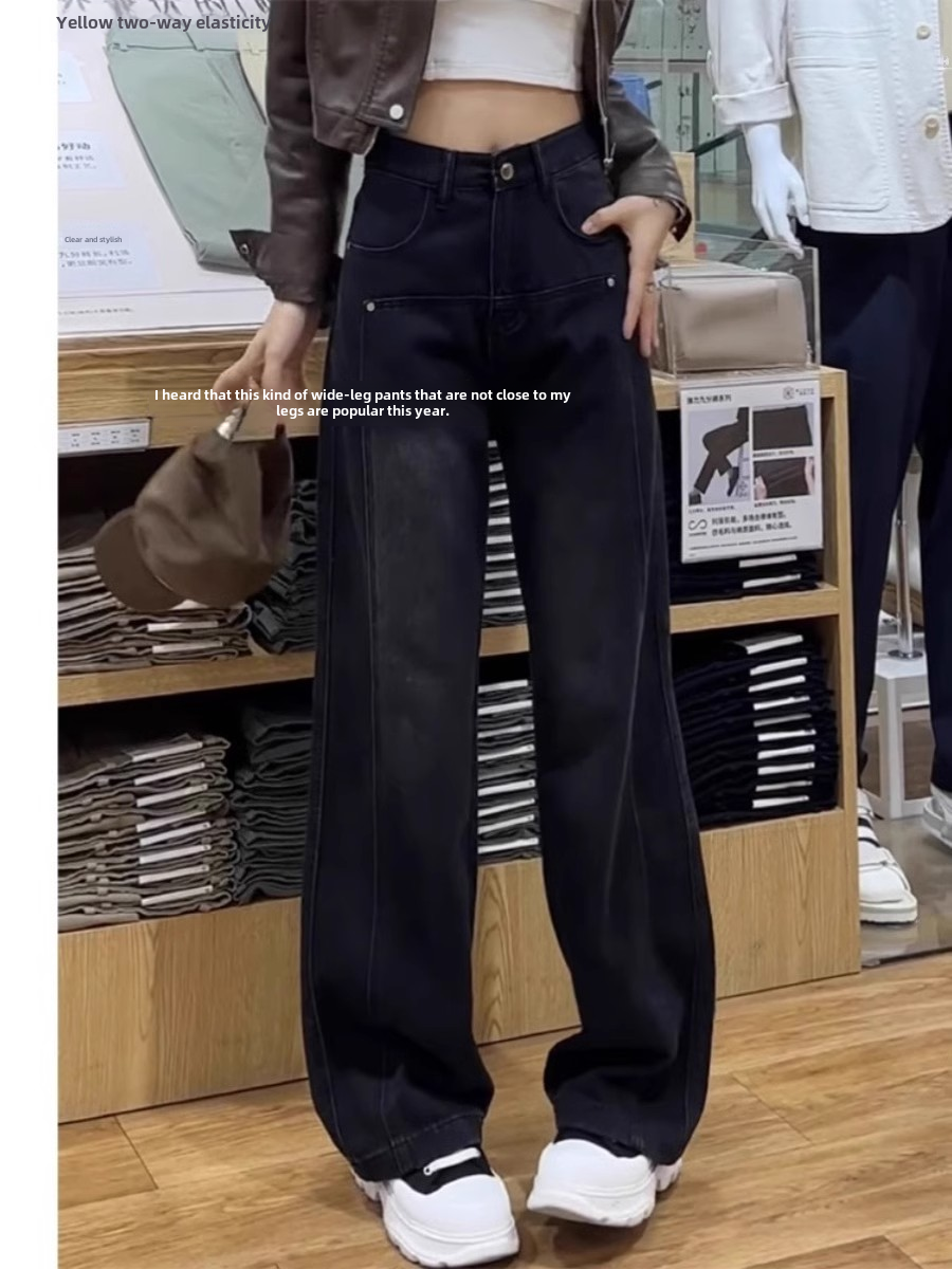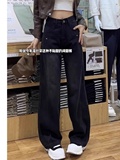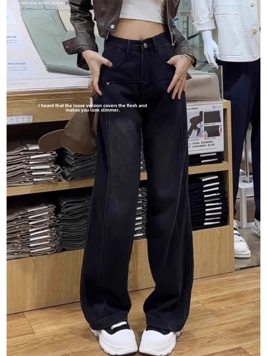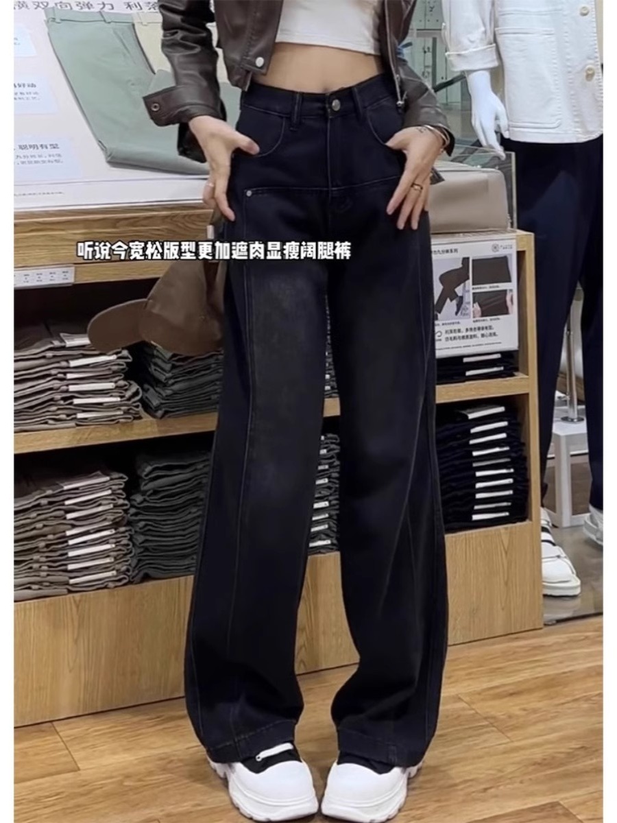 Черные осенние джинсы, дизайнерские штаны, свободный крой, по фигуре