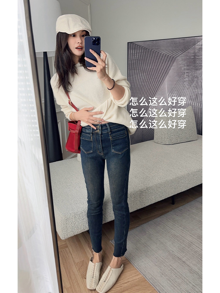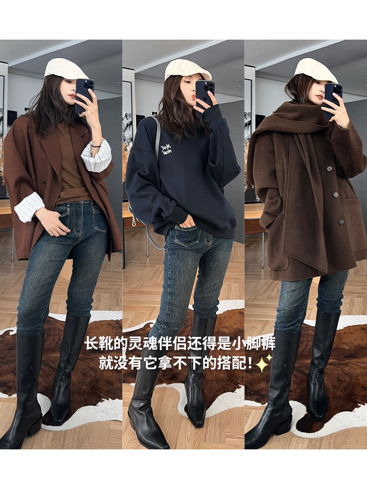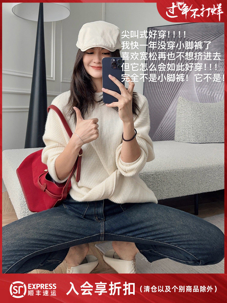 美洋 Мейян [50 серий] джинсы с коротким словными словами так носят крики, бархатные эластичные штаны