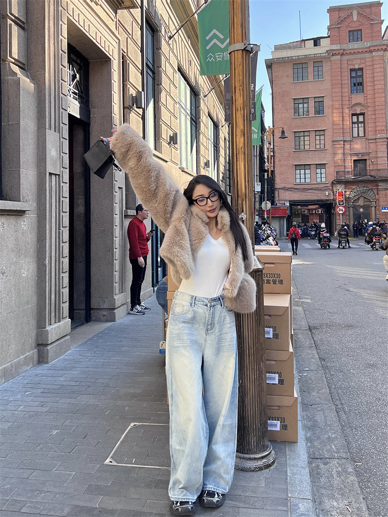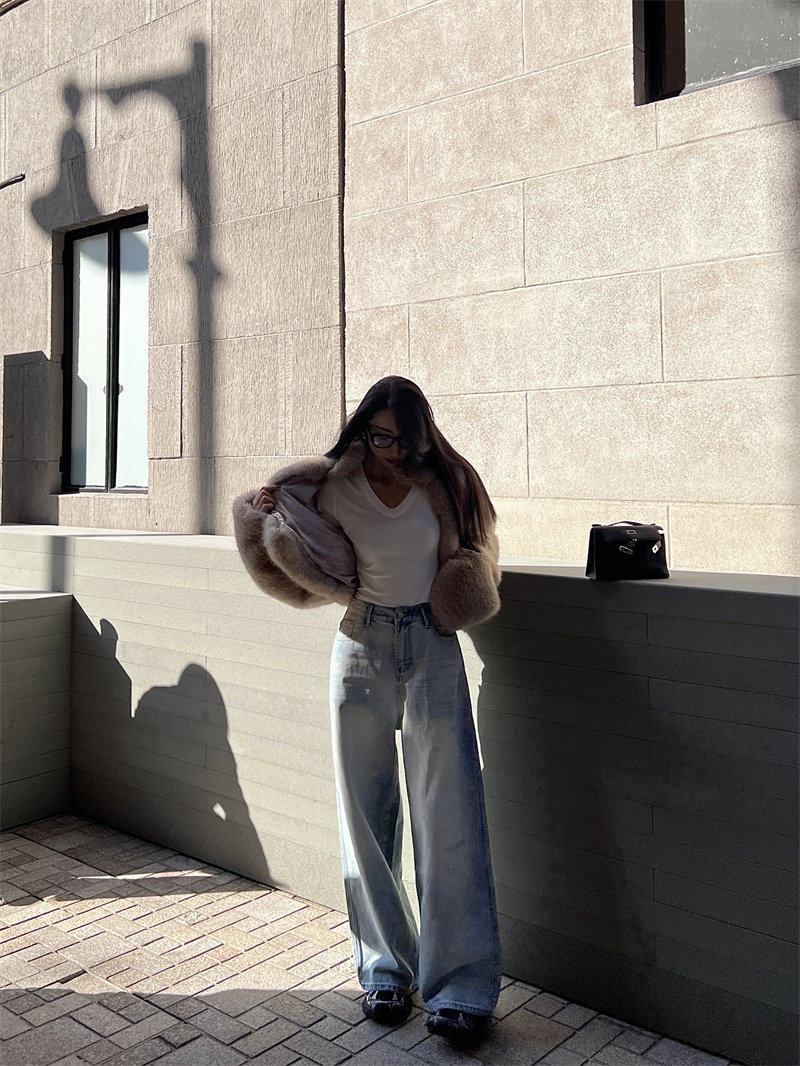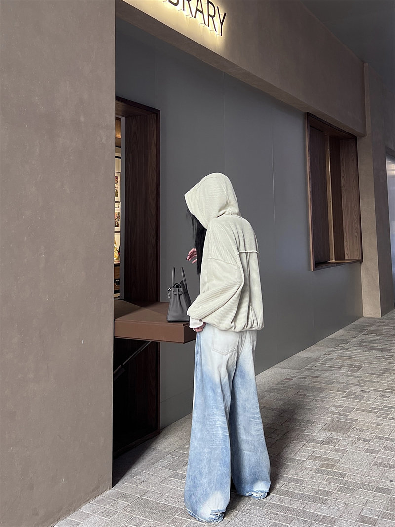 Bacchus Online светло -синий заставляет старые шлифовальные белые широкие ноги с широко раскрытыми брюками прямой джинсы талии