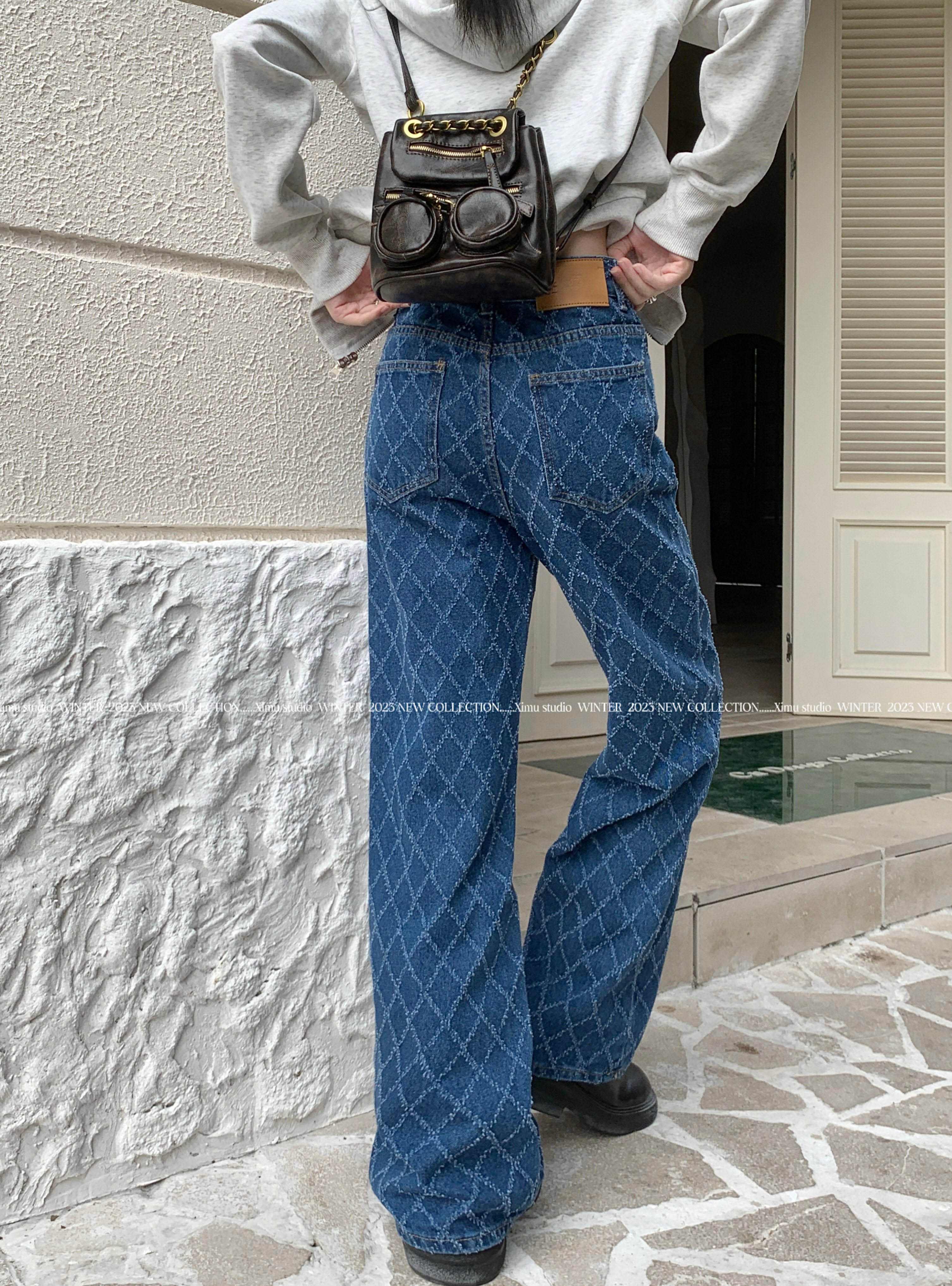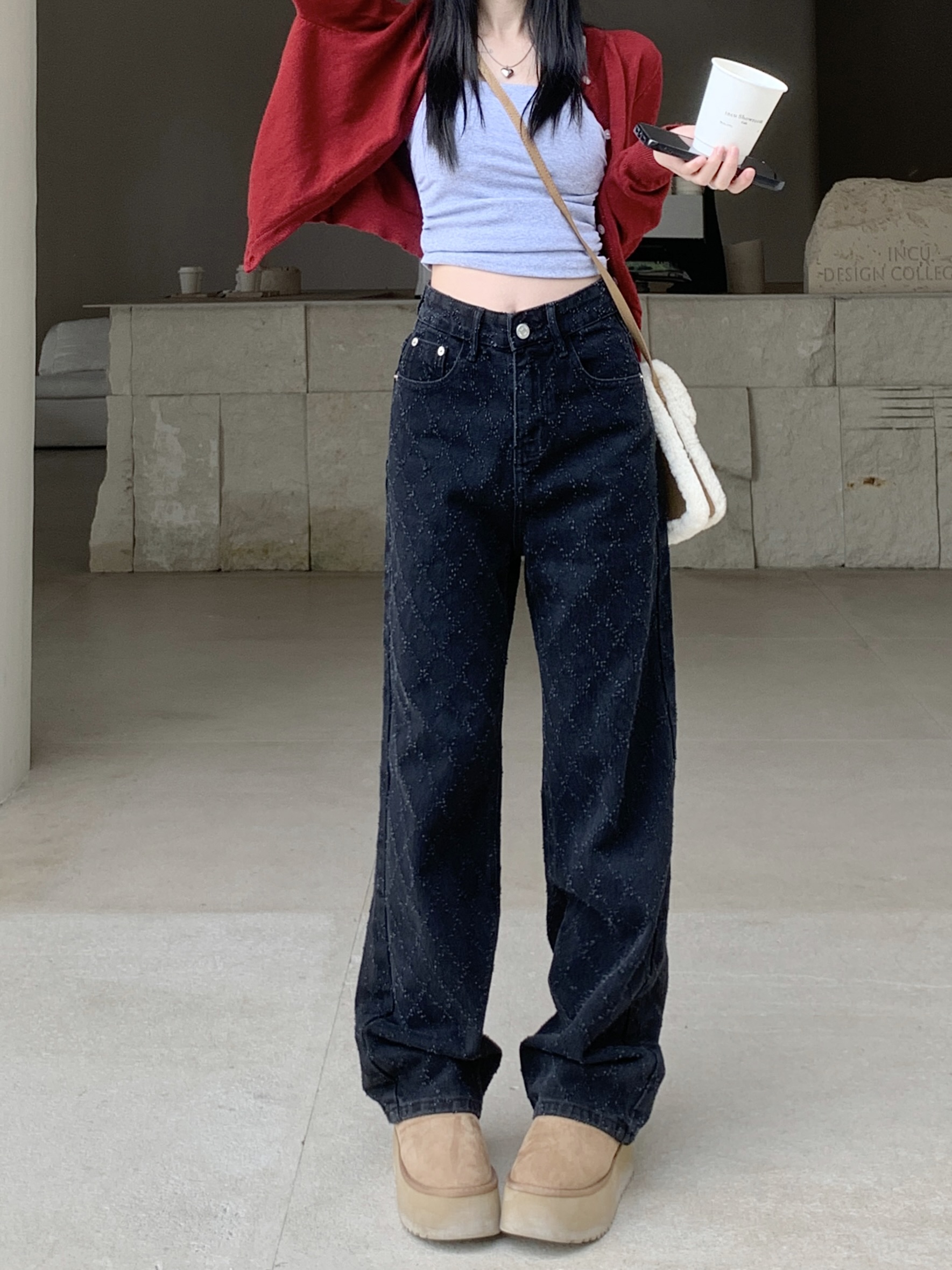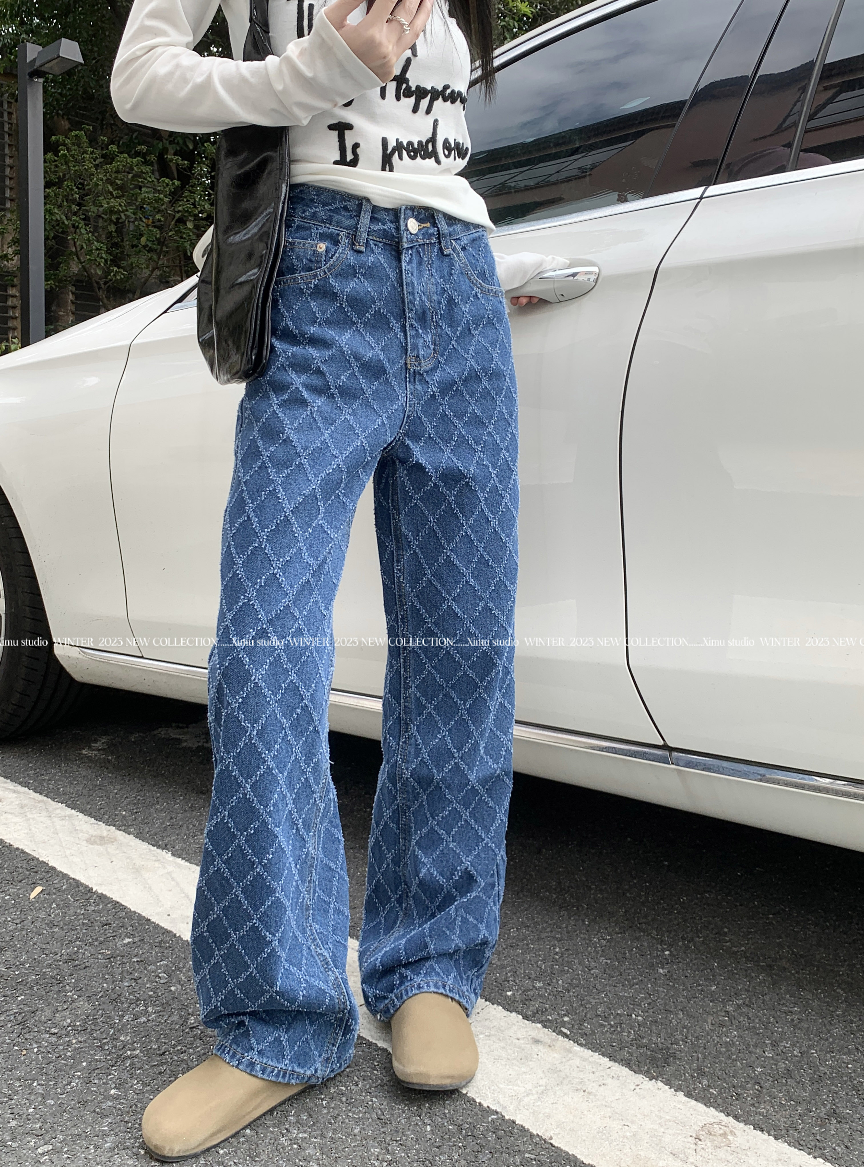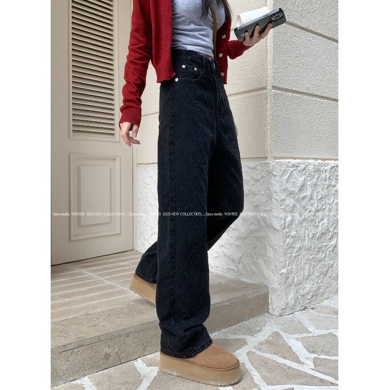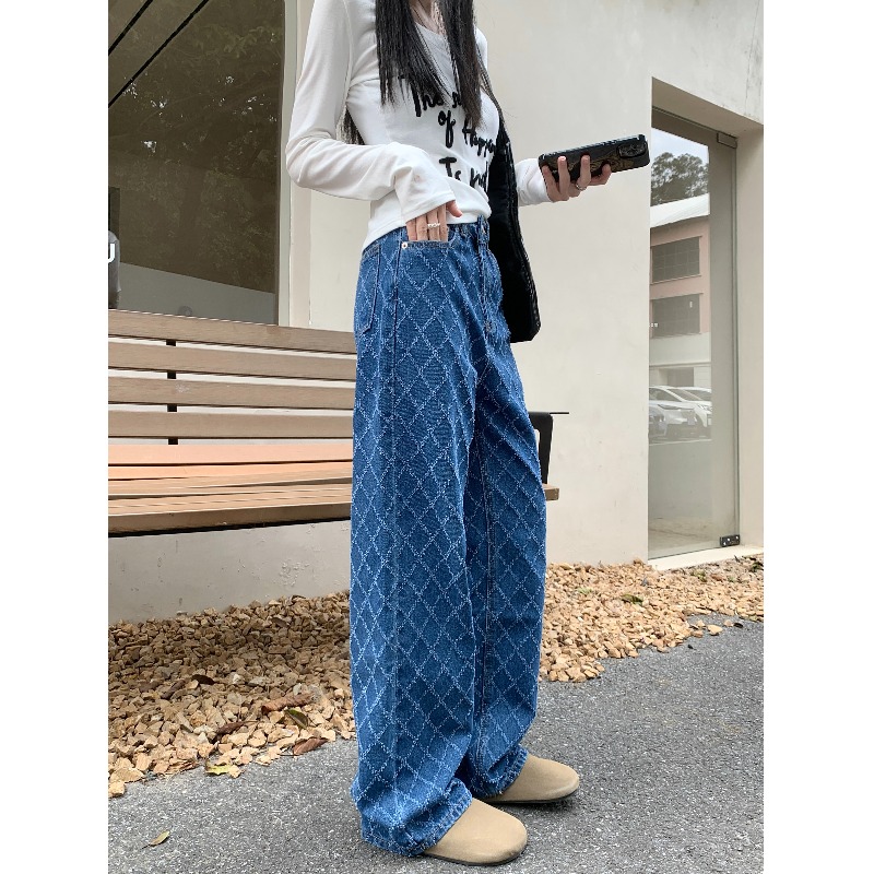 Дизайнерские джинсовые весенние приталенные штаны, тренд сезона, высокая талия, свободный прямой крой