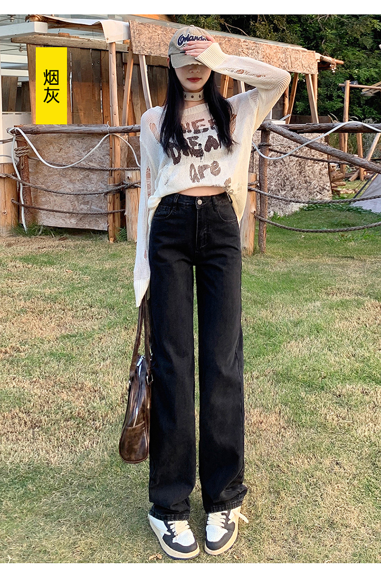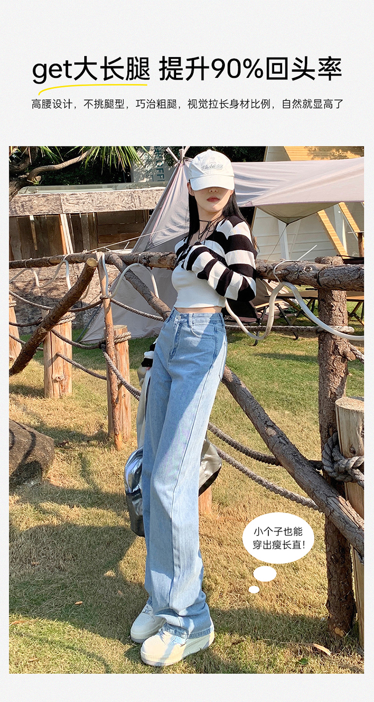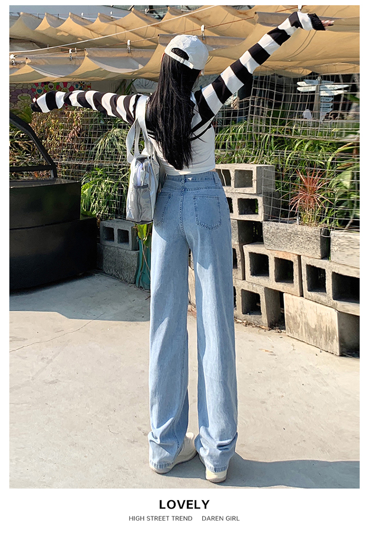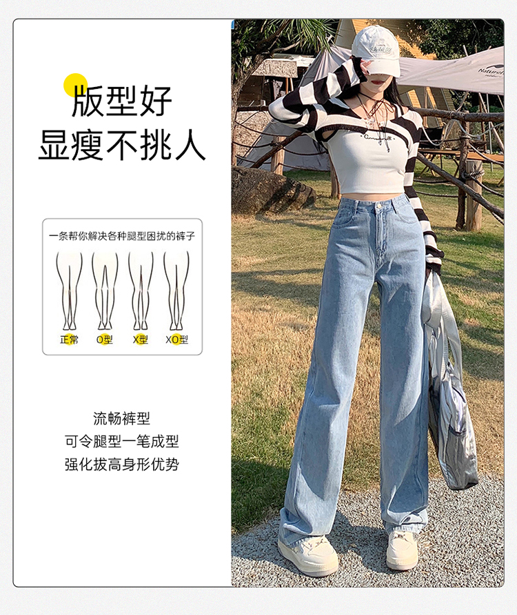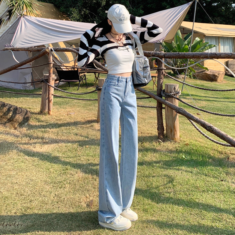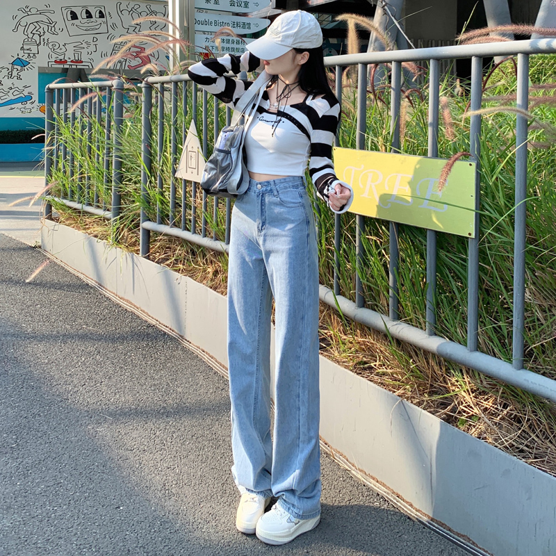 Демисезонные джинсы, штаны, светлые леггинсы, высокая талия, 2024 года, подходит для подростков, по фигуре, свободный прямой крой