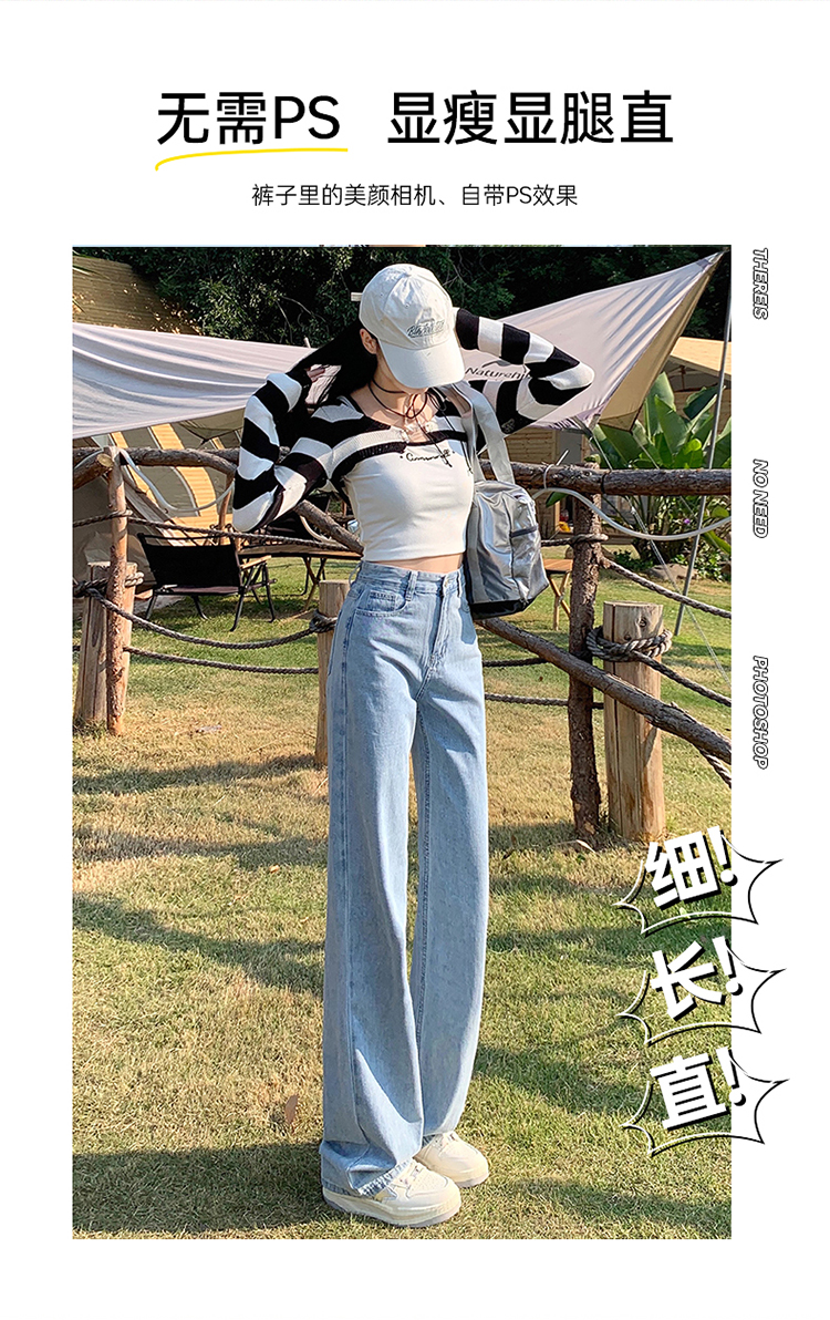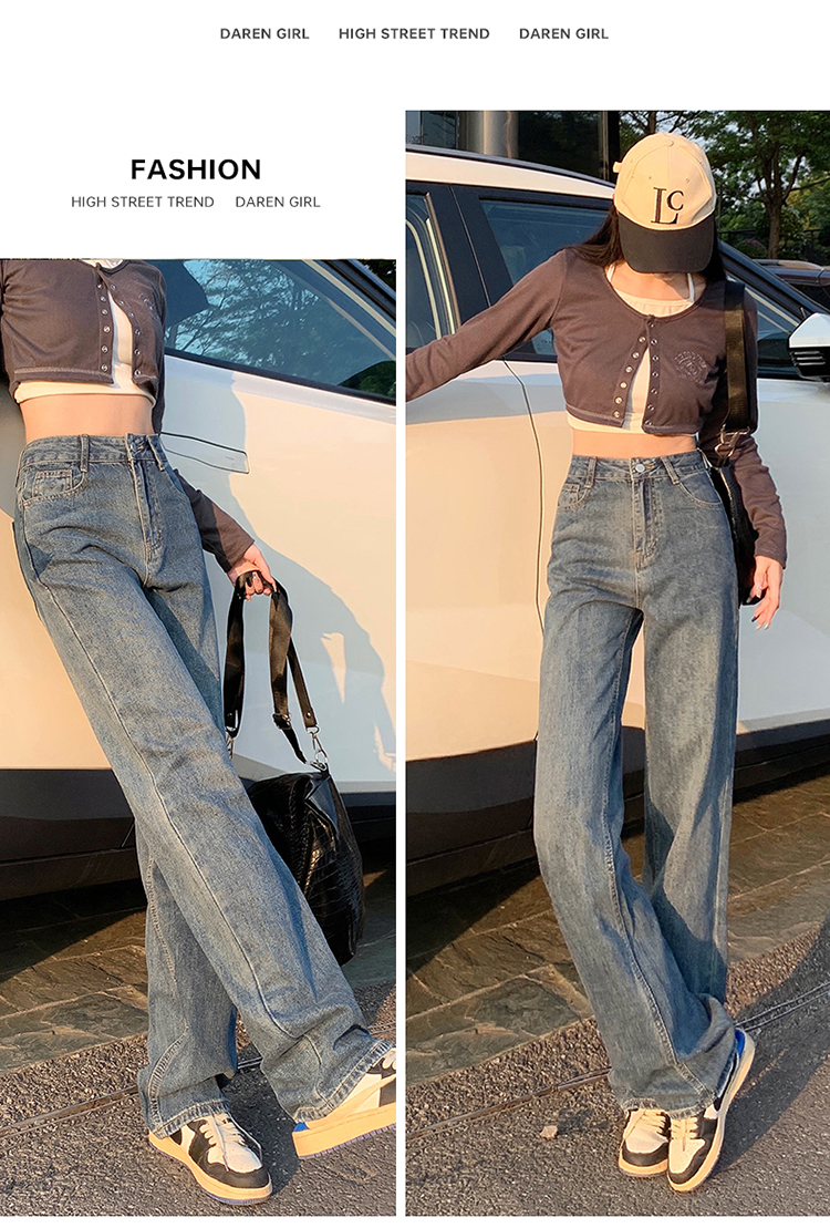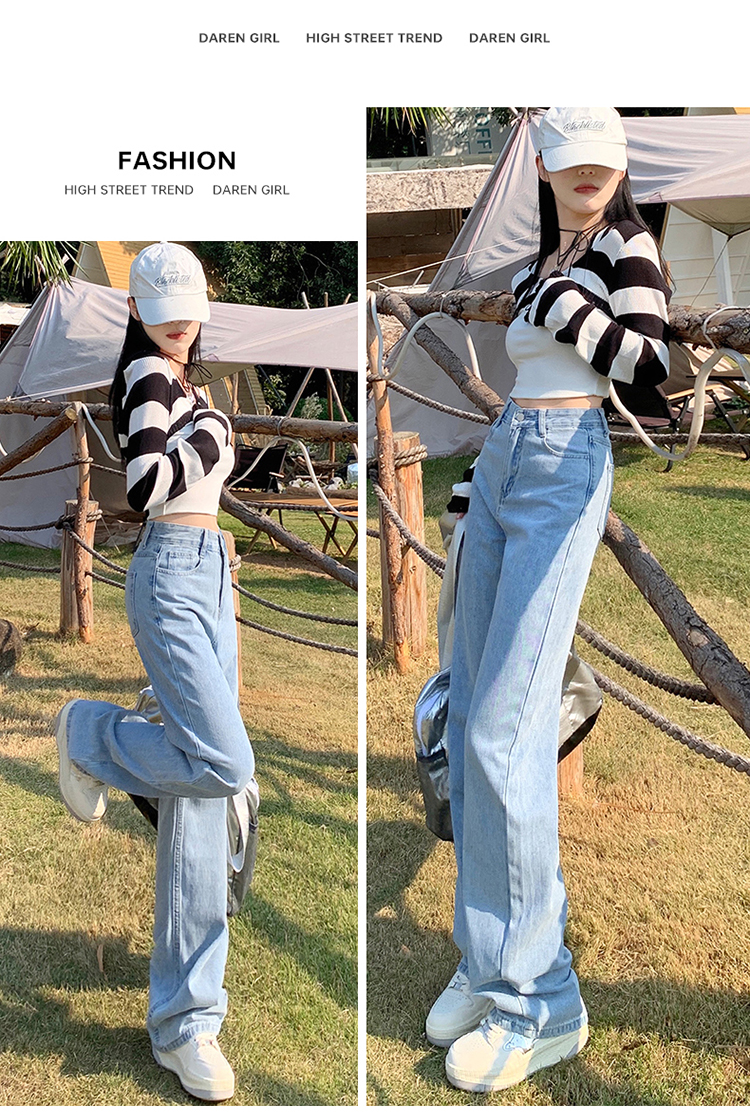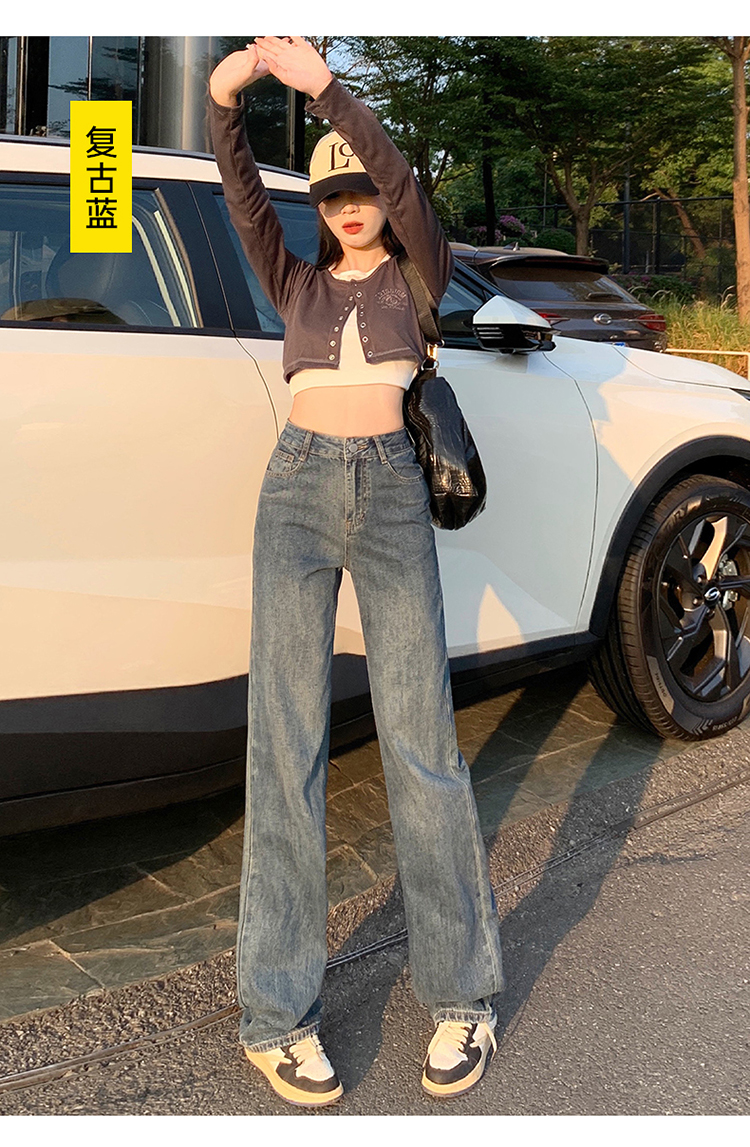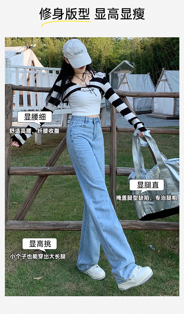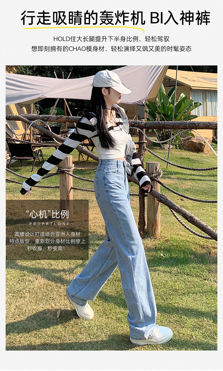 Демисезонные джинсы, штаны, светлые леггинсы, высокая талия, 2024 года, подходит для подростков, по фигуре, свободный прямой крой