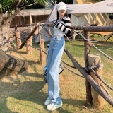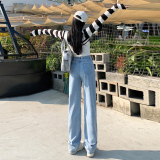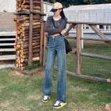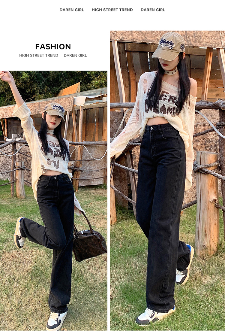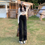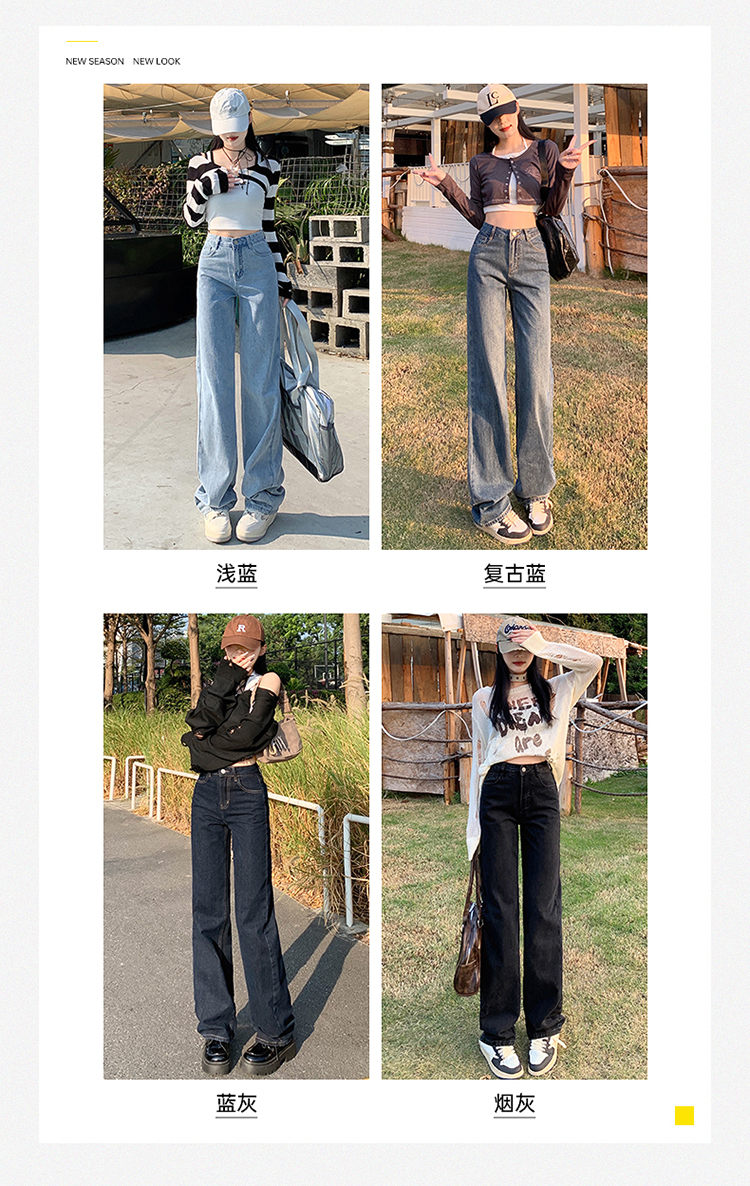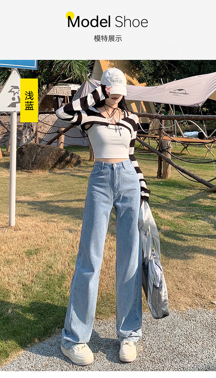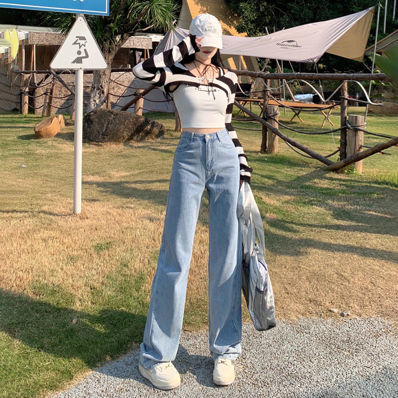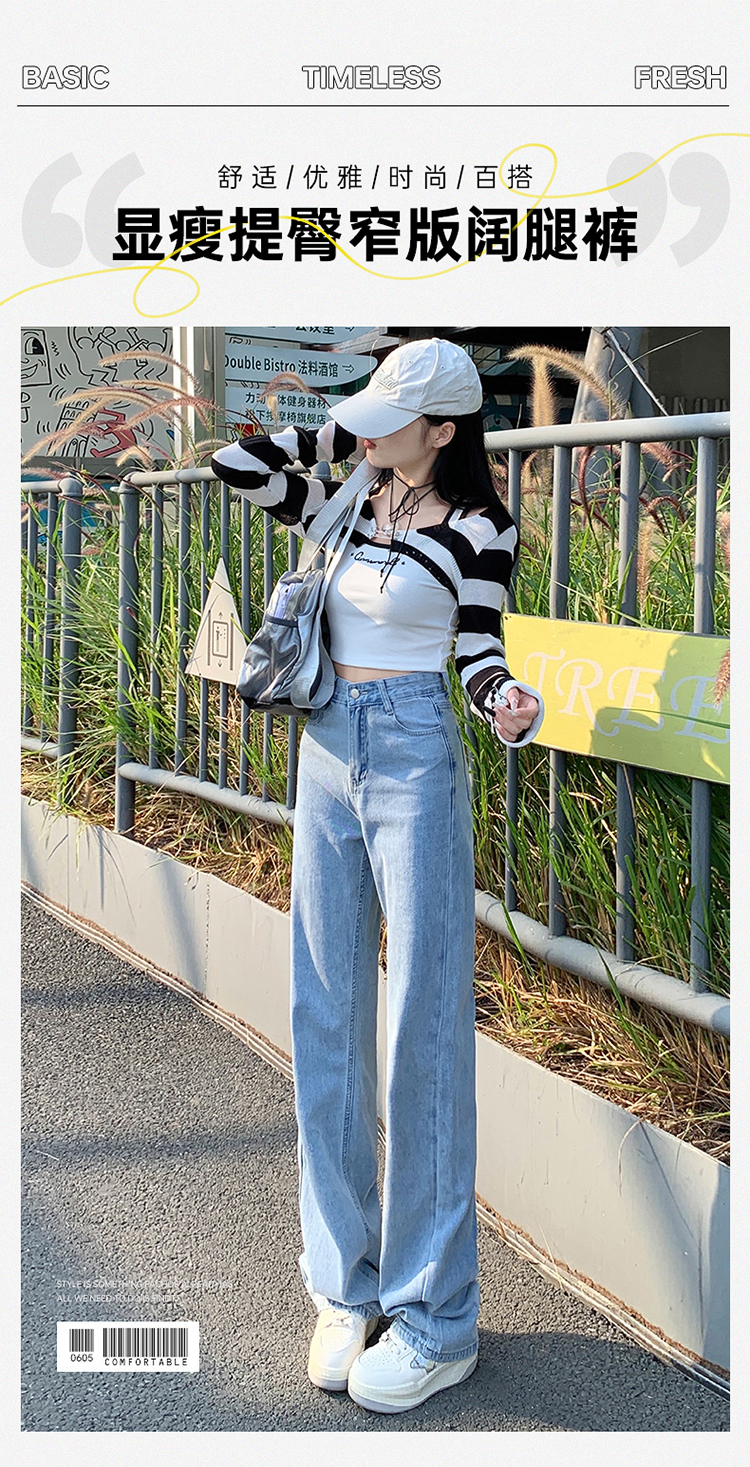 Демисезонные джинсы, штаны, светлые леггинсы, высокая талия, 2024 года, подходит для подростков, по фигуре, свободный прямой крой