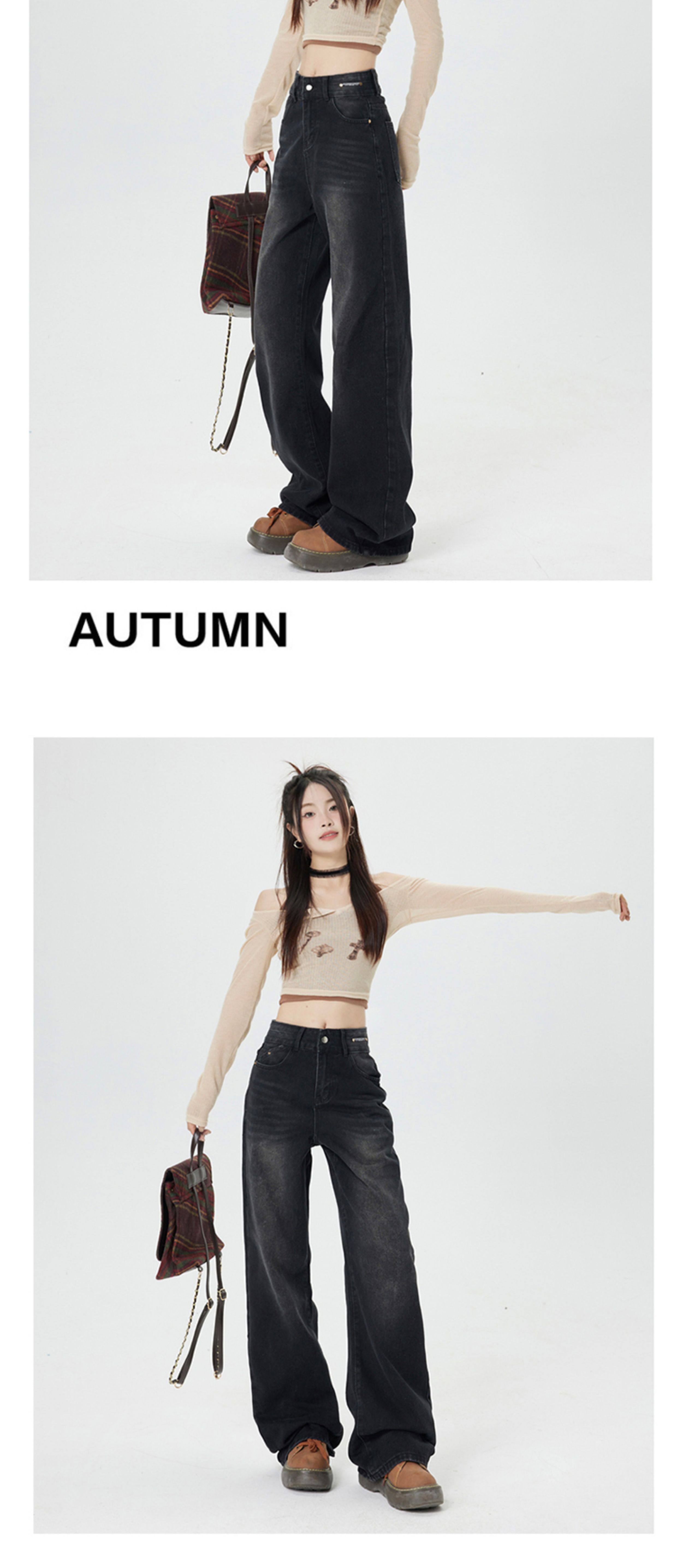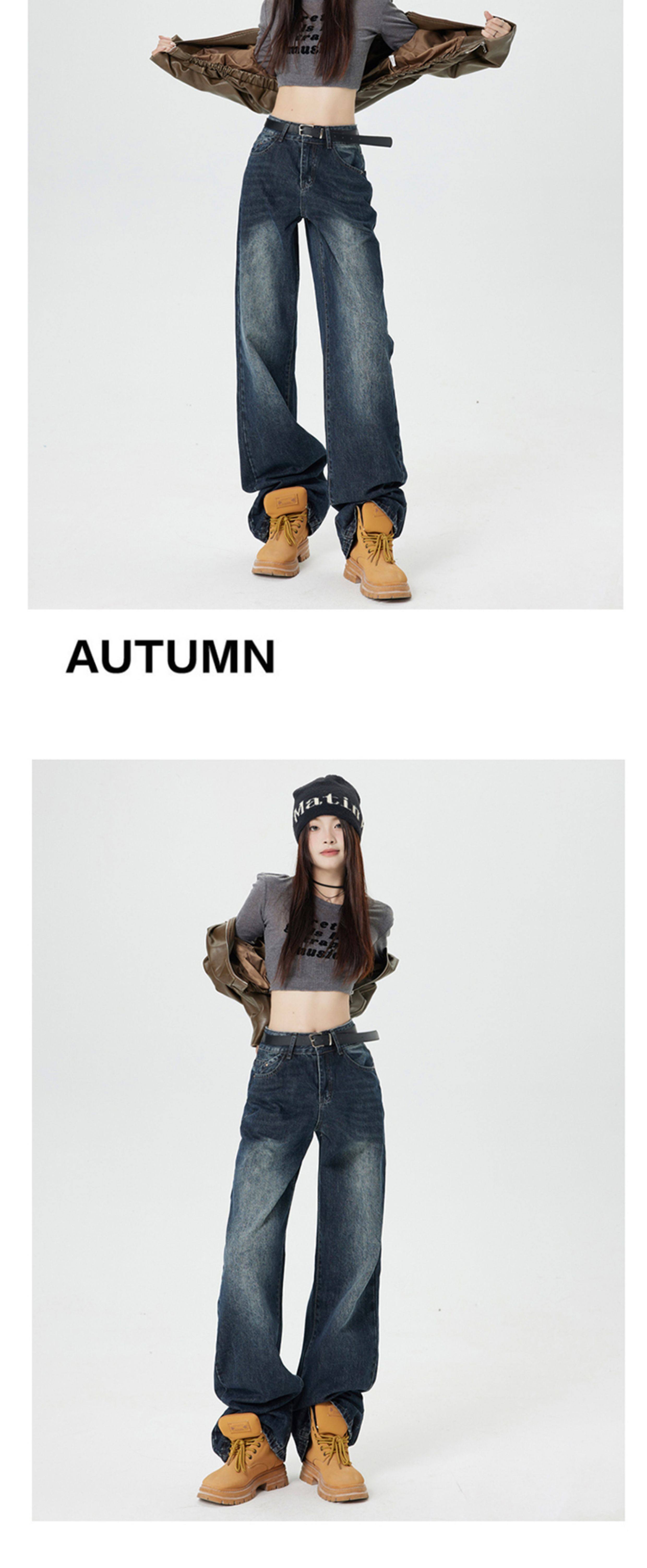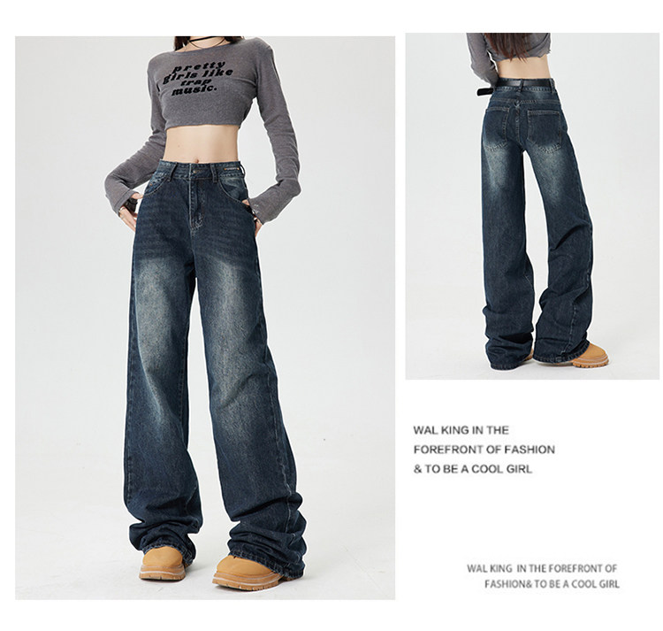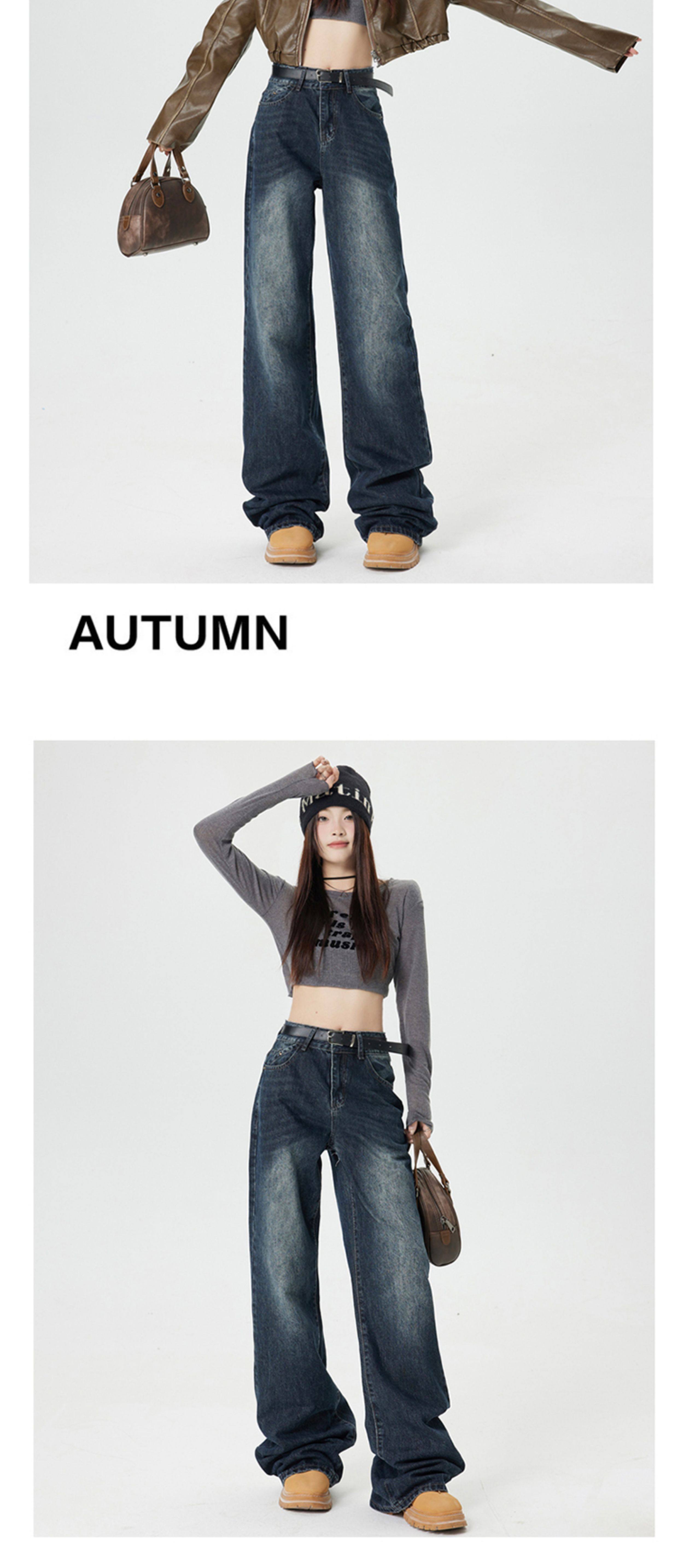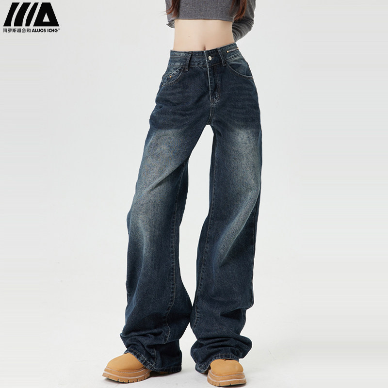 Ретро джинсы, приталенные весенние осенние штаны, в американском стиле, высокая талия, 2025 года, свободный прямой крой