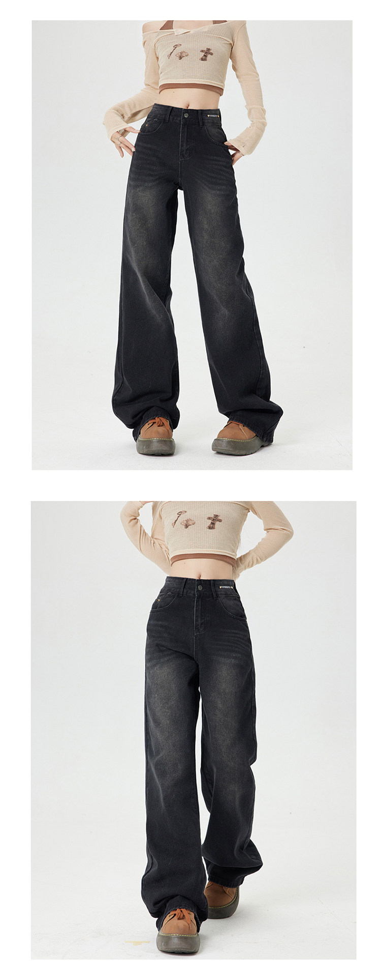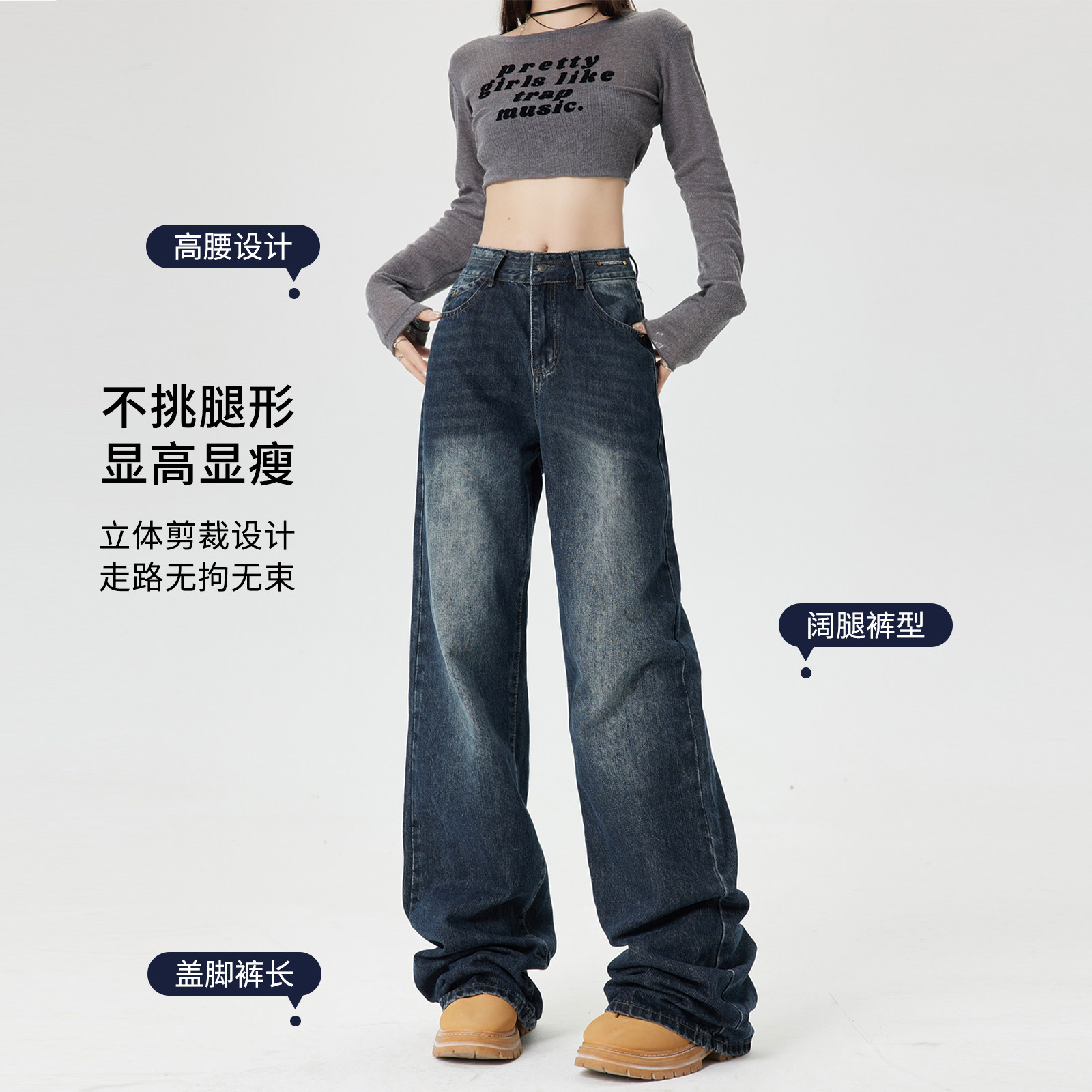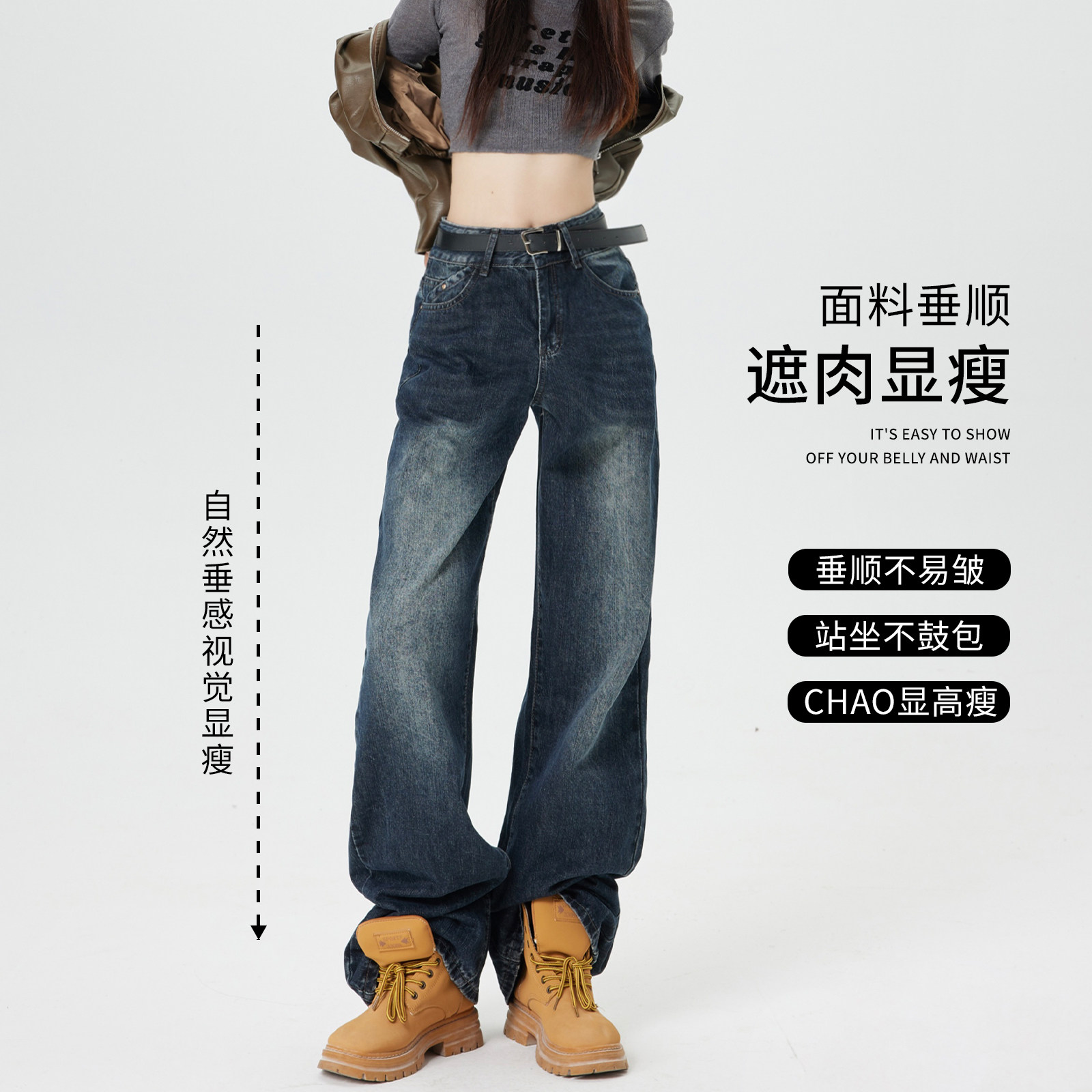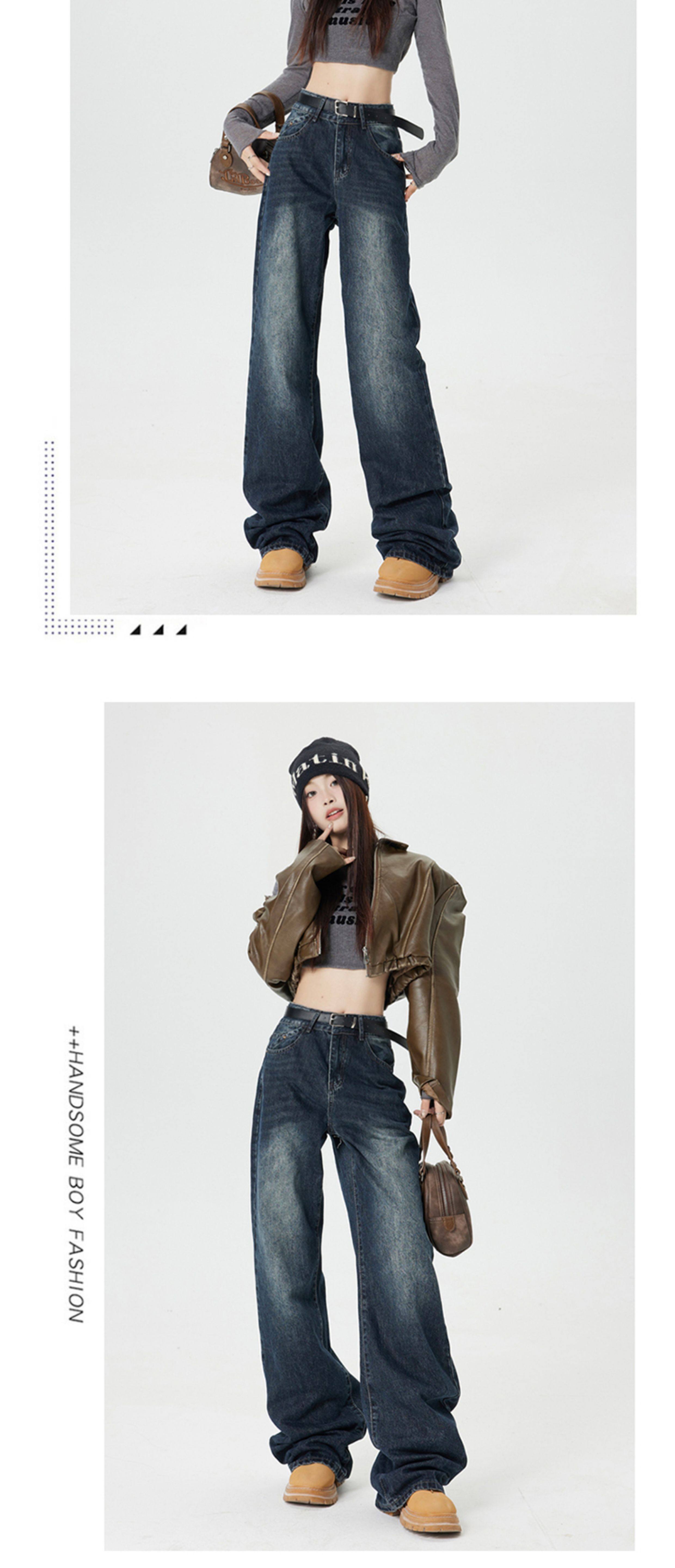 Ретро джинсы, приталенные весенние осенние штаны, в американском стиле, высокая талия, 2025 года, свободный прямой крой