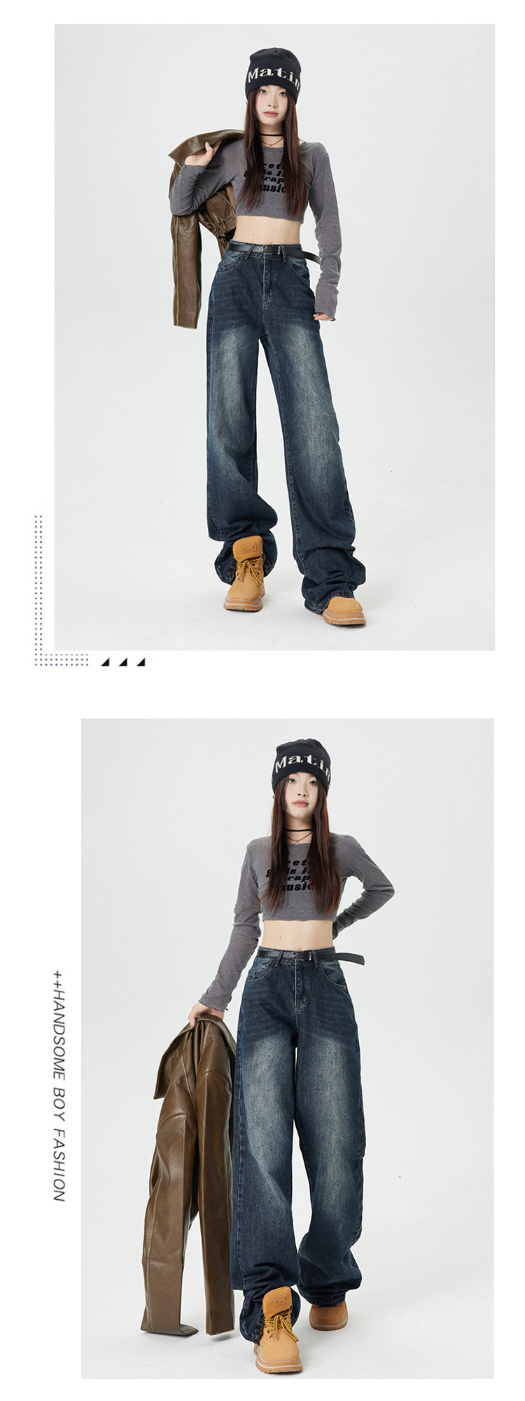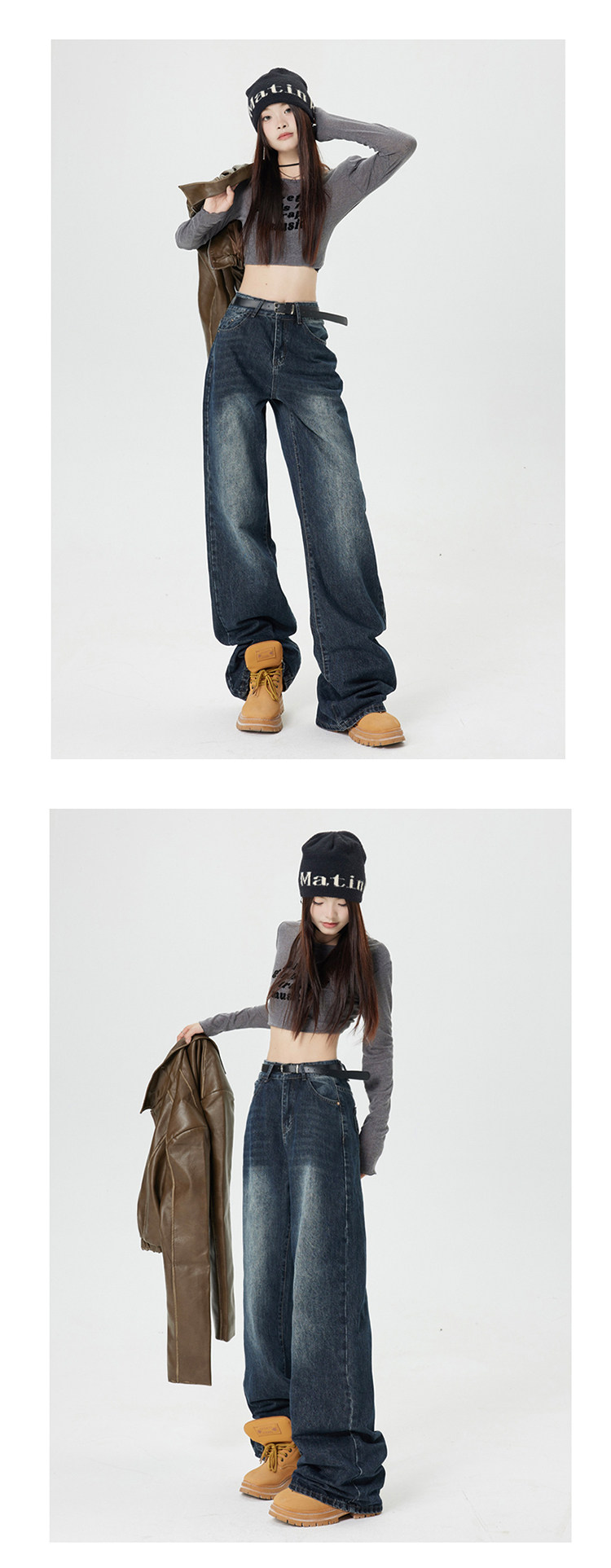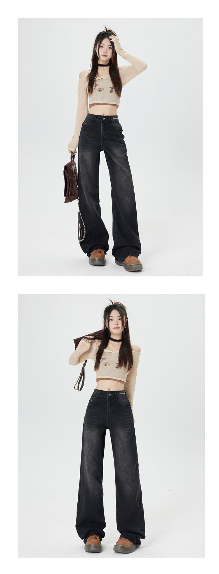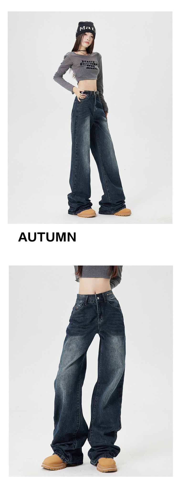 Ретро джинсы, приталенные весенние осенние штаны, в американском стиле, высокая талия, 2025 года, свободный прямой крой