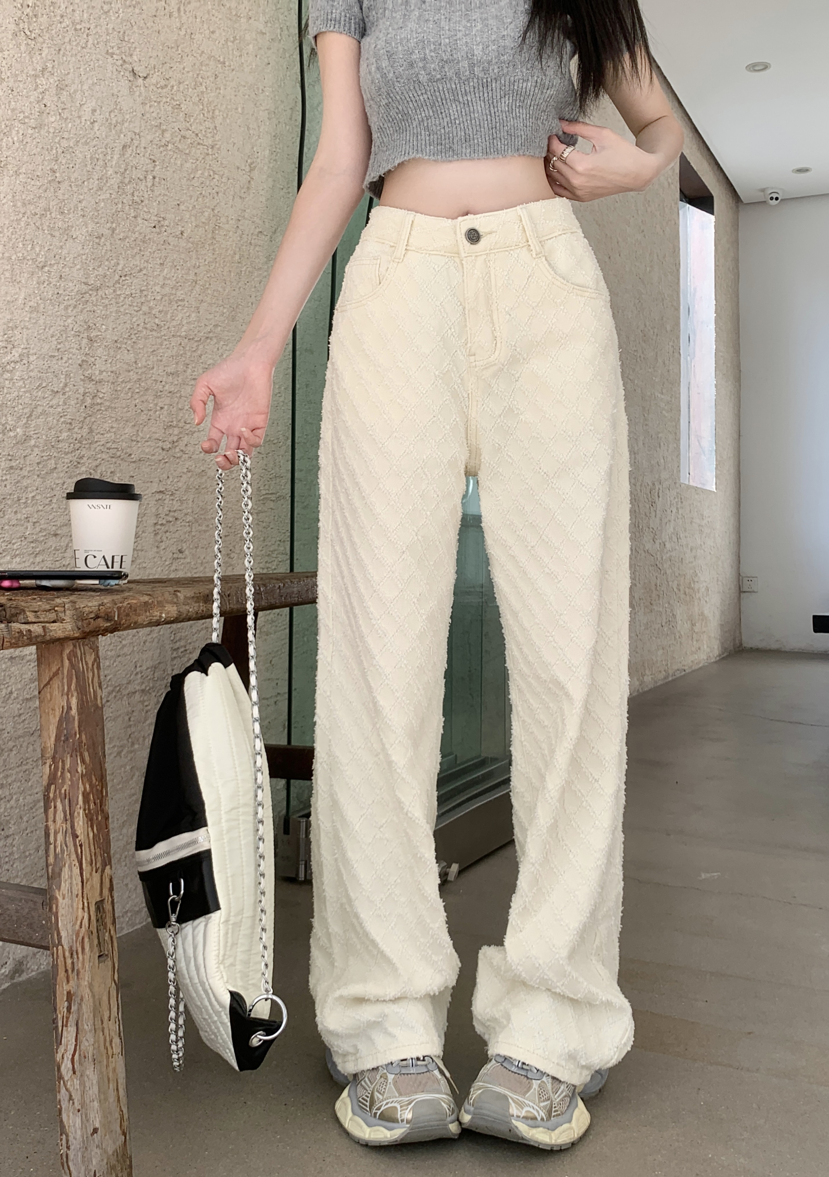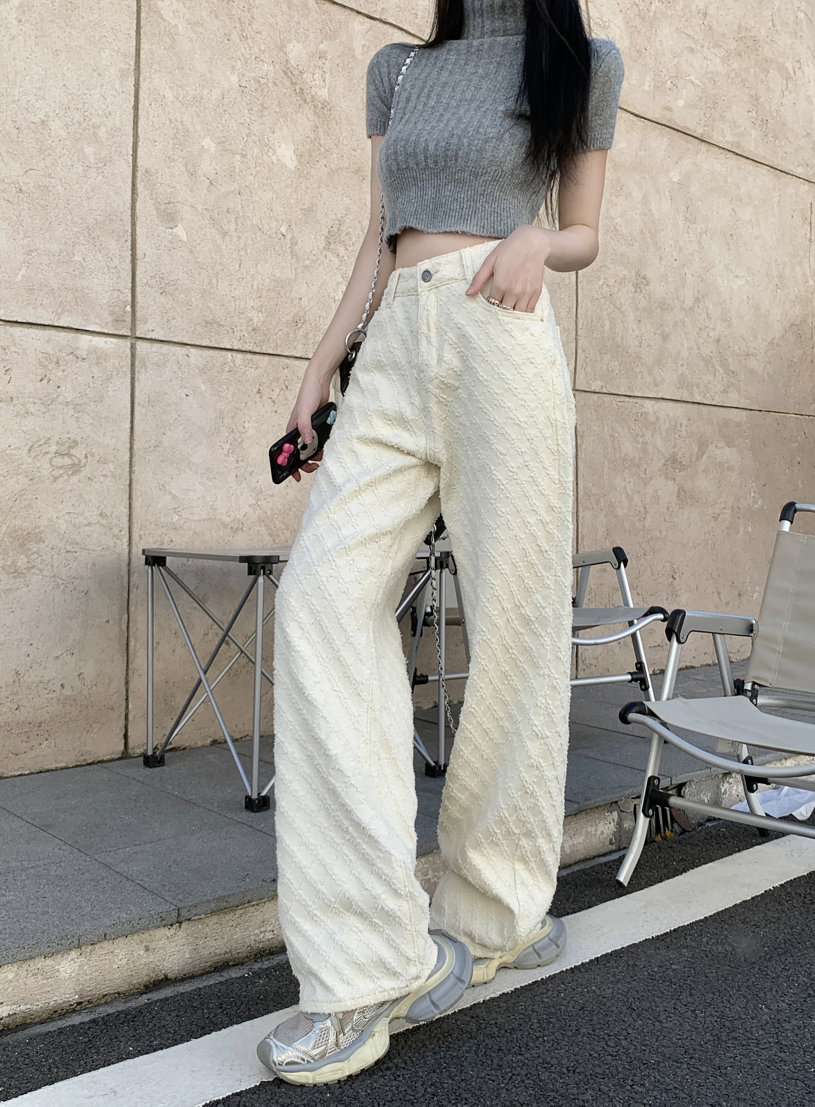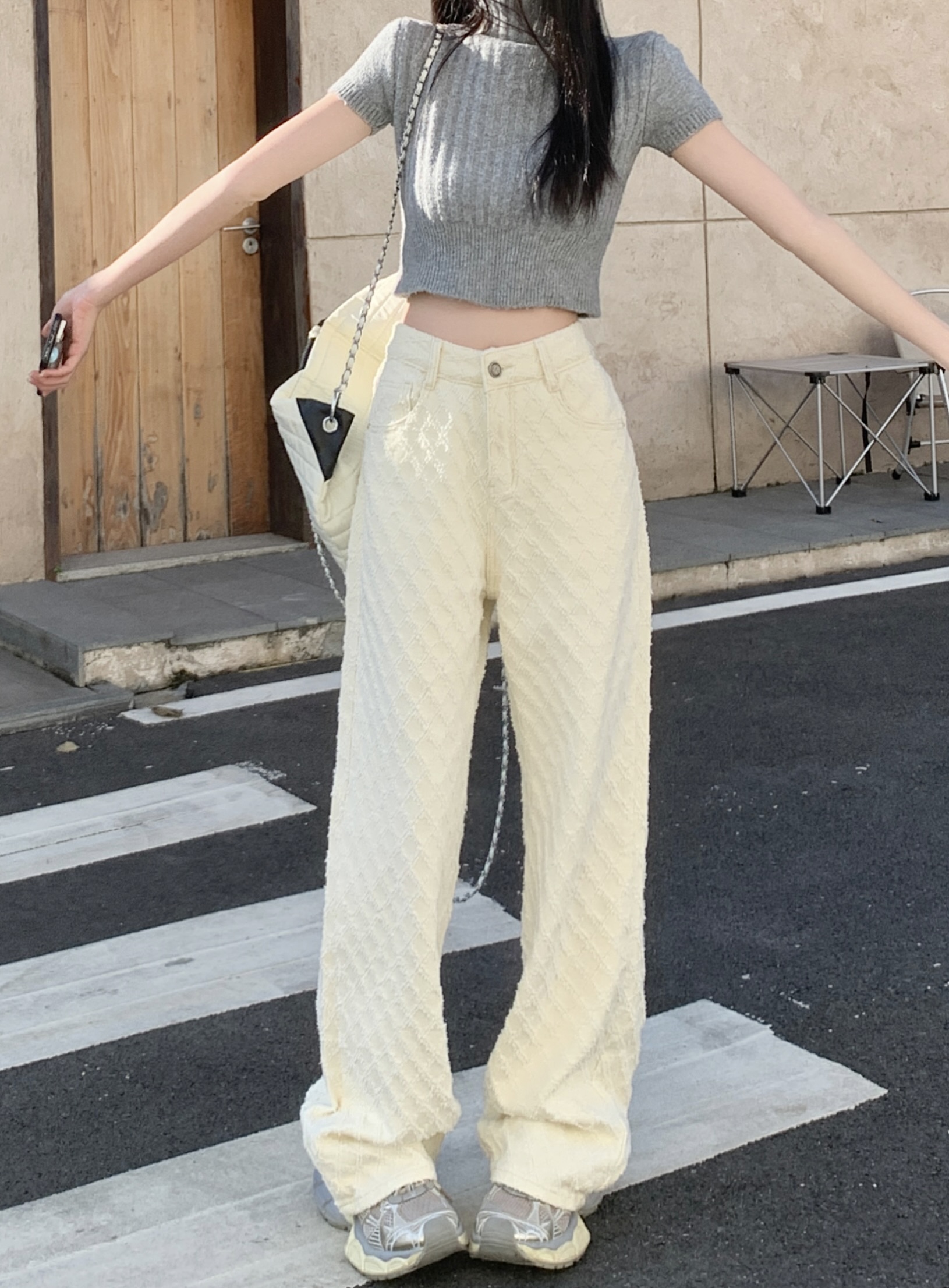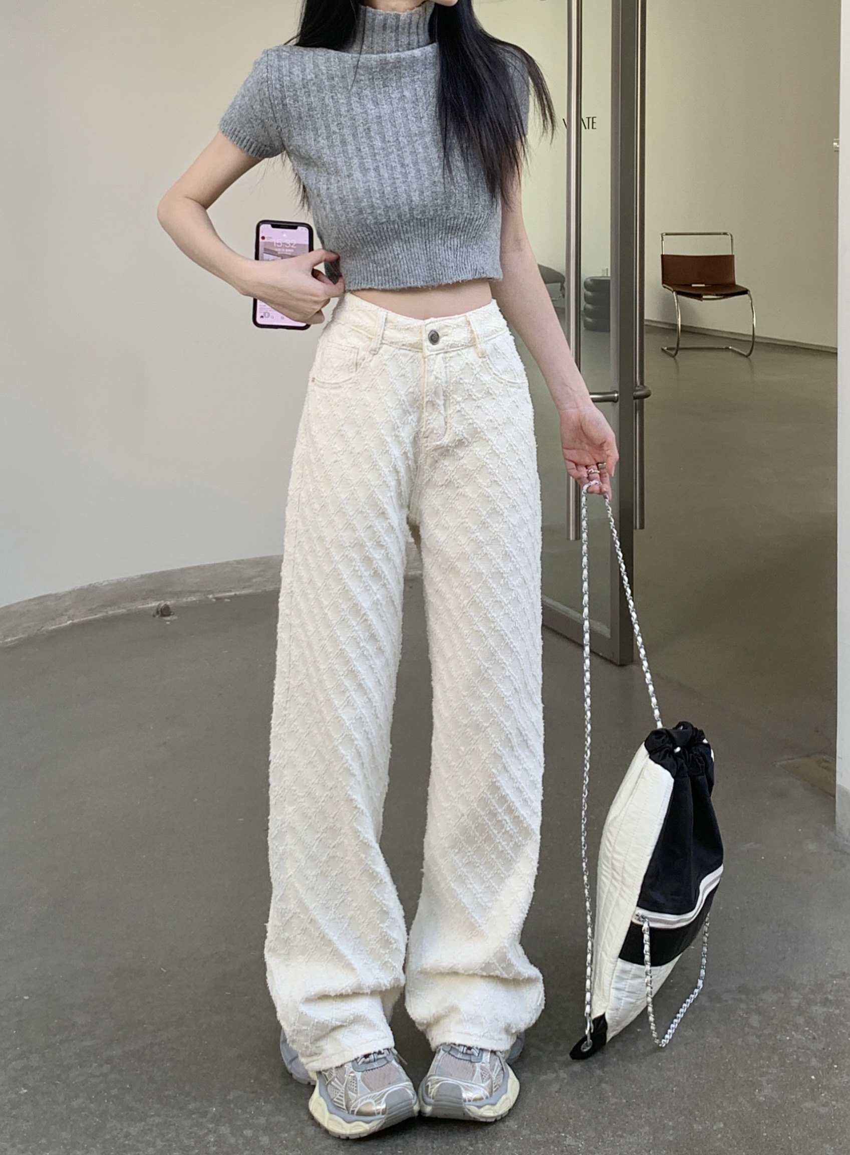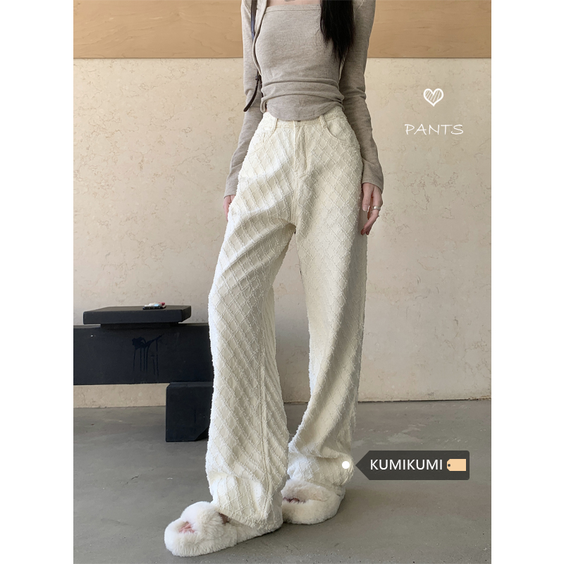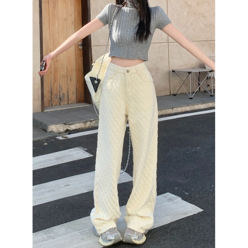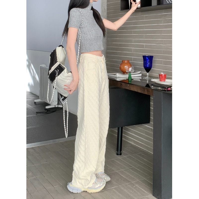 Белые джинсы, весенние штаны, высокая талия, свободный прямой крой