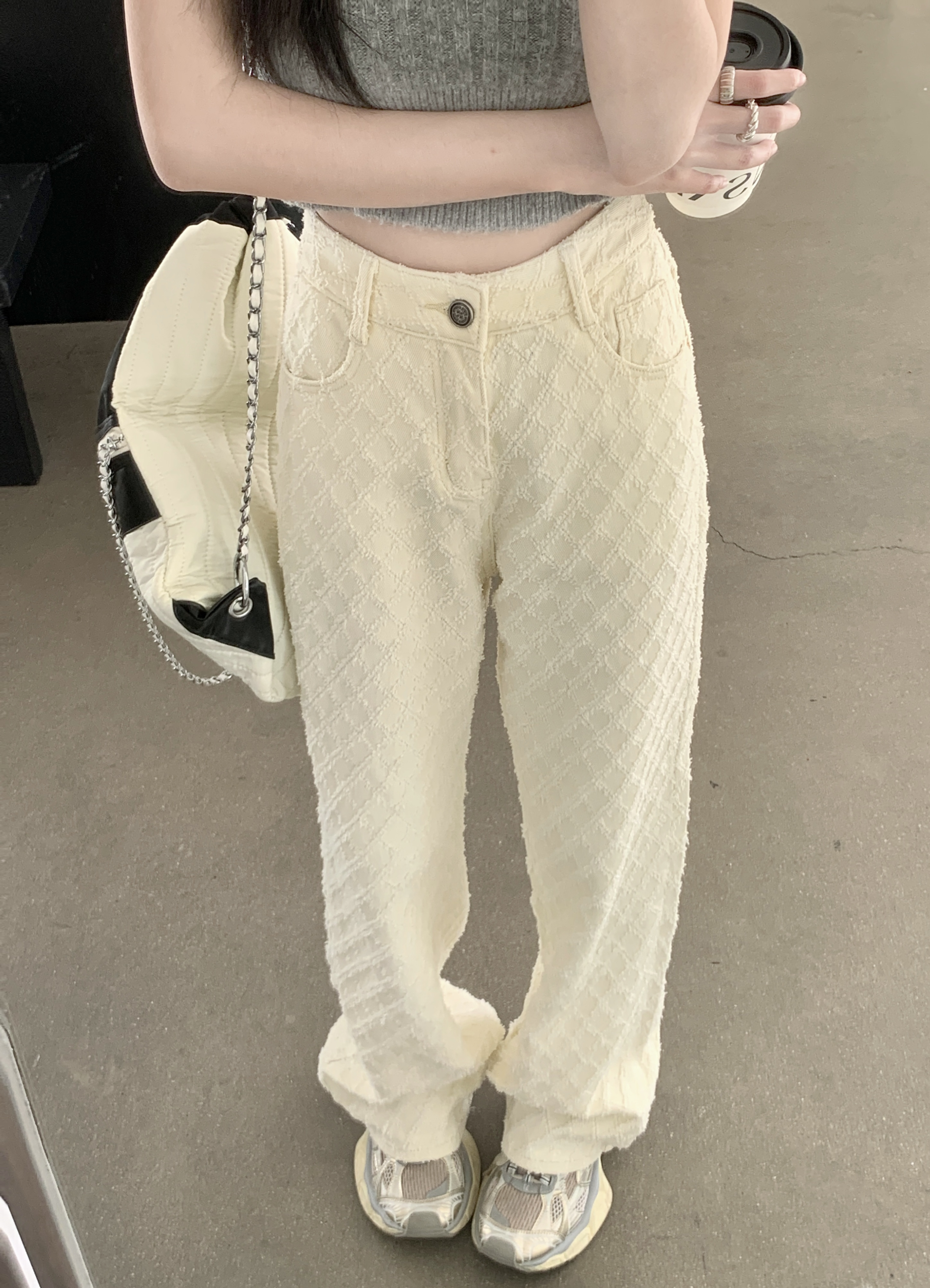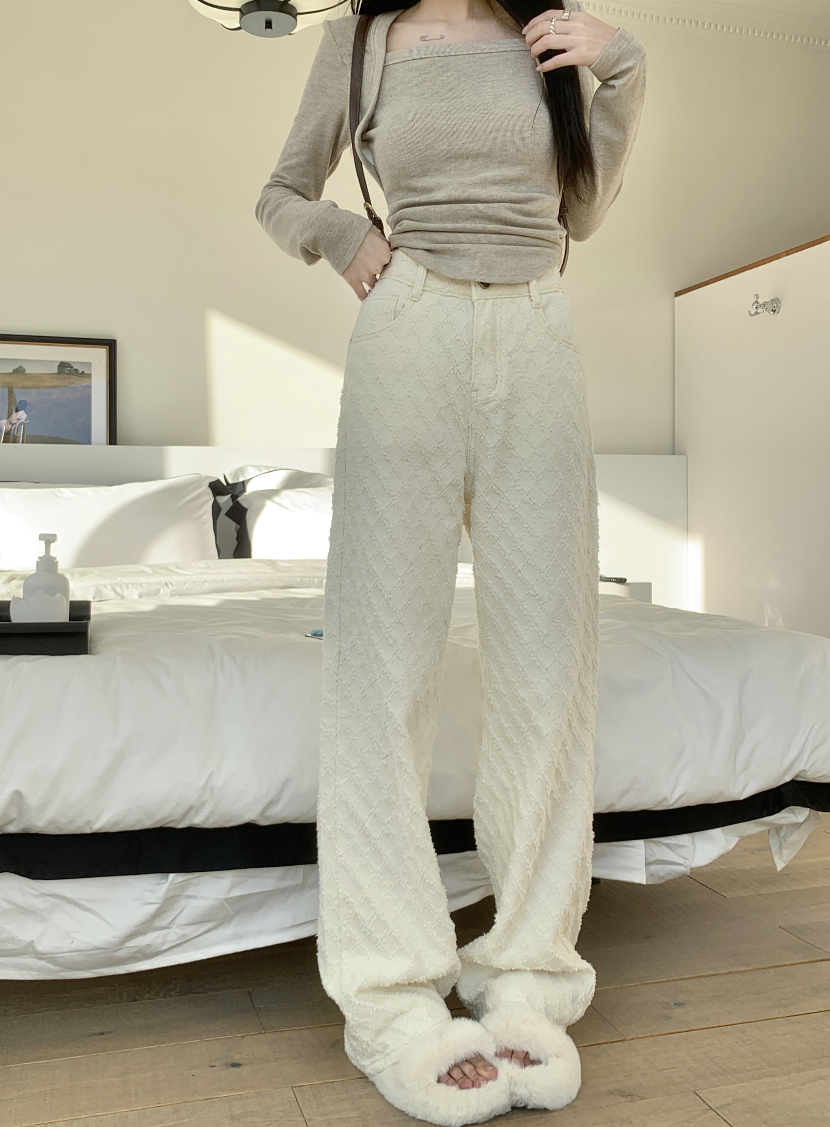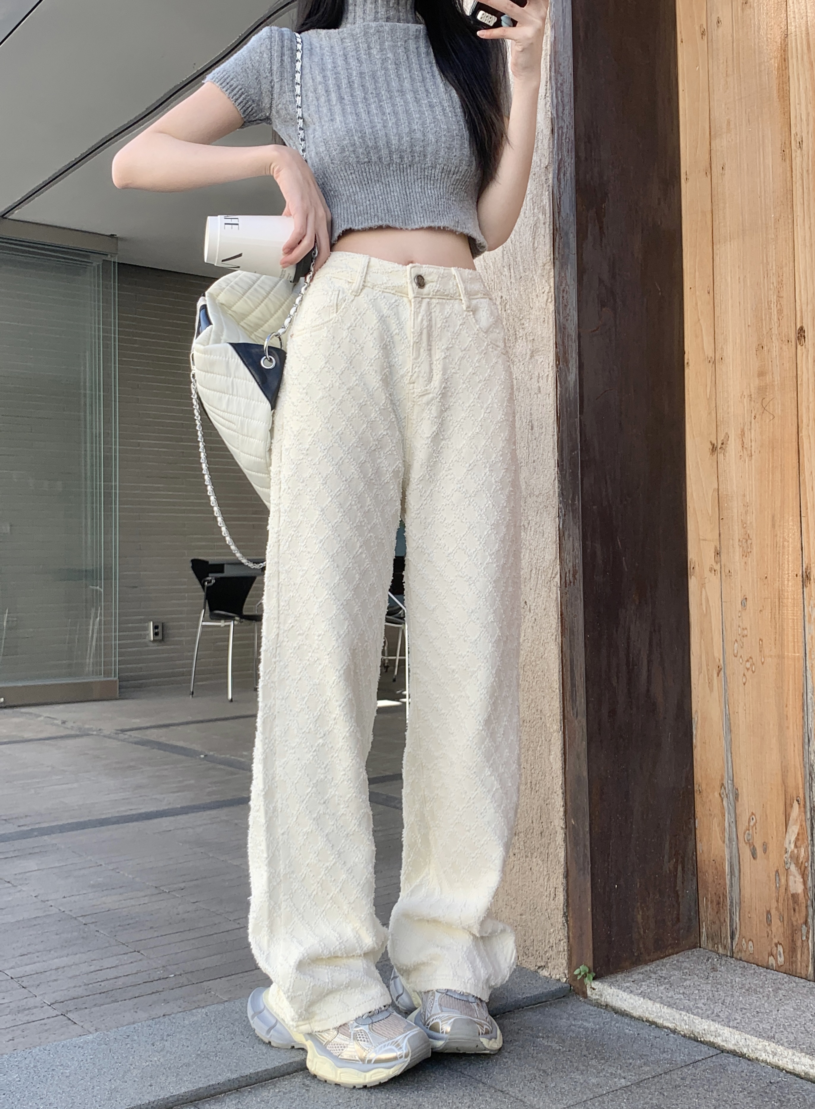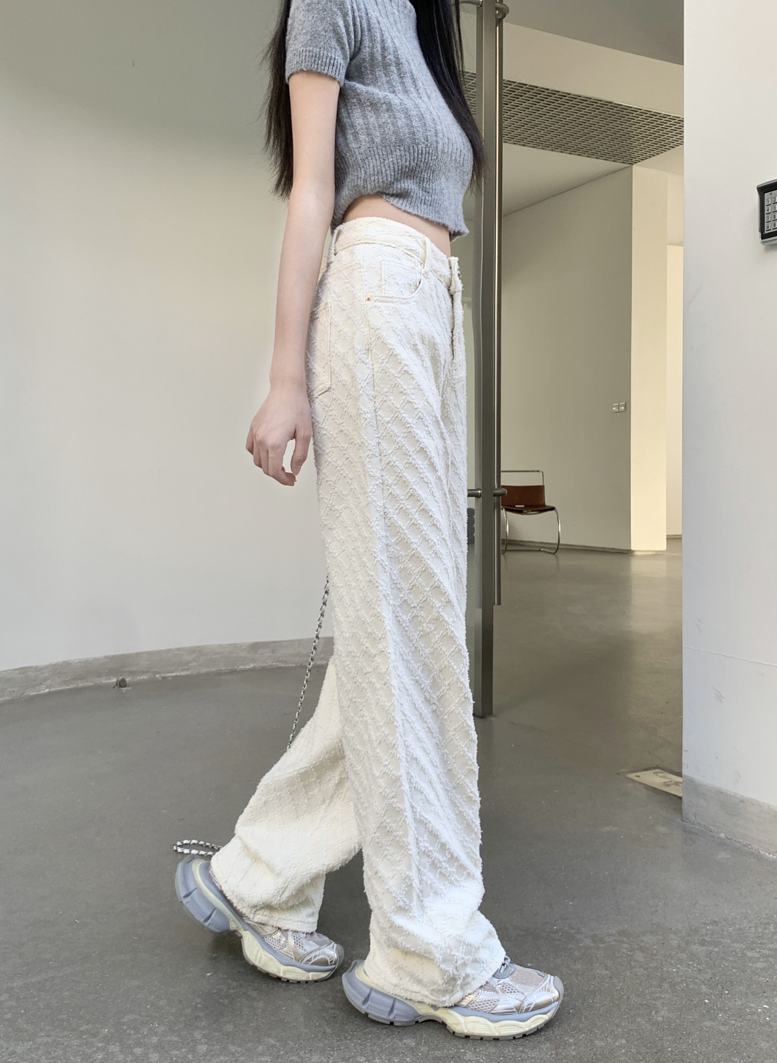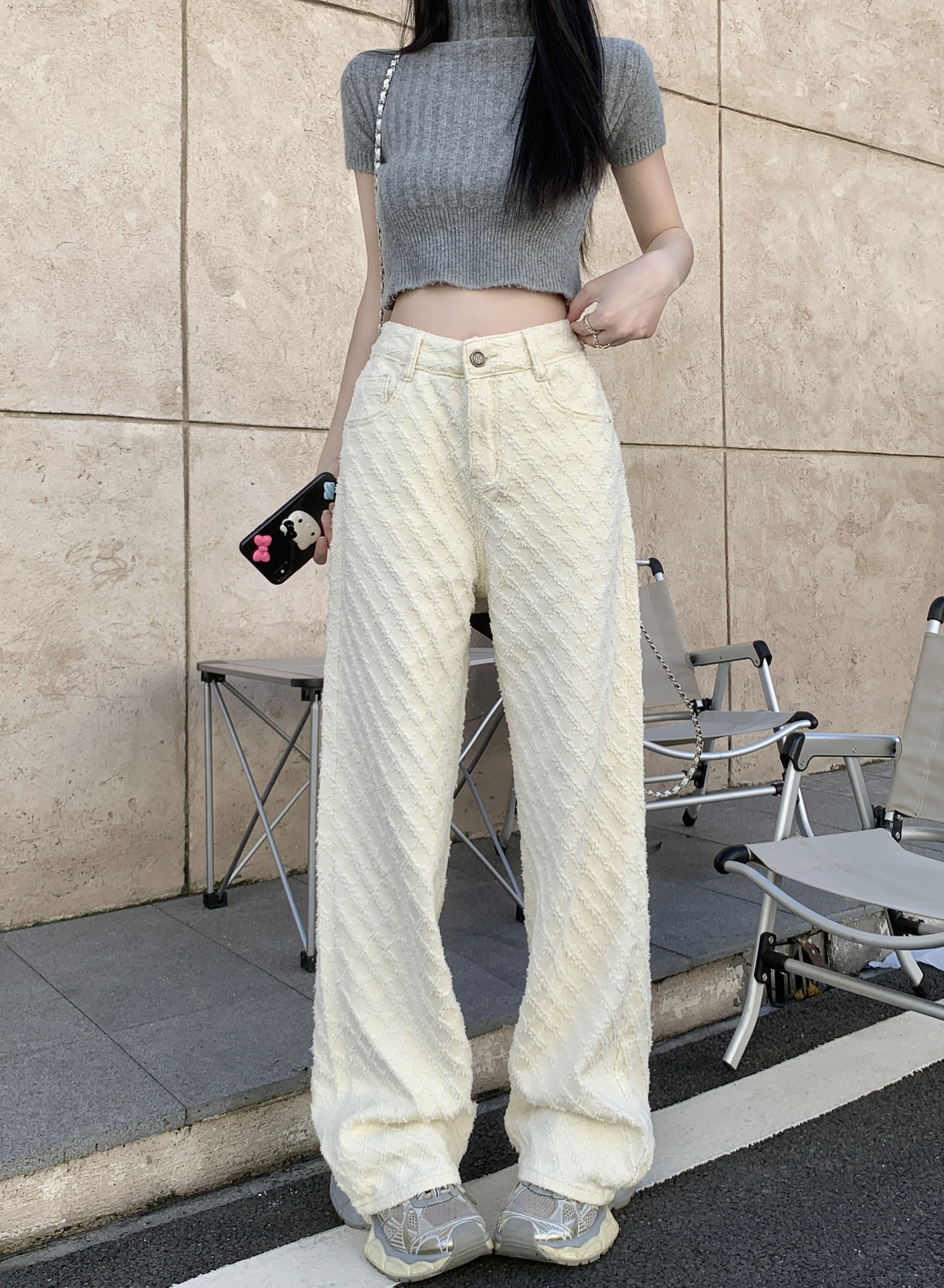 Белые джинсы, весенние штаны, высокая талия, свободный прямой крой