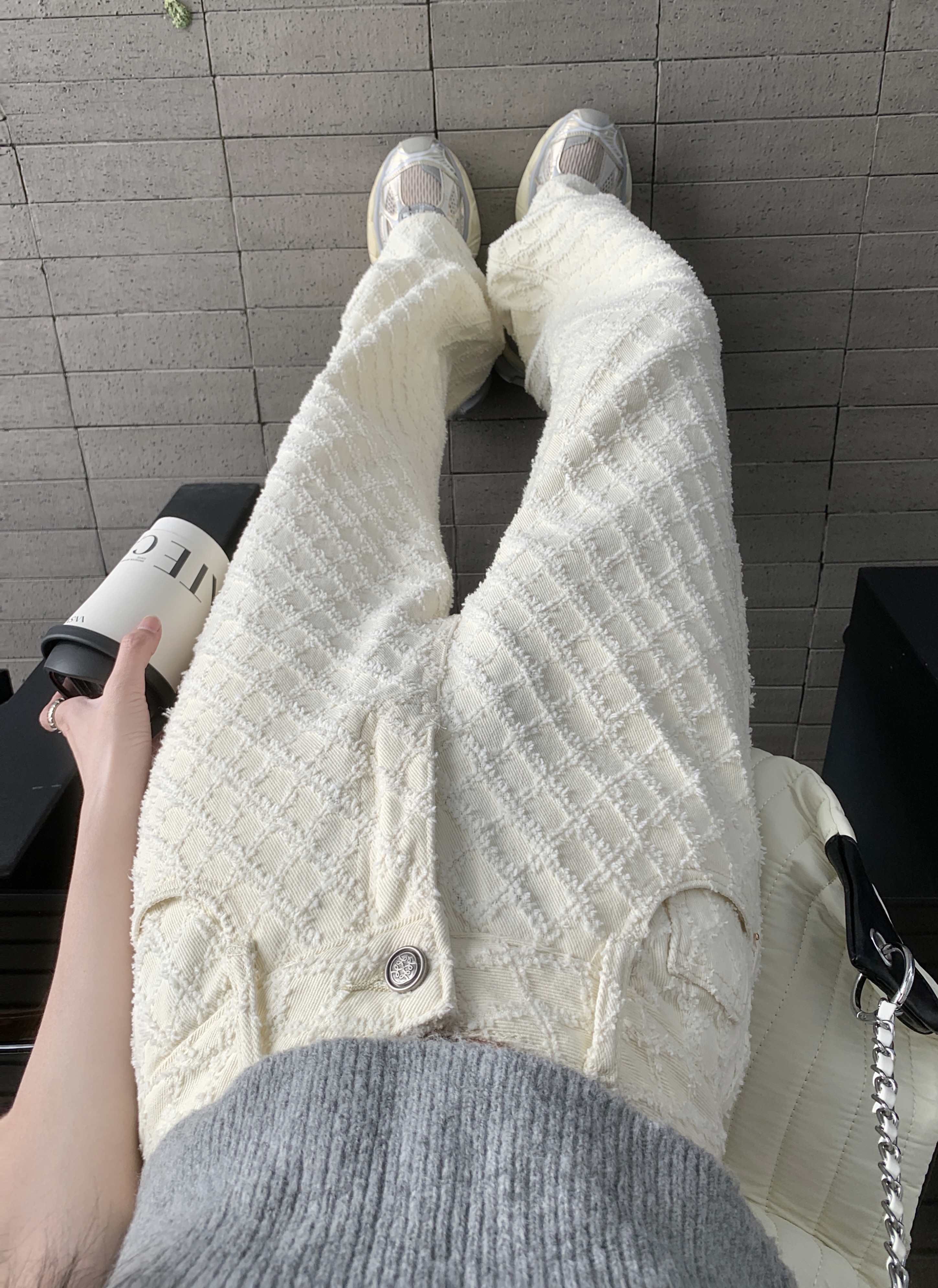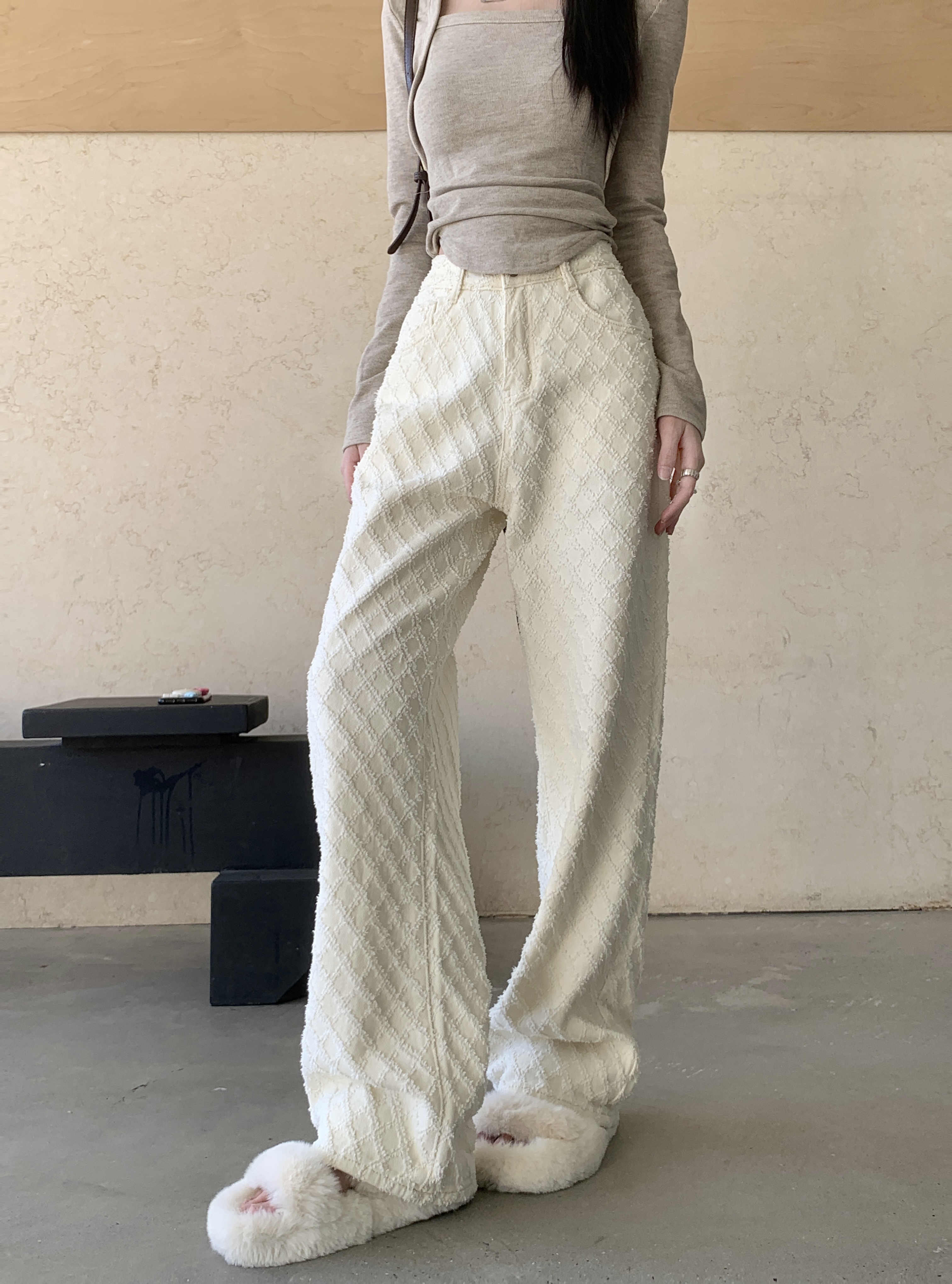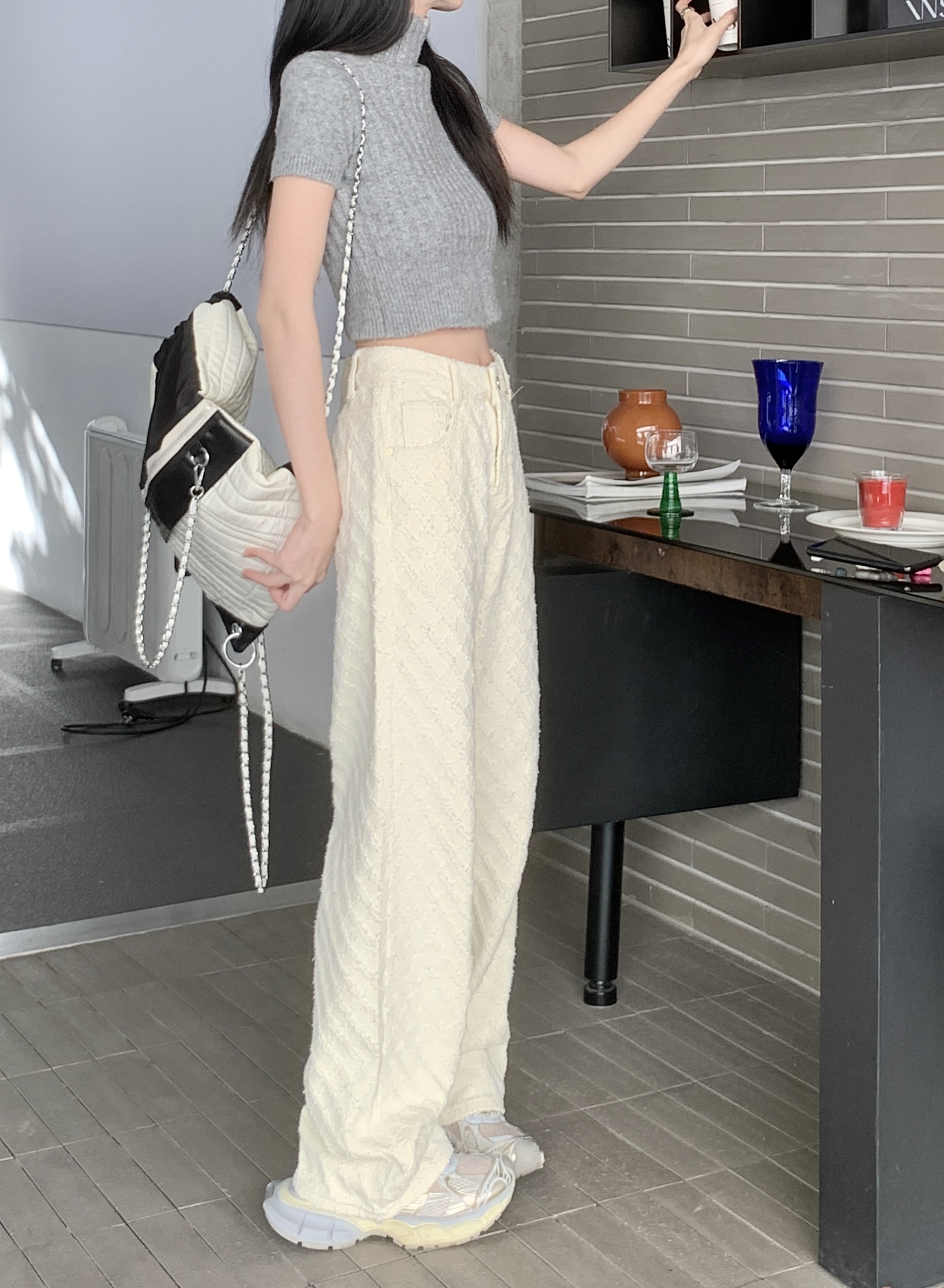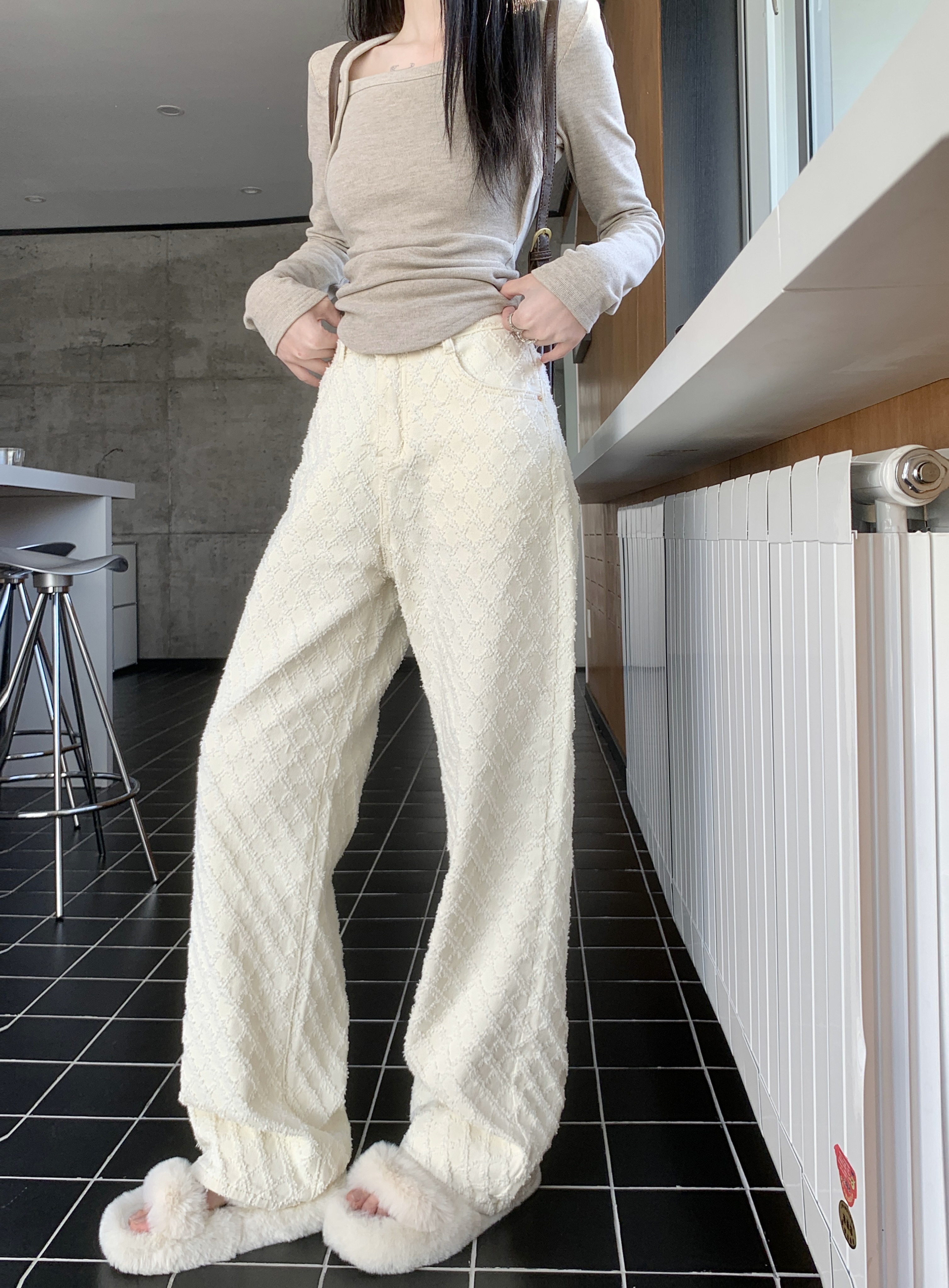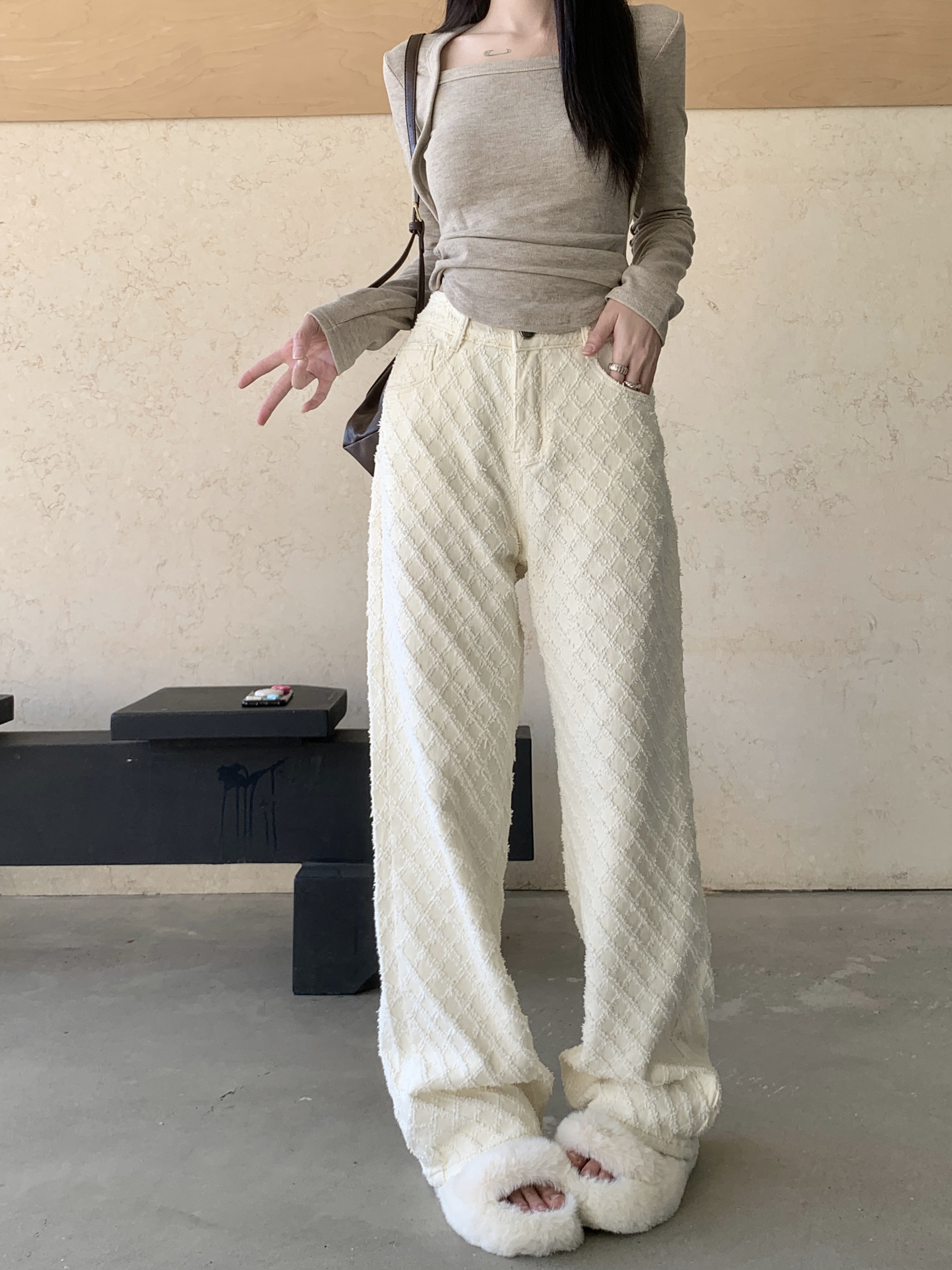 Белые джинсы, весенние штаны, высокая талия, свободный прямой крой