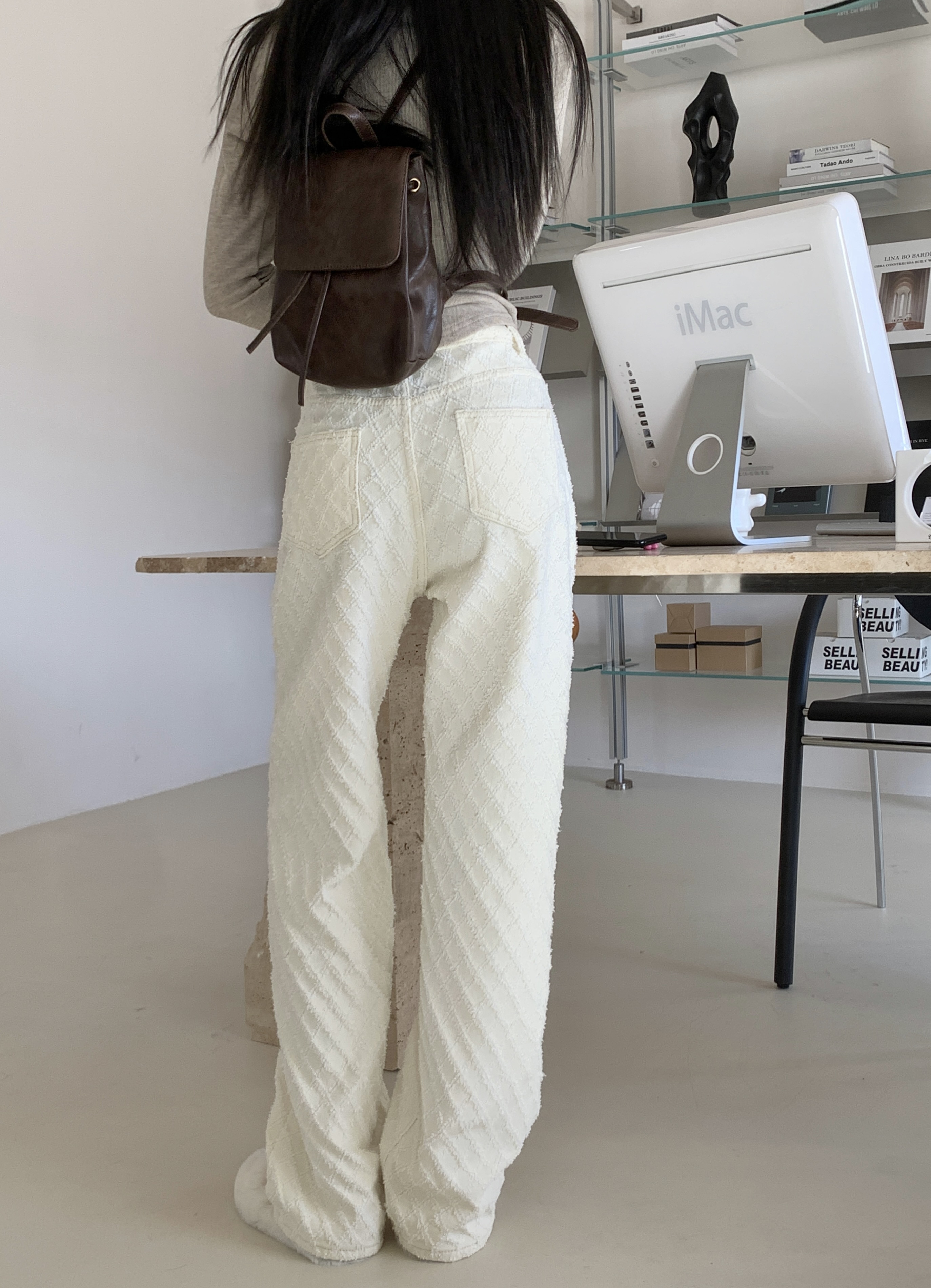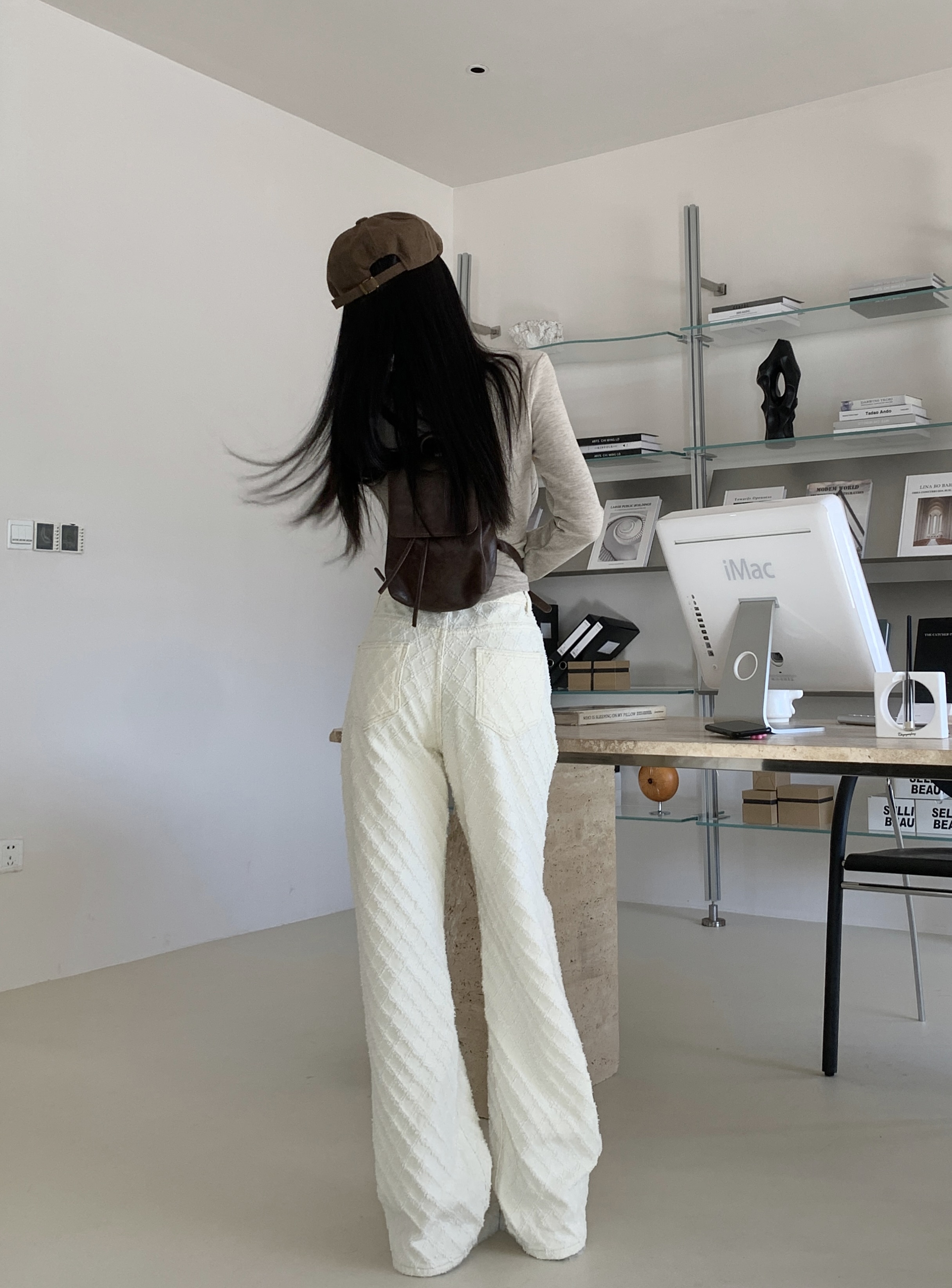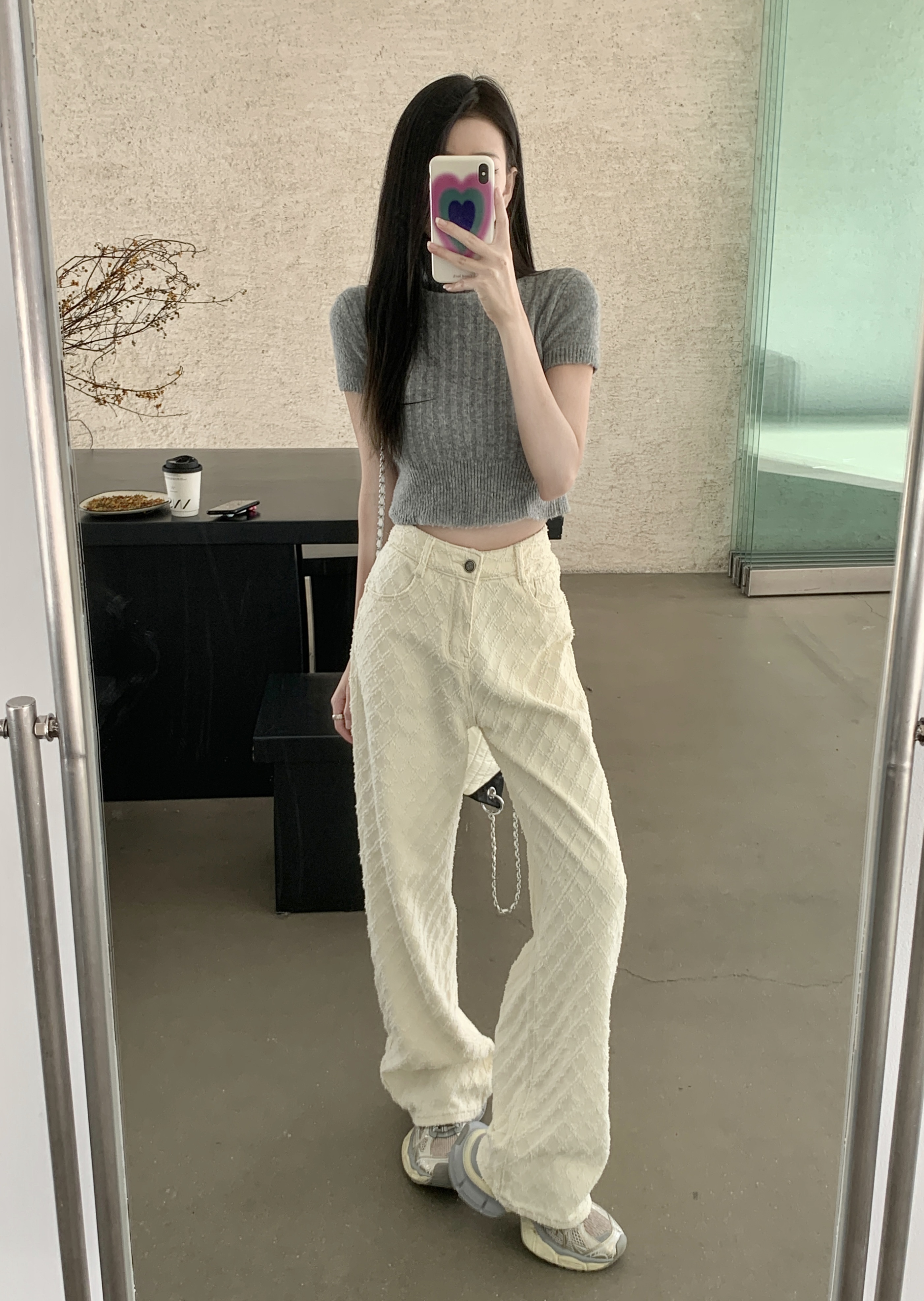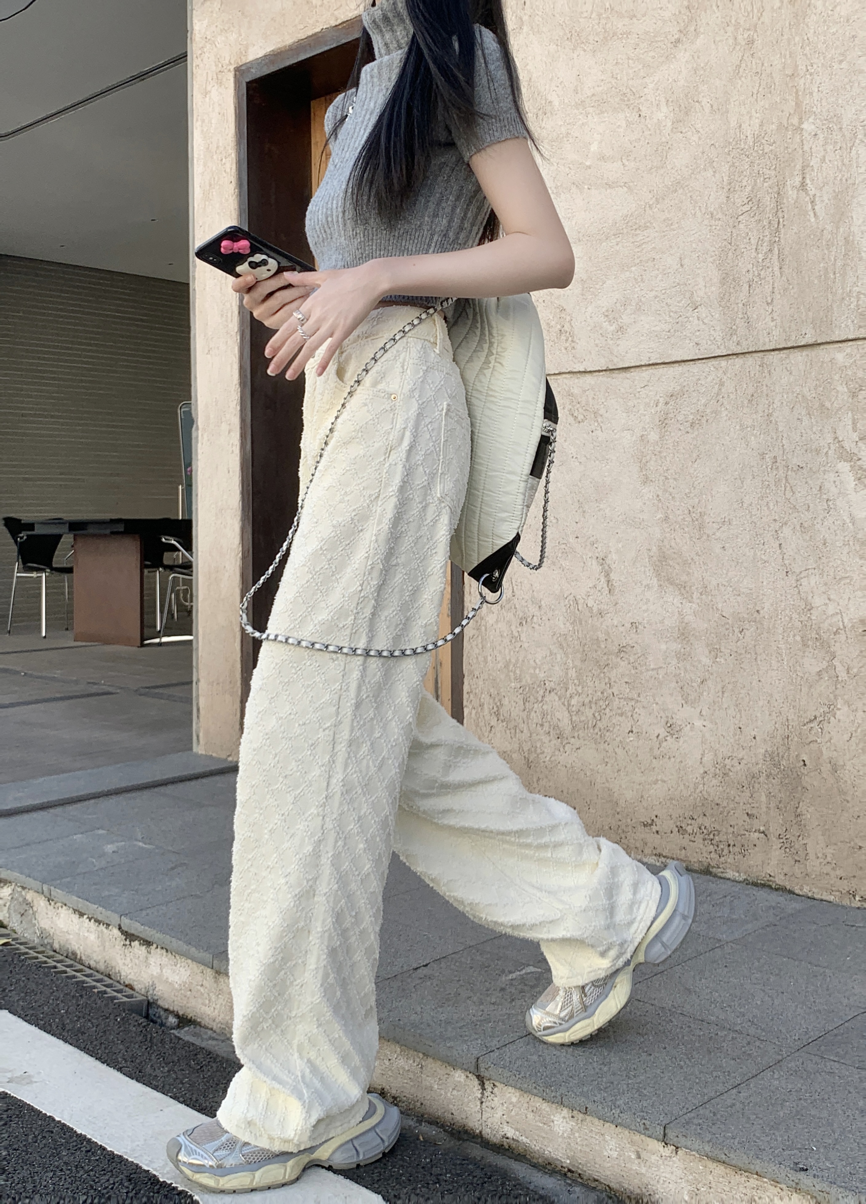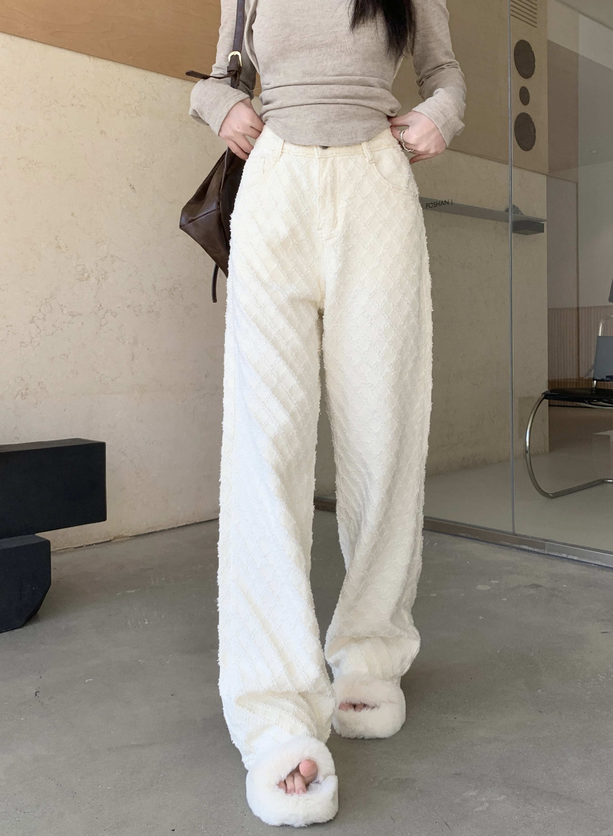 Белые джинсы, весенние штаны, высокая талия, свободный прямой крой