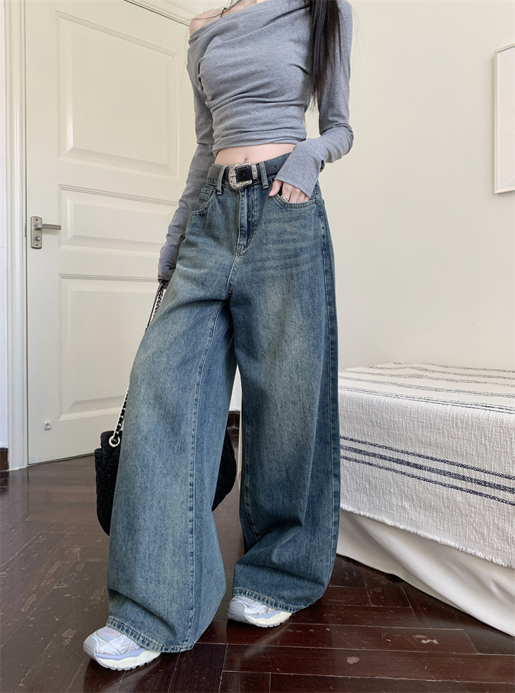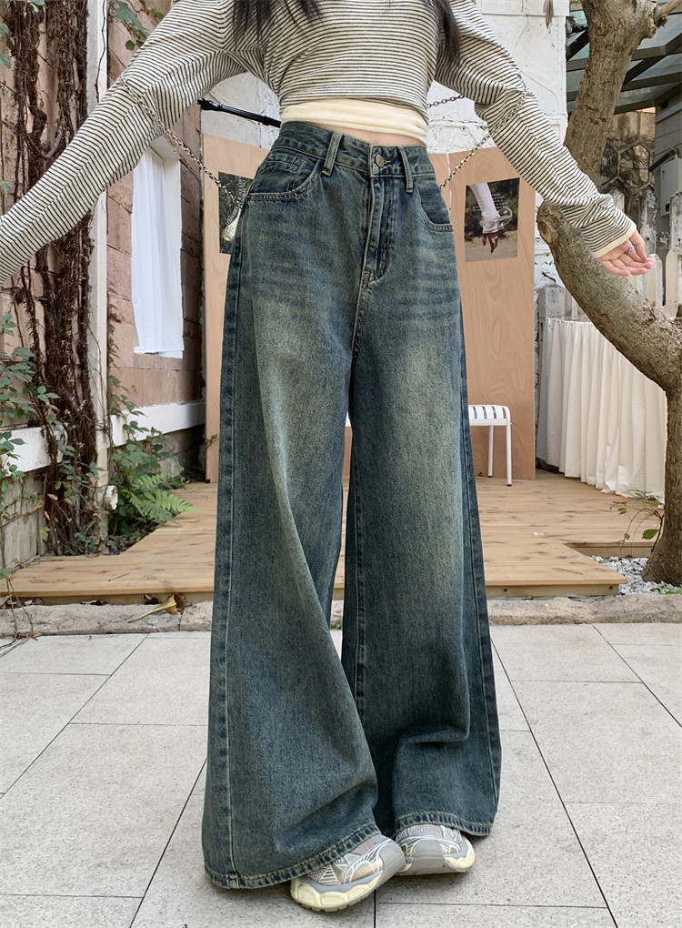 Ретро штаны, джинсы, высокая талия, свободный прямой крой