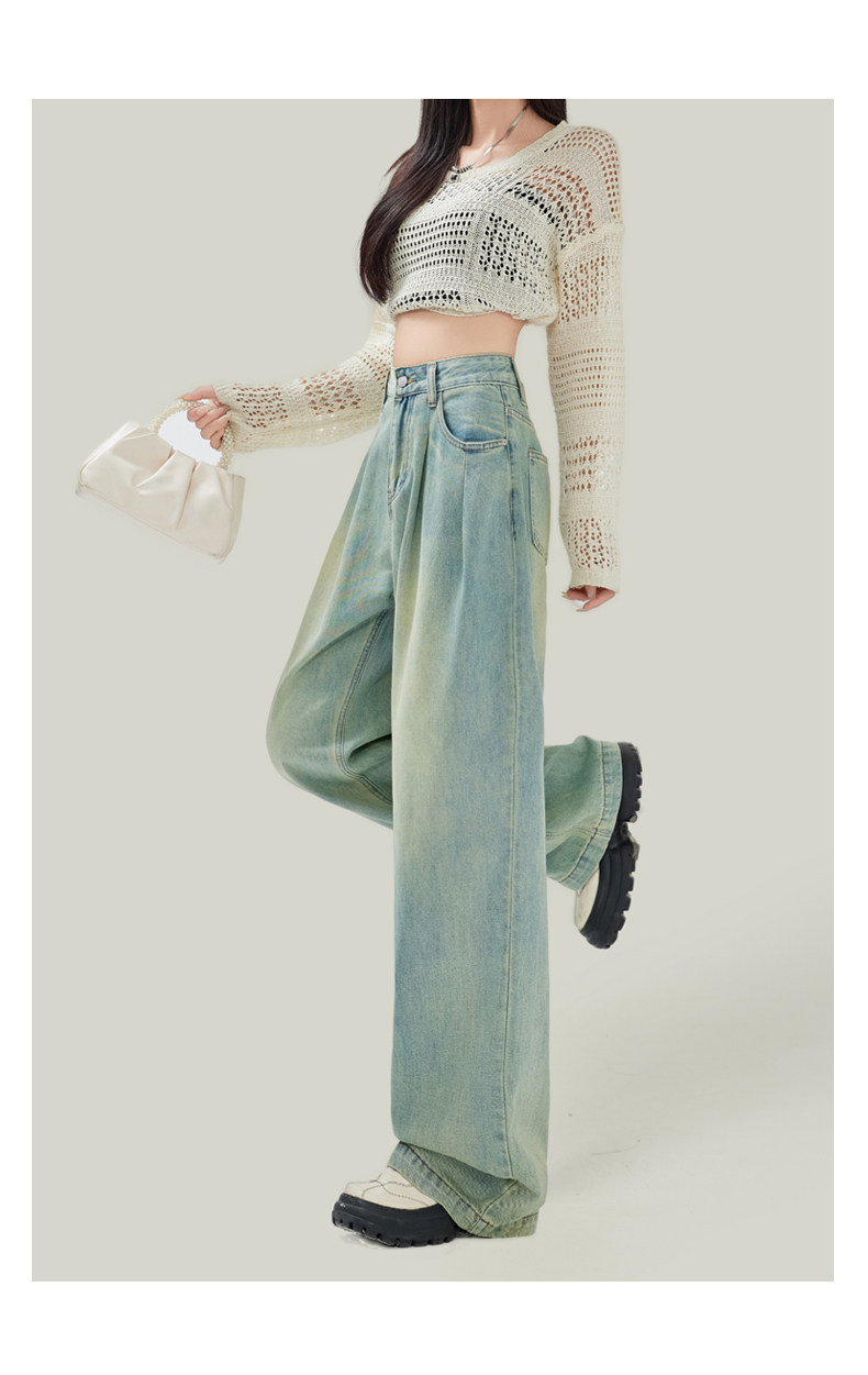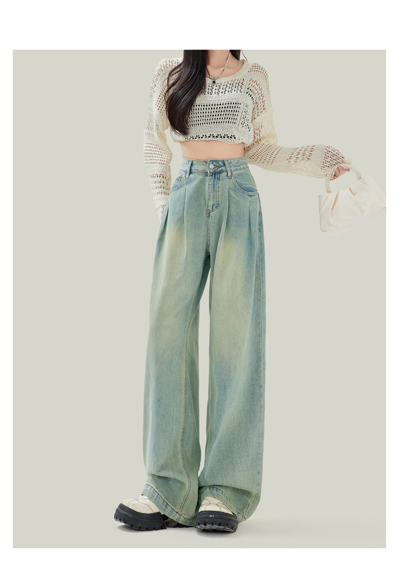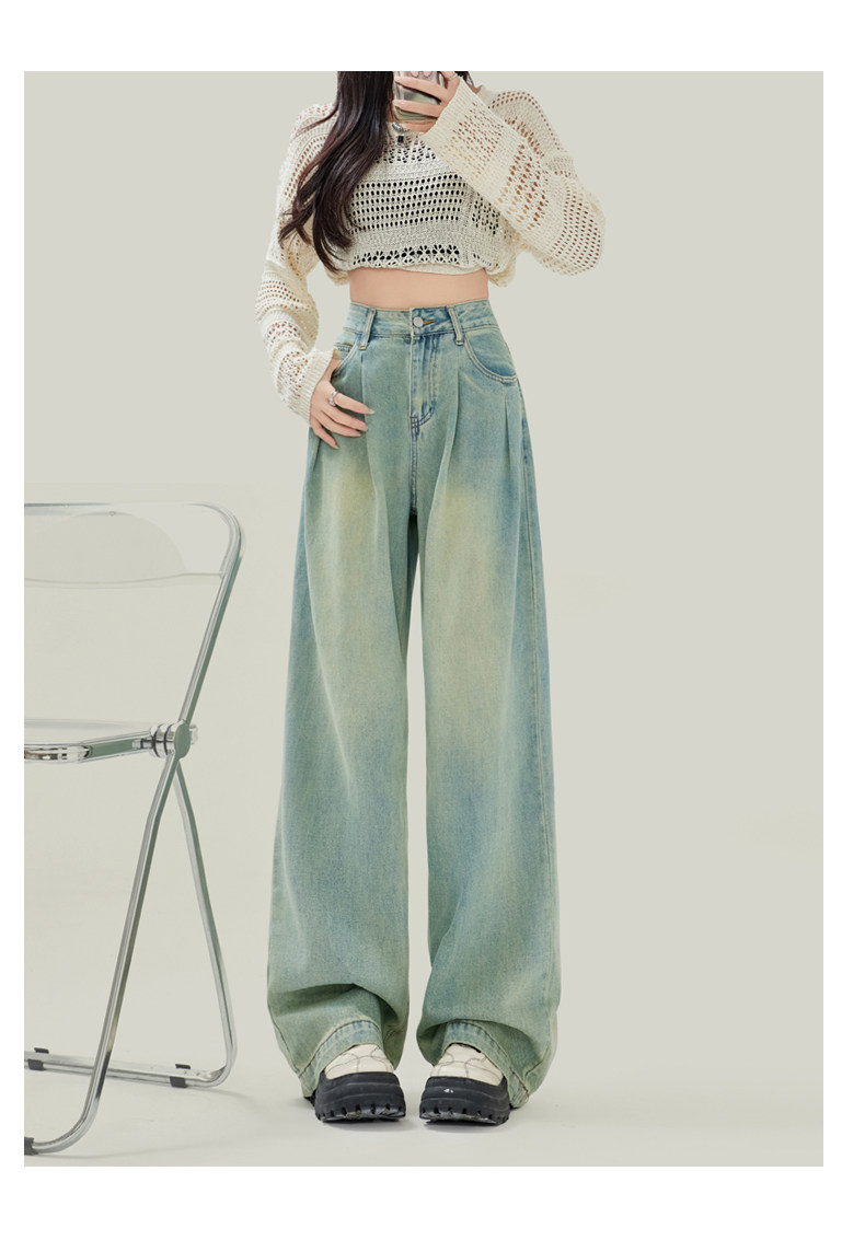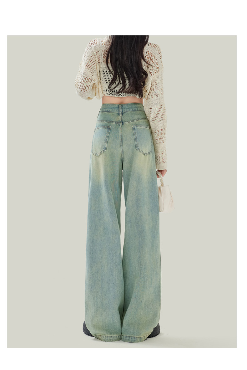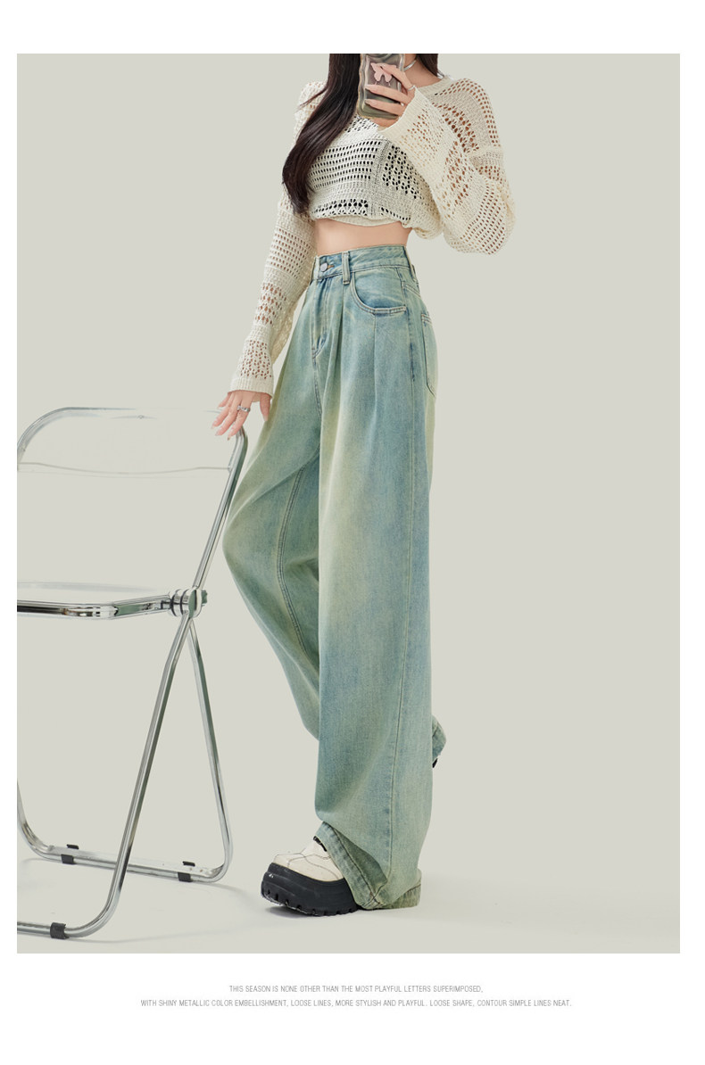 Синие джинсы, штаны, в американском стиле, свободный прямой крой, высокая талия