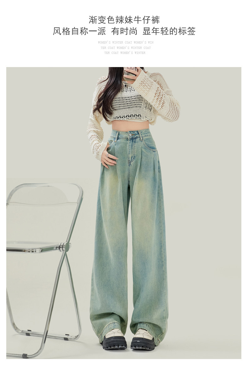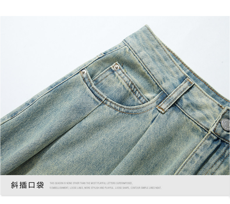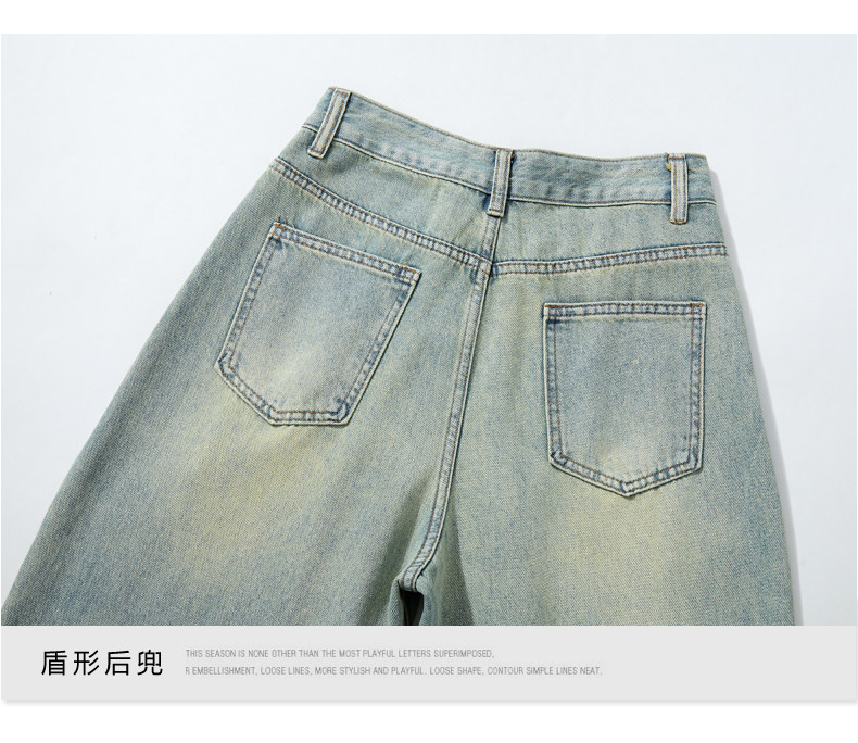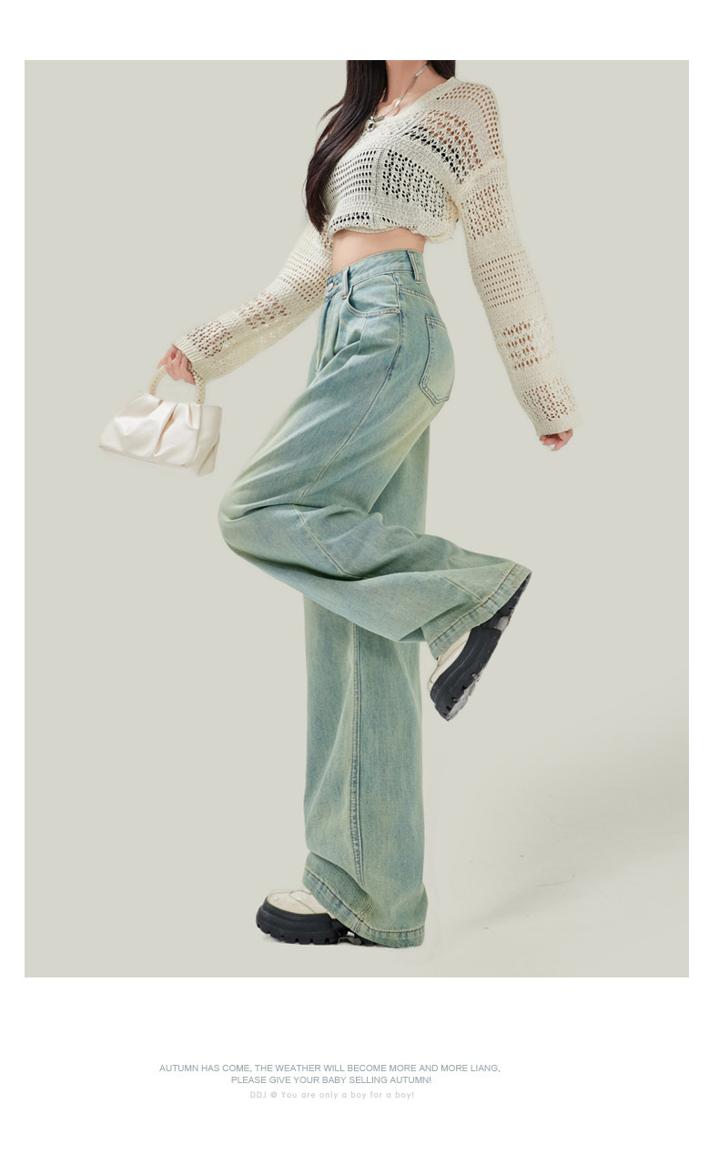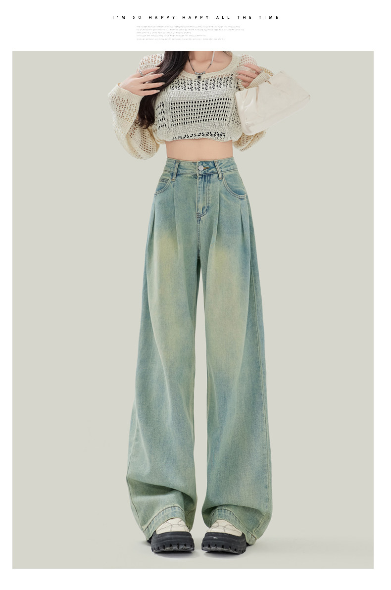 Синие джинсы, штаны, в американском стиле, свободный прямой крой, высокая талия