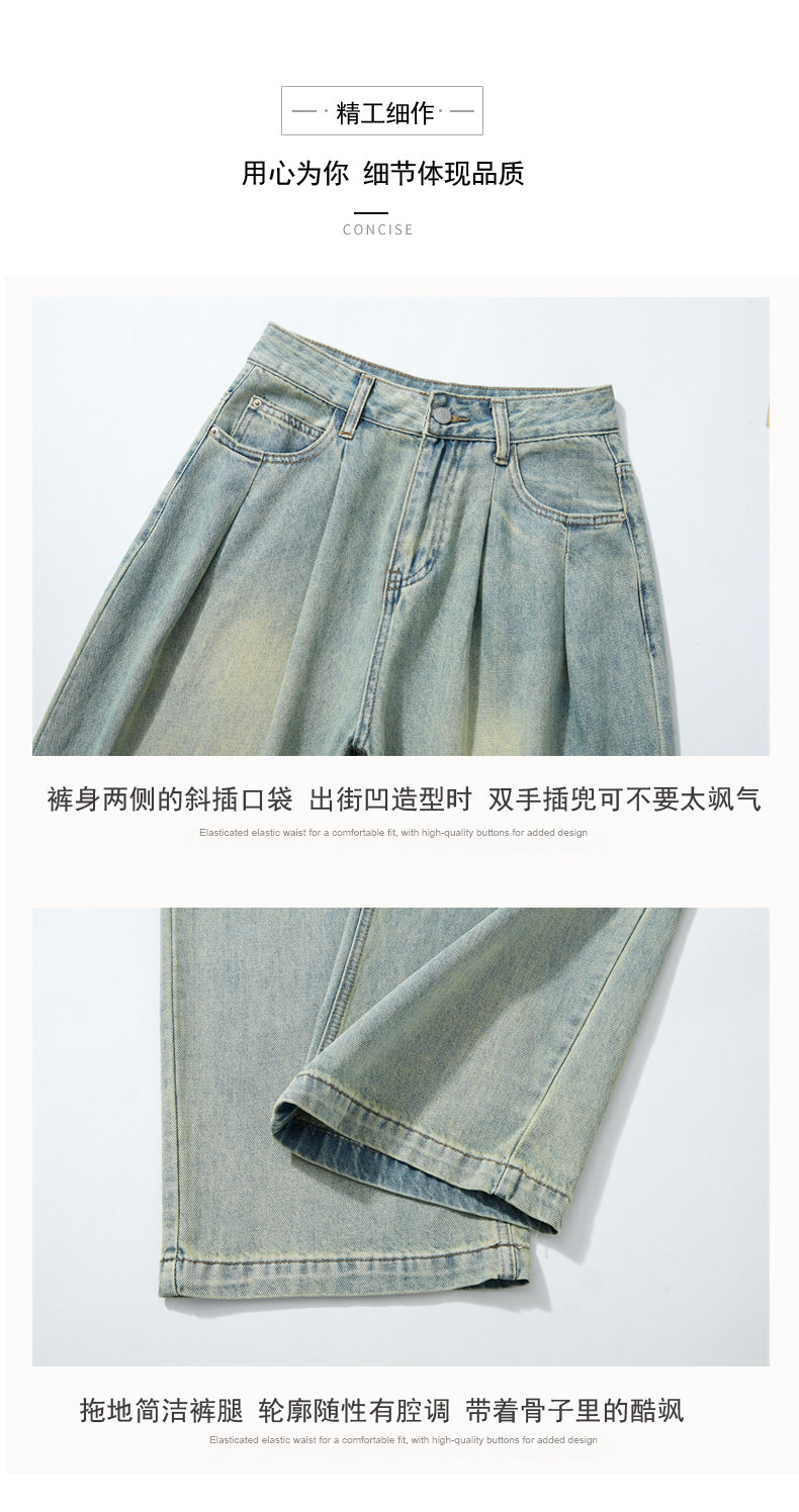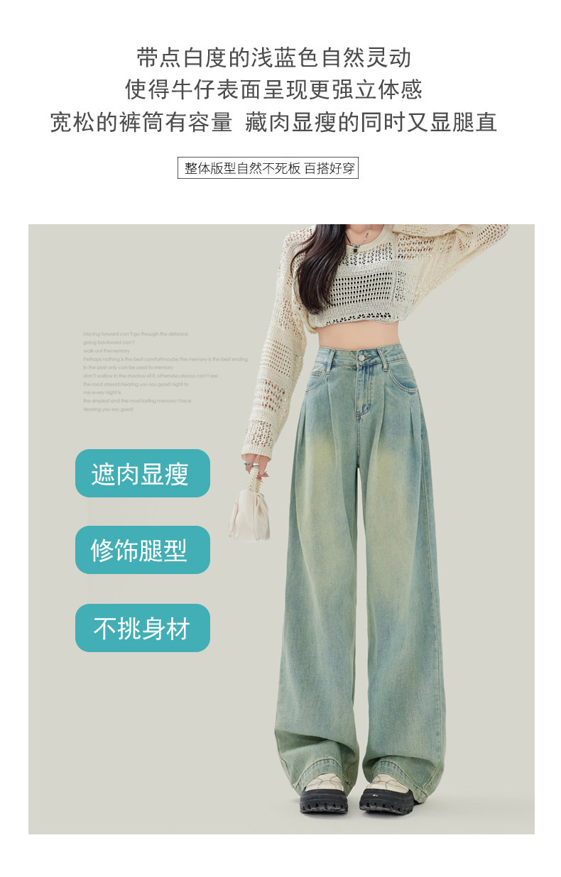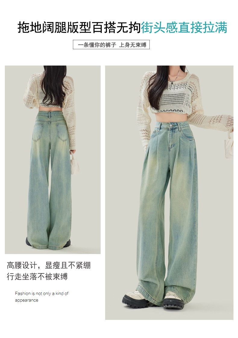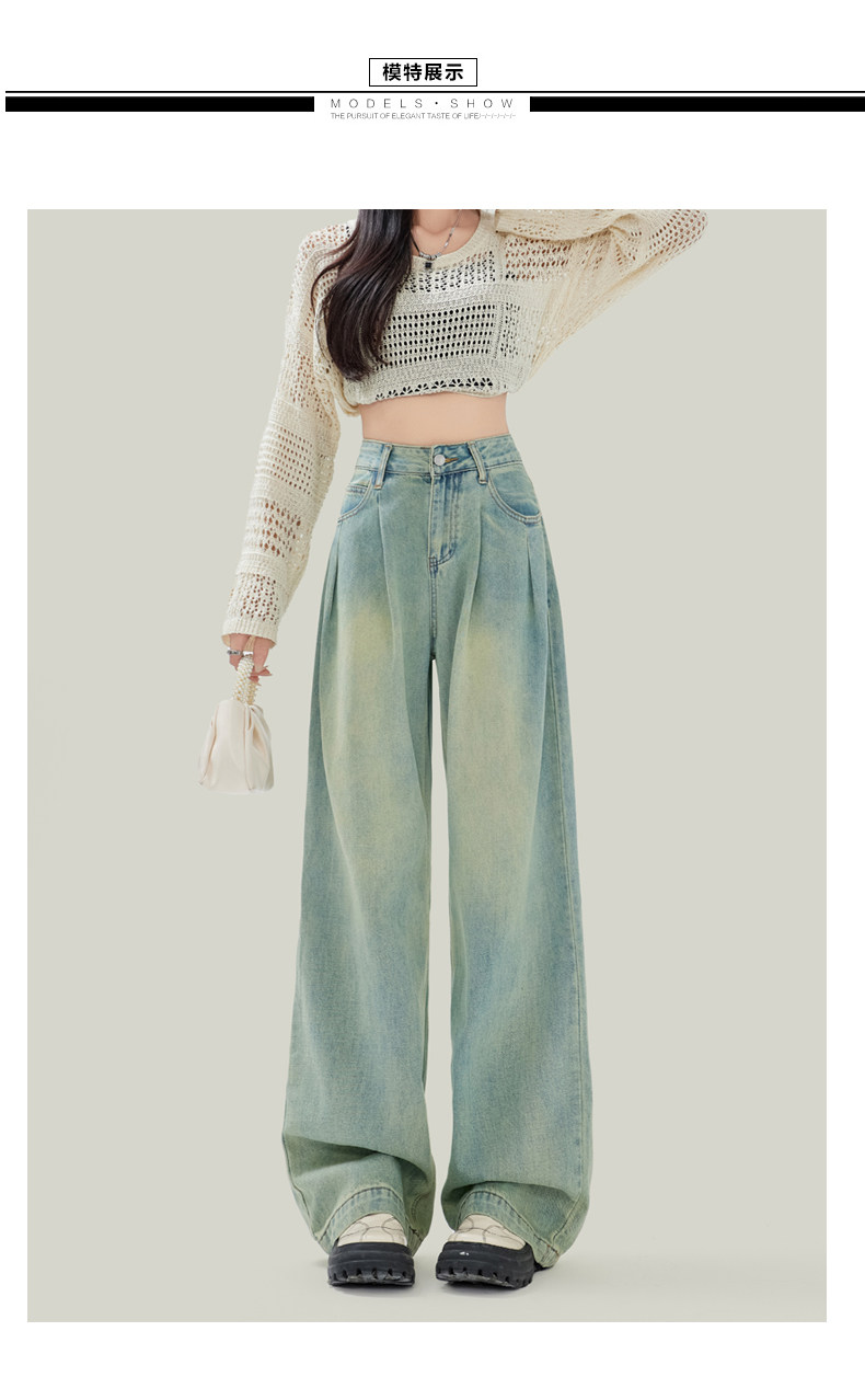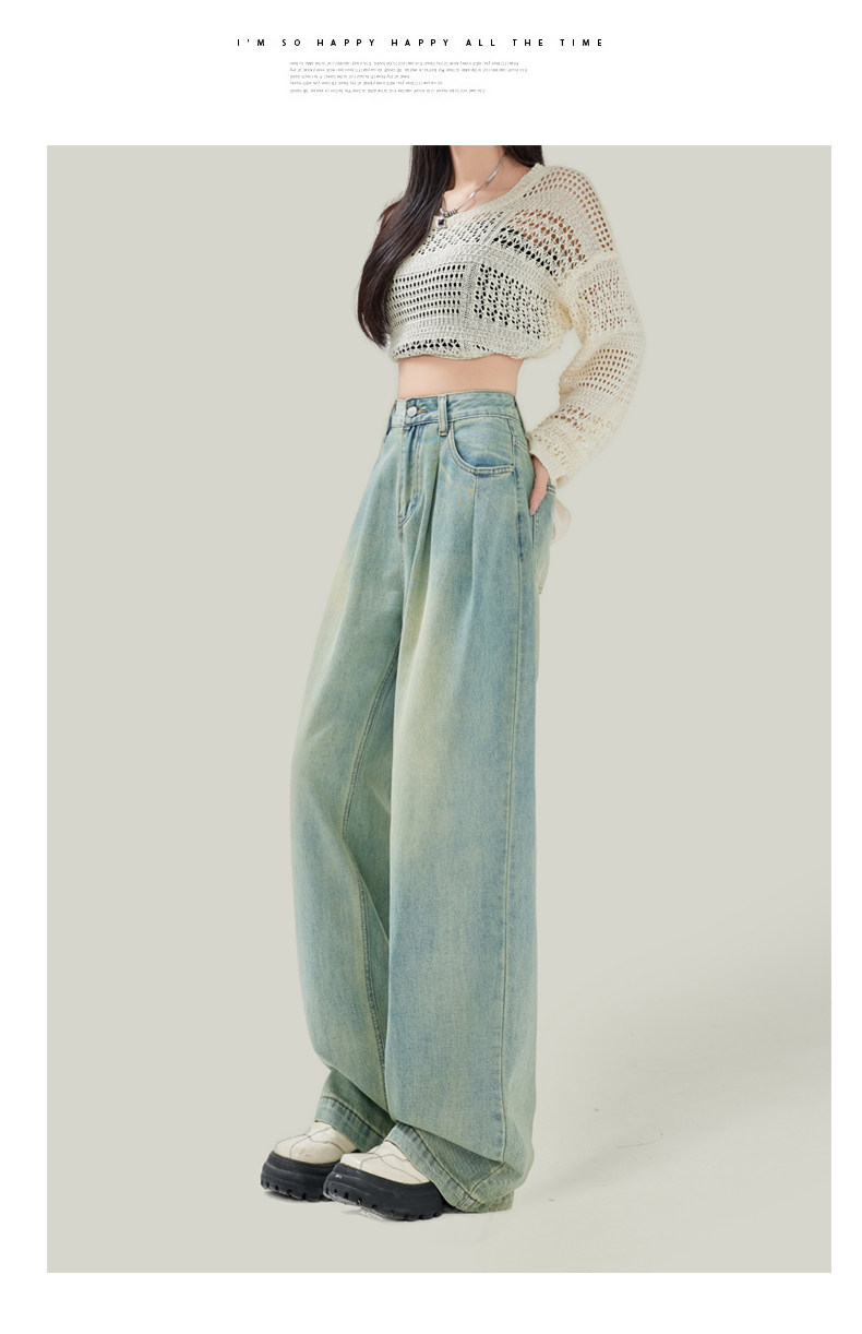 Синие джинсы, штаны, в американском стиле, свободный прямой крой, высокая талия