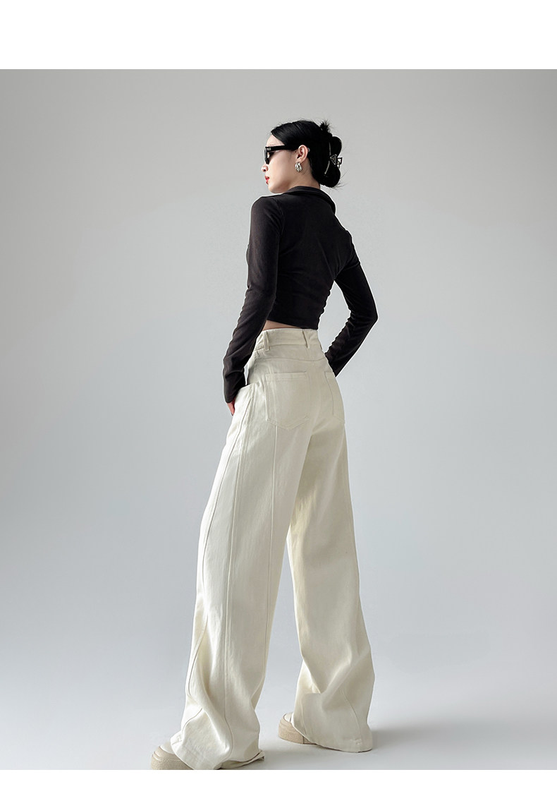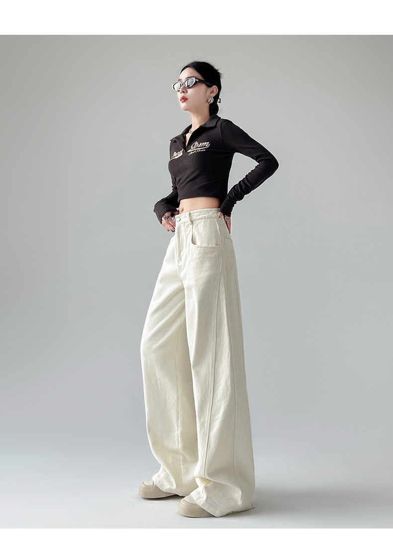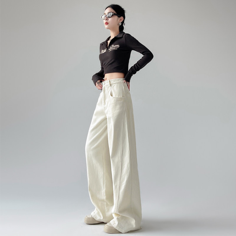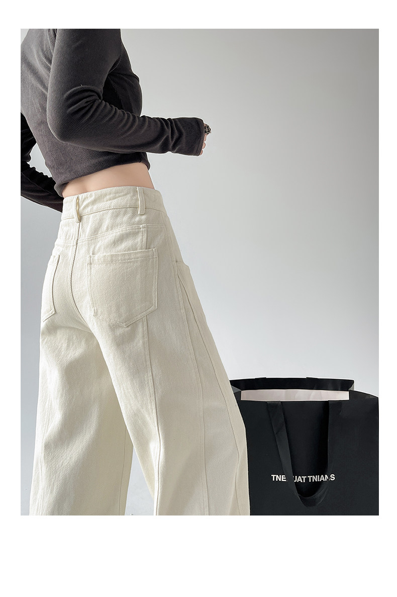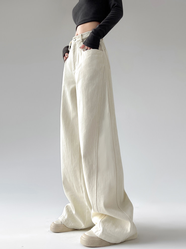 Белые осенние джинсы, ретро штаны, высокая талия, свободный прямой крой