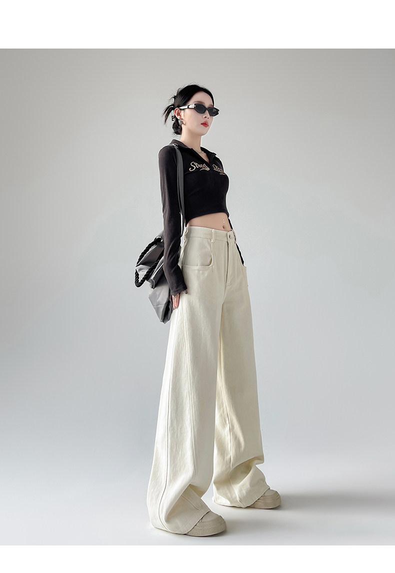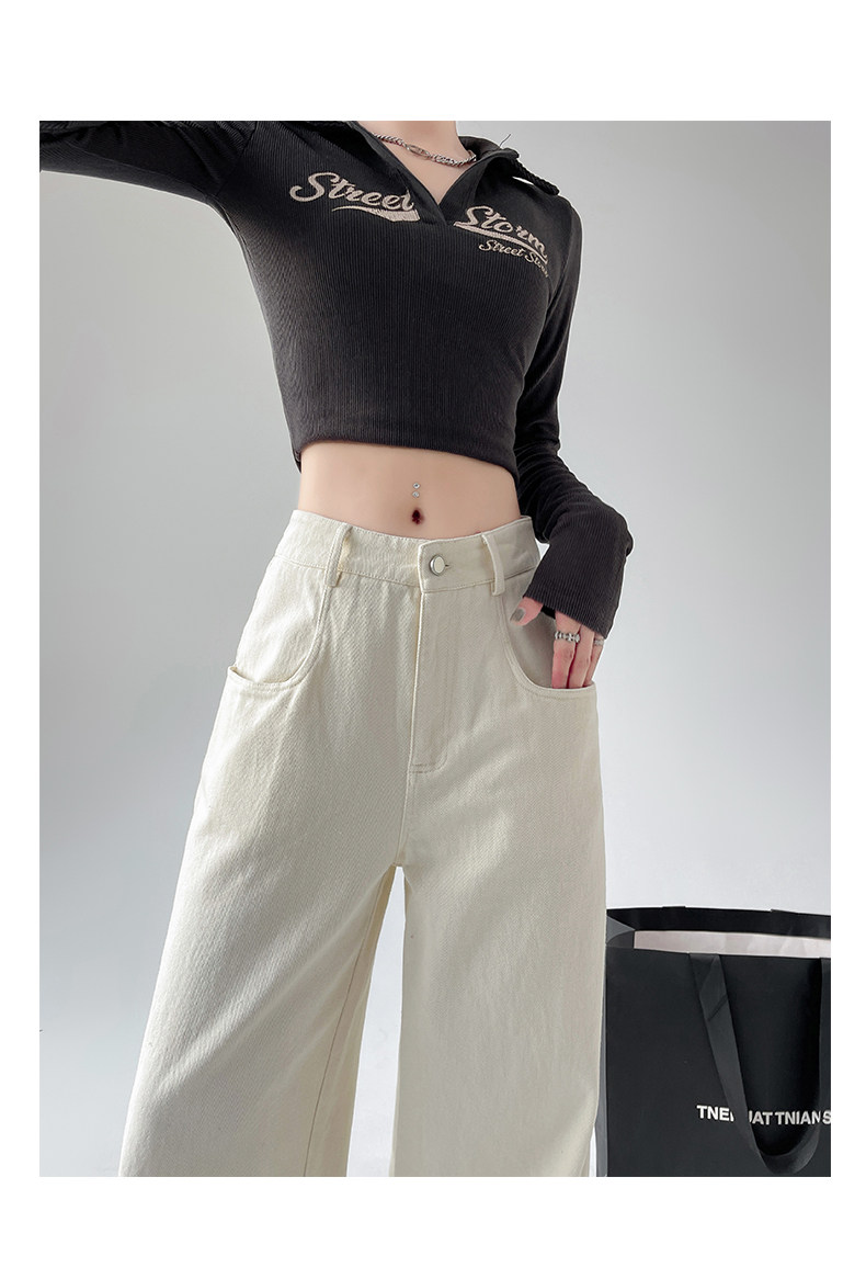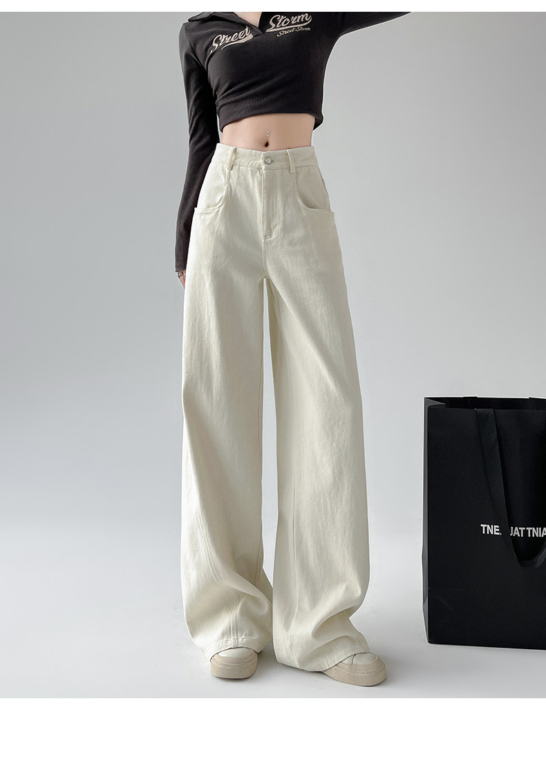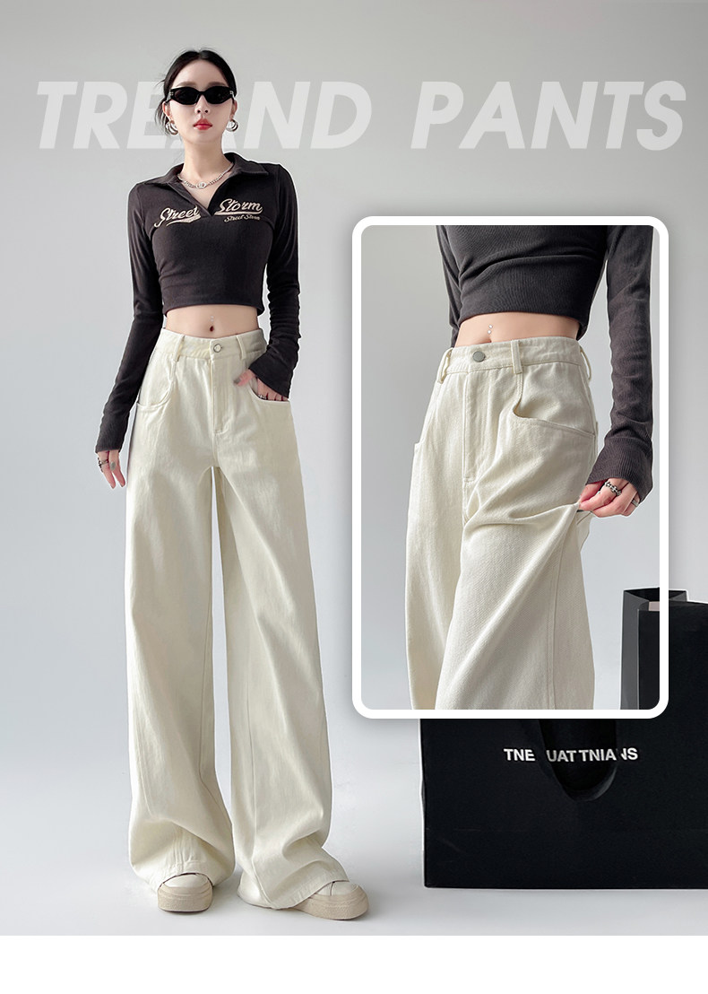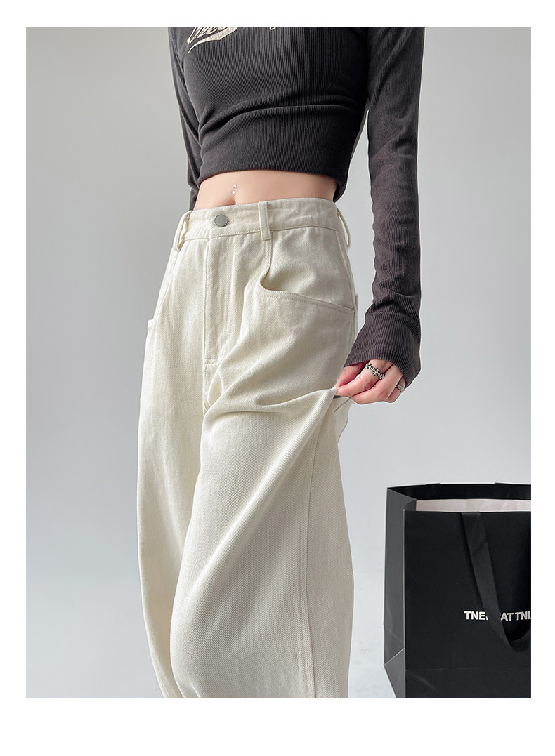 Белые осенние джинсы, ретро штаны, высокая талия, свободный прямой крой