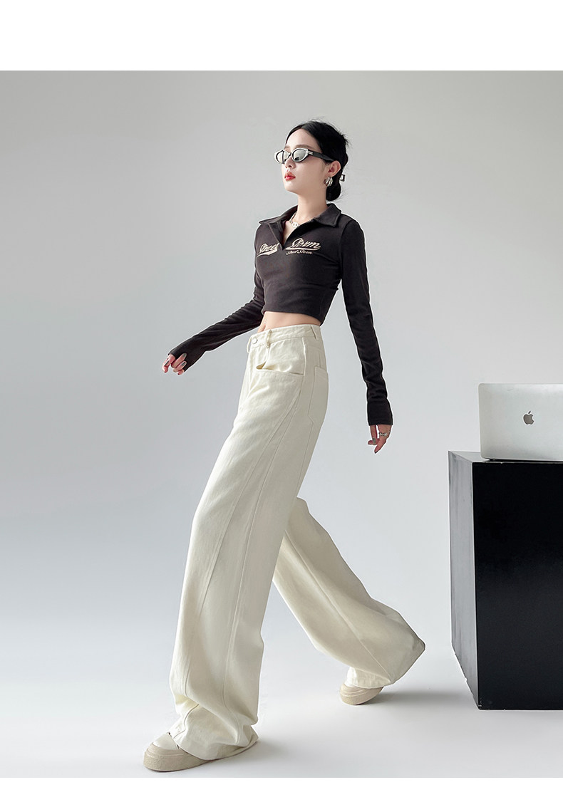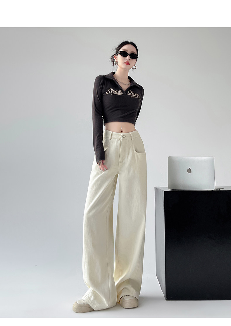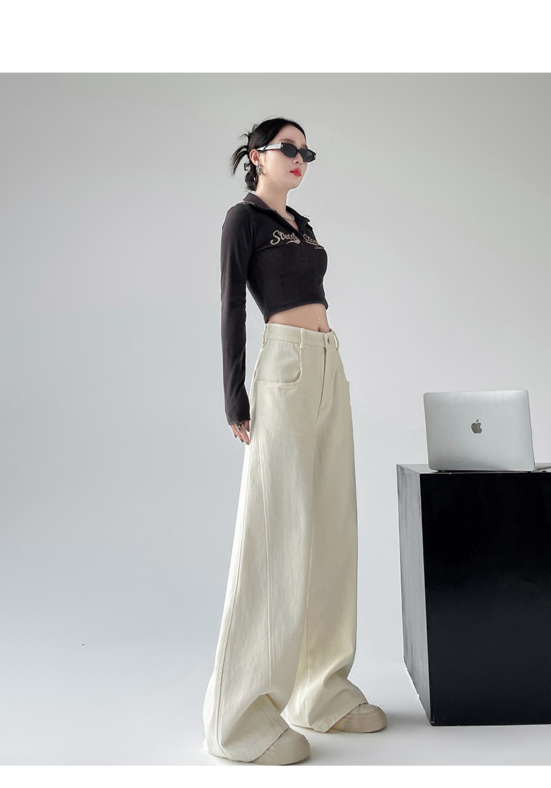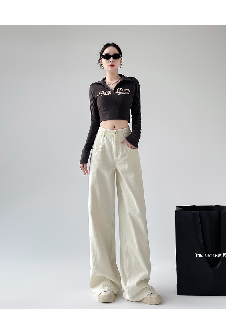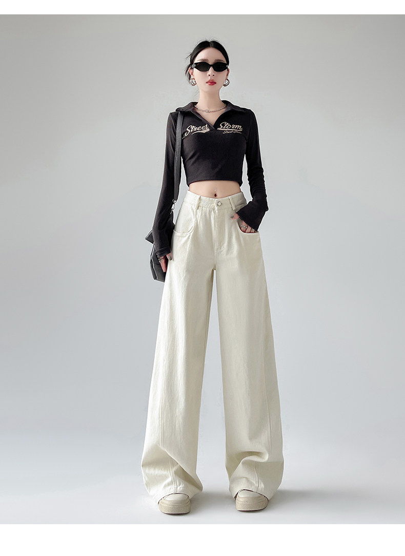 Белые осенние джинсы, ретро штаны, высокая талия, свободный прямой крой