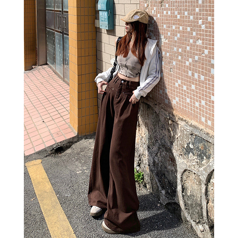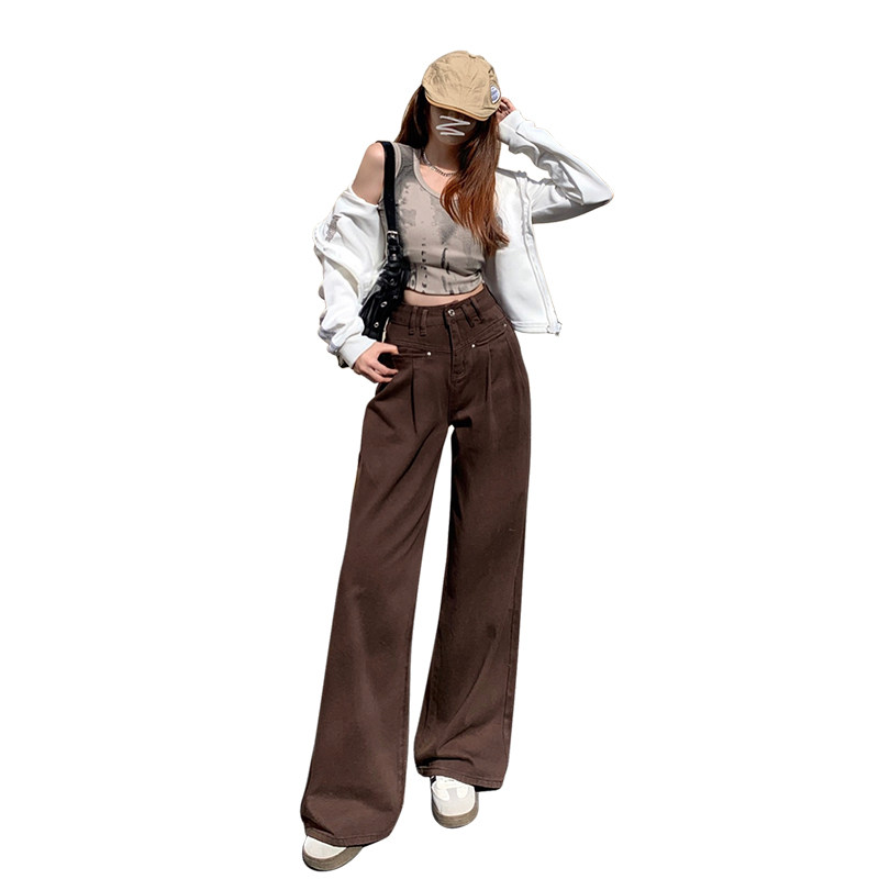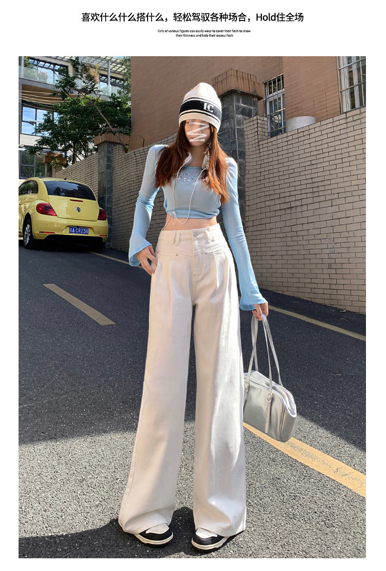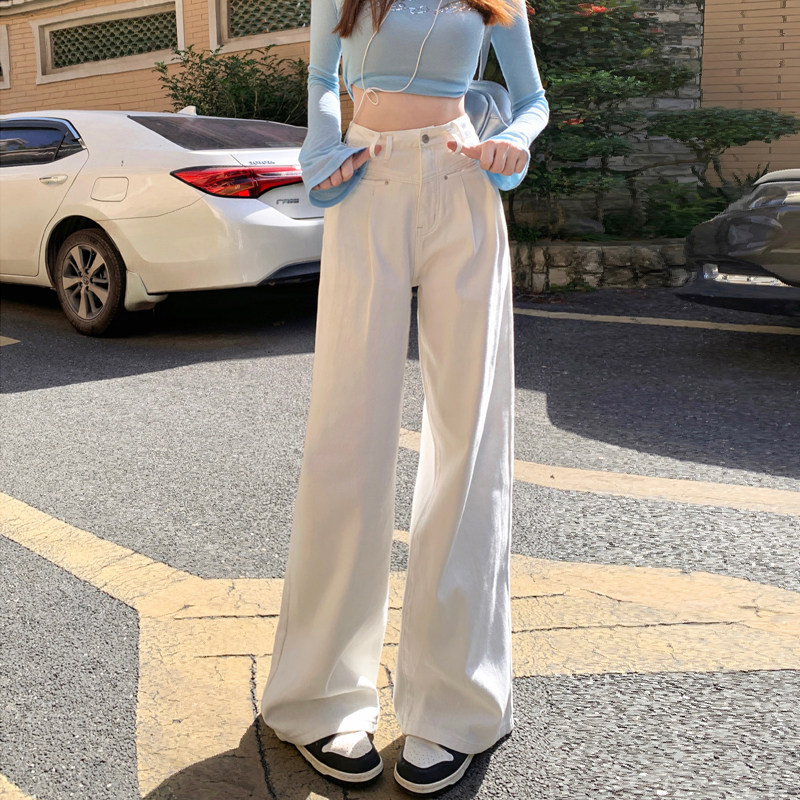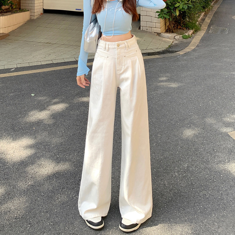 Бежевые осенние джинсы, приталенные штаны, высокая талия