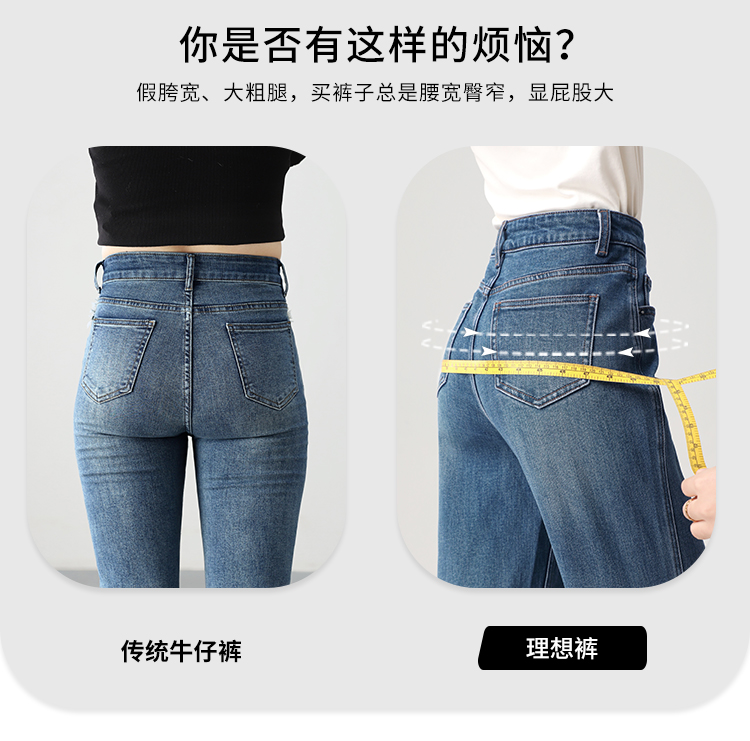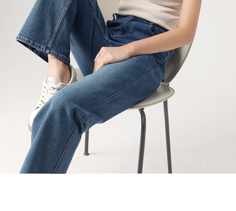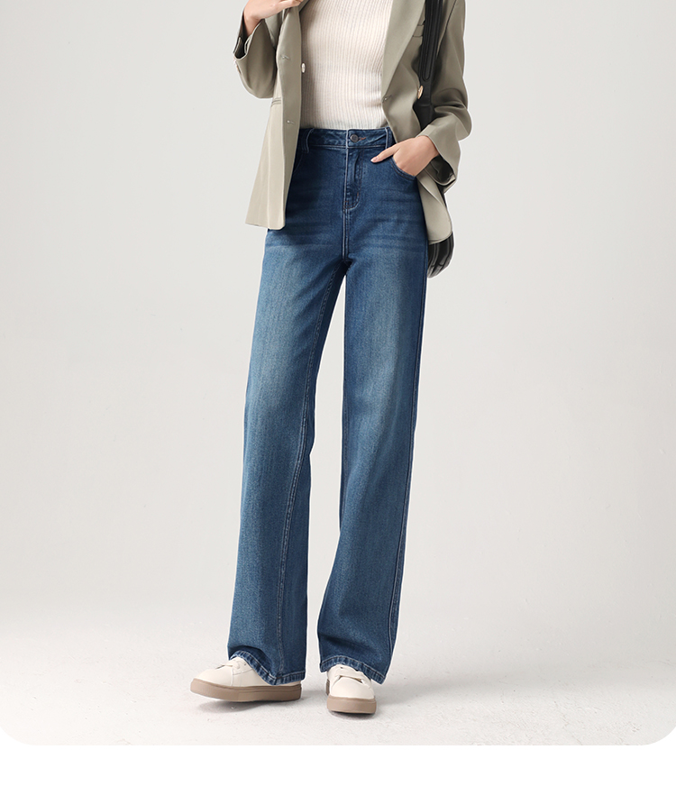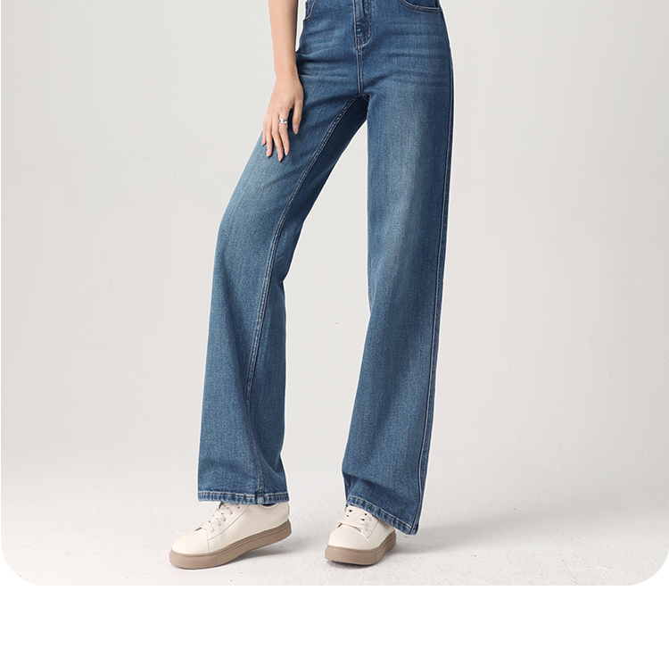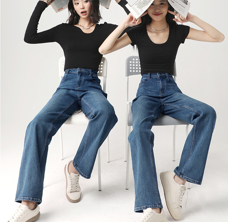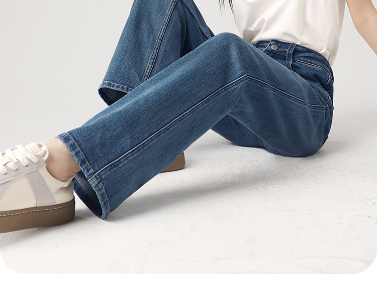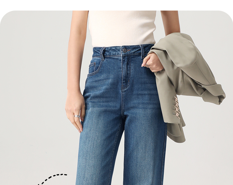 Штаны, весенние летние приталенные синие джинсы, высокая талия, свободный прямой крой