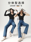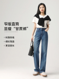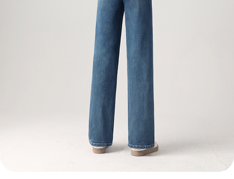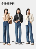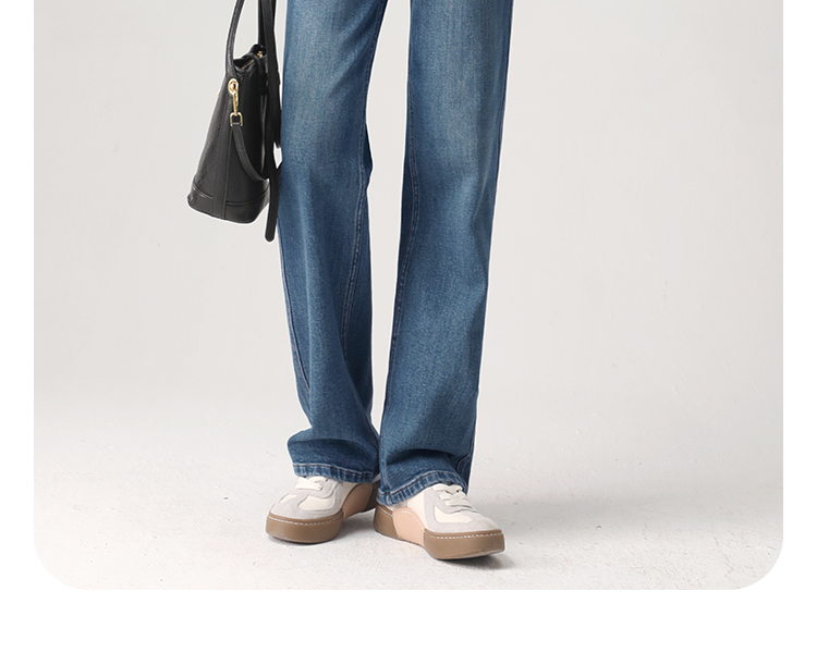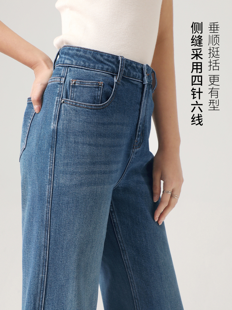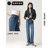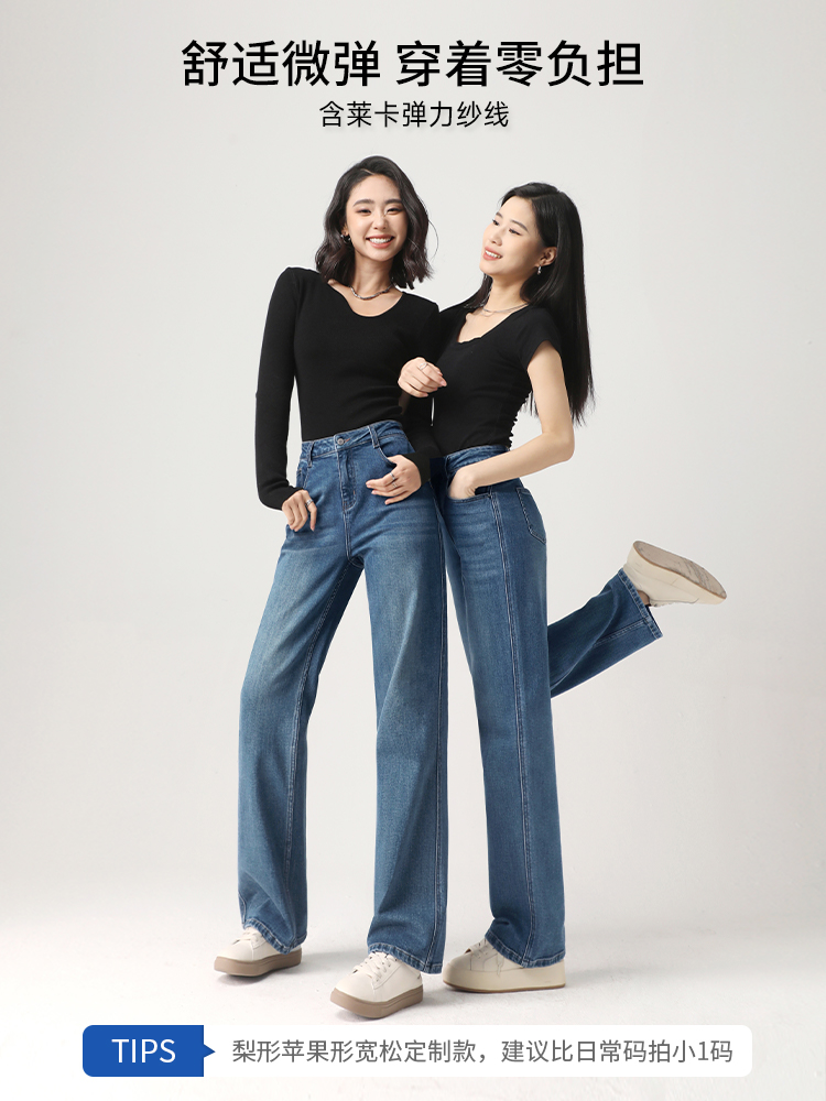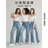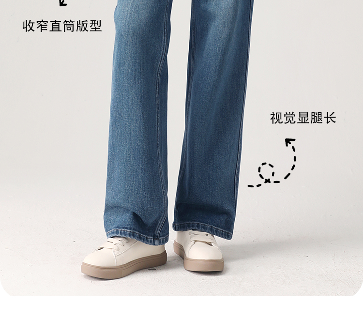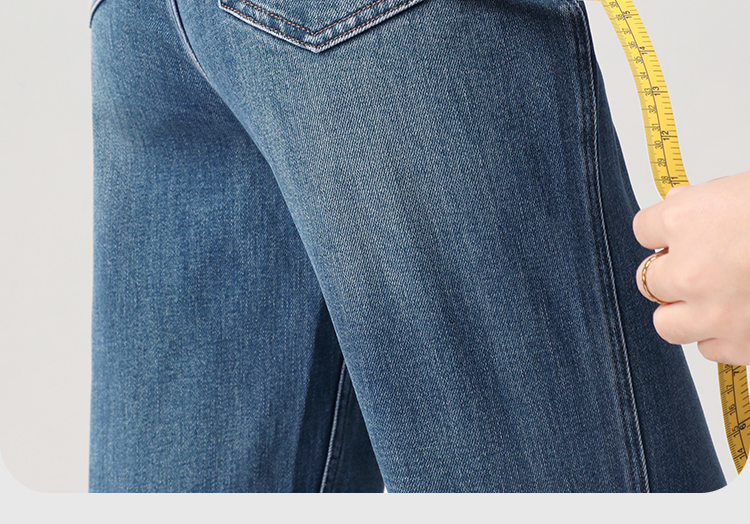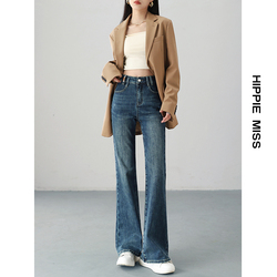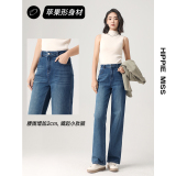 Штаны, весенние летние приталенные синие джинсы, высокая талия, свободный прямой крой