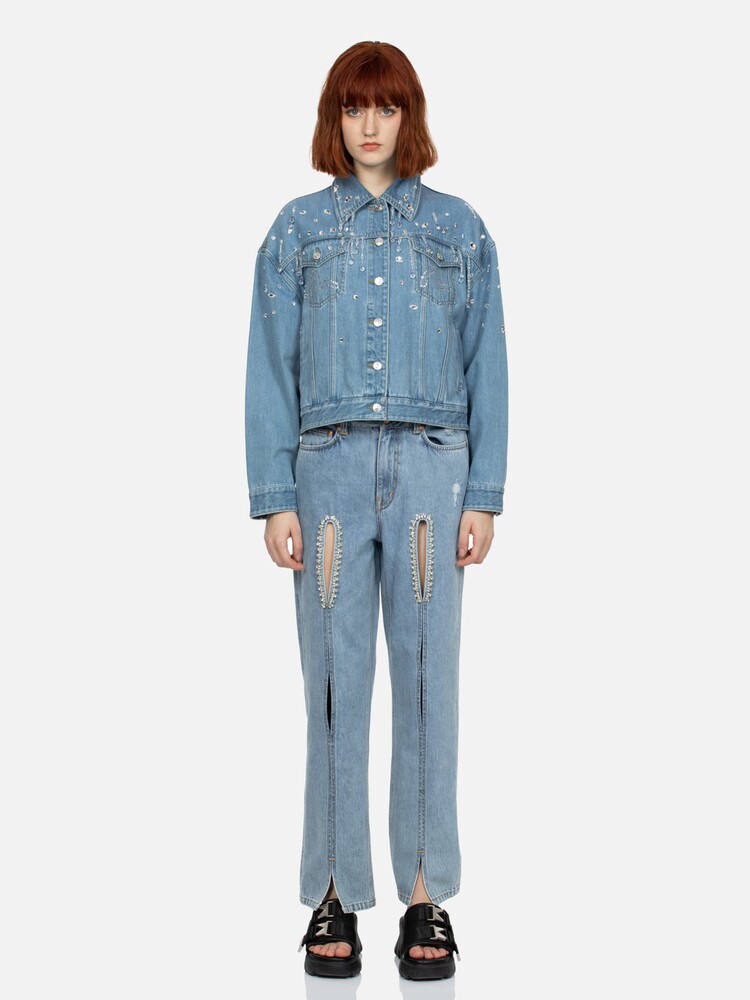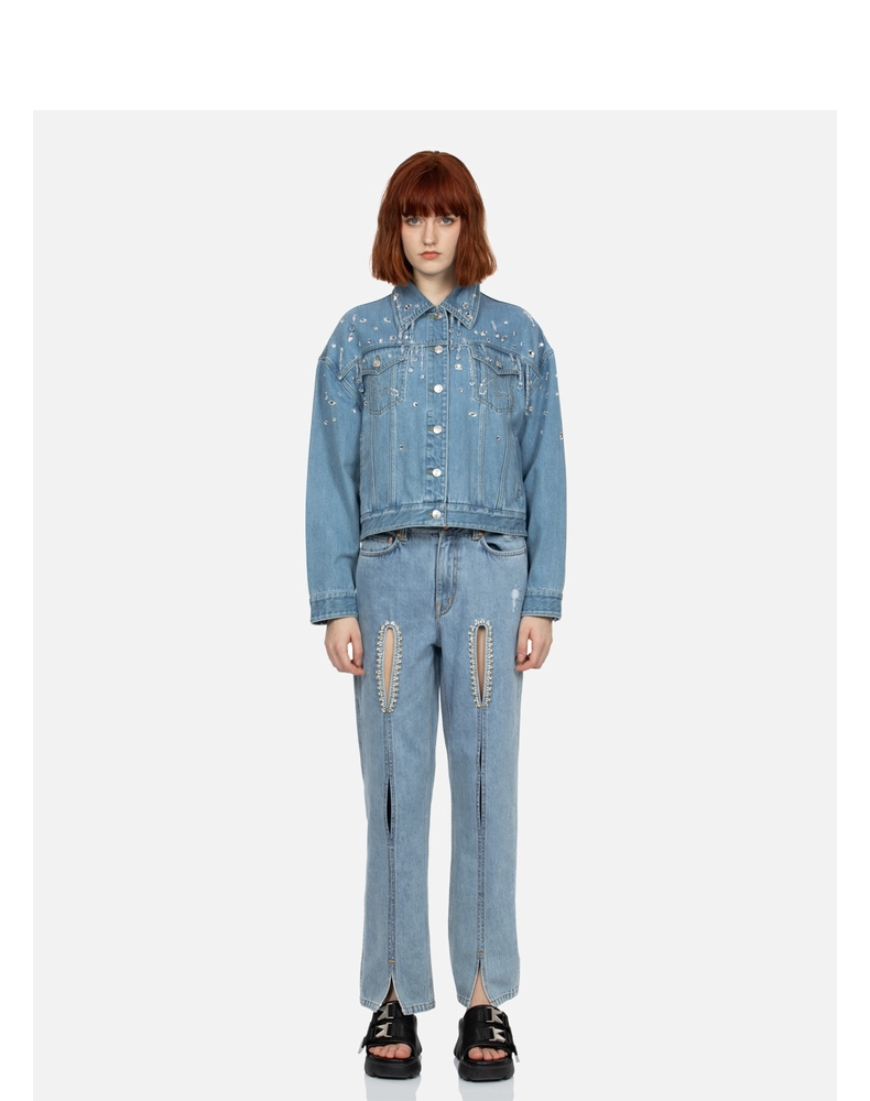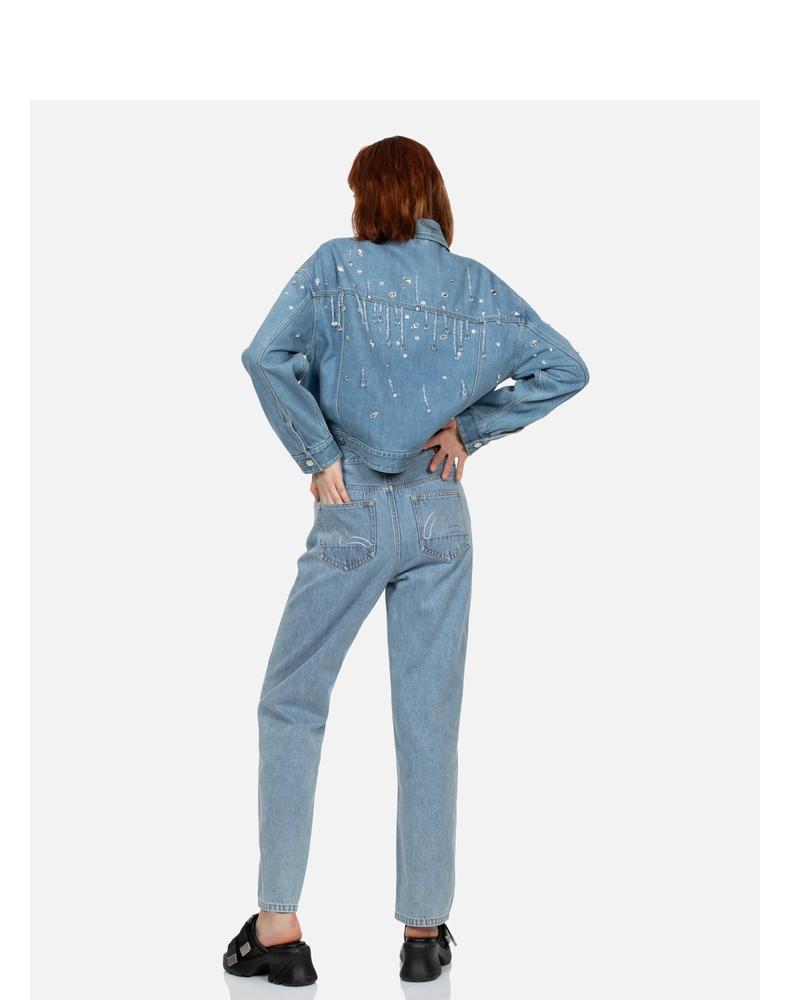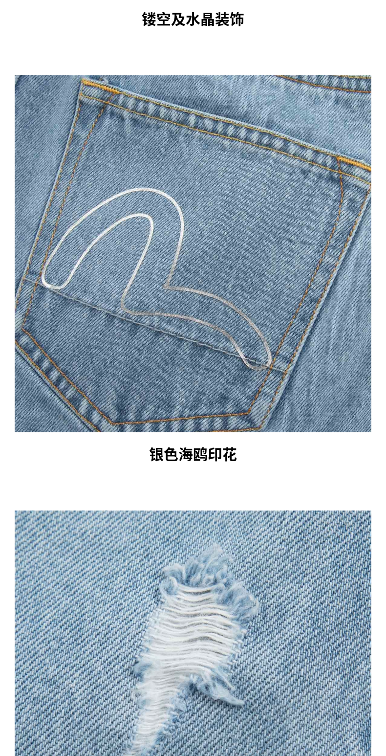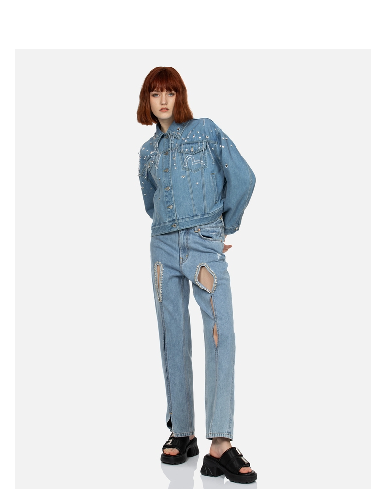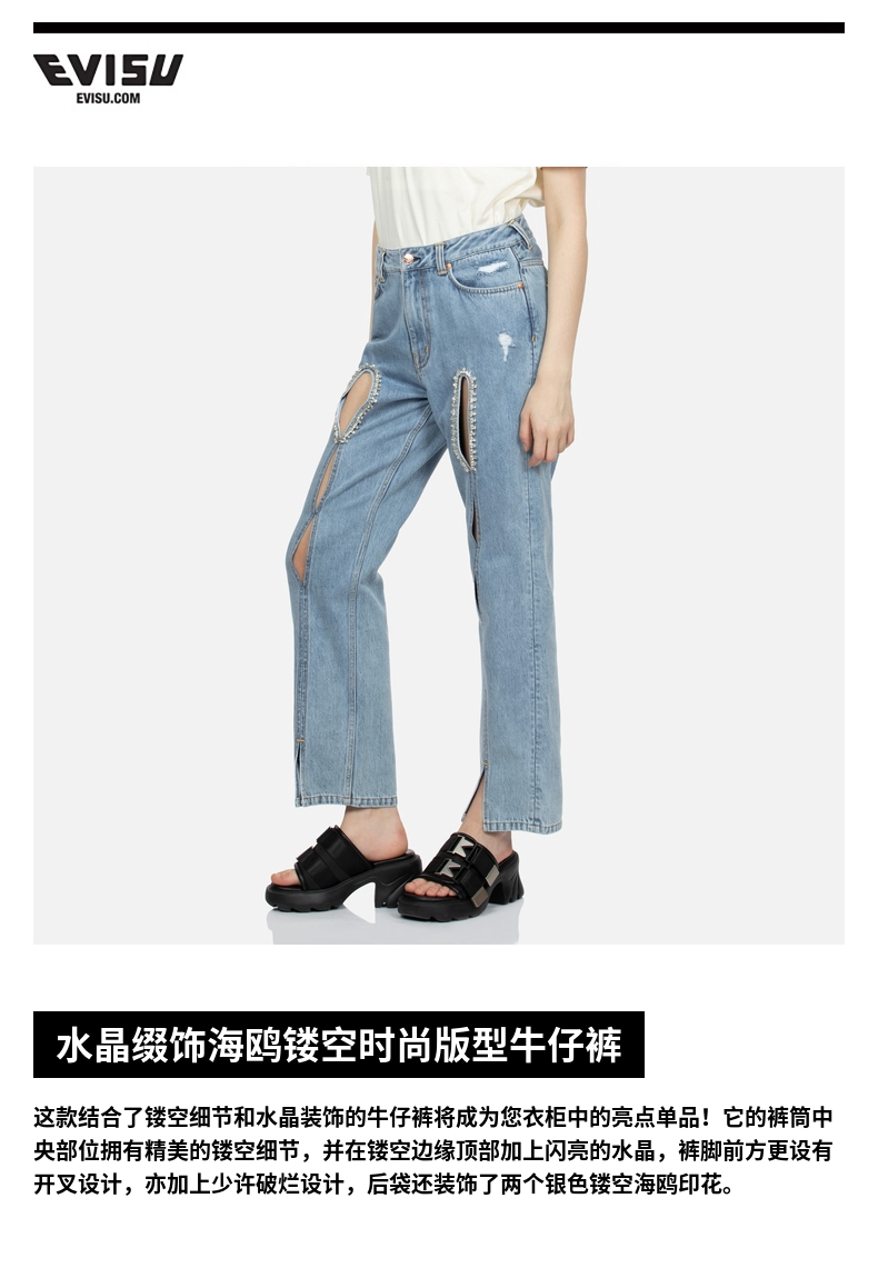 Женские джинсы EVISU с кристаллами и вырезом в форме чайки