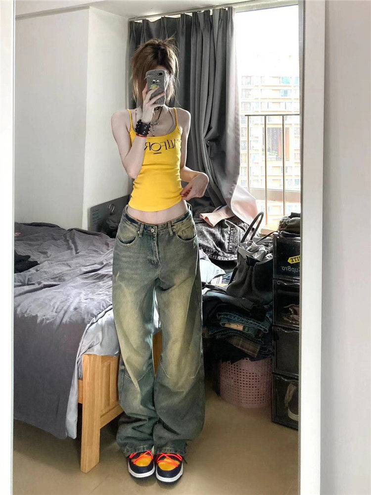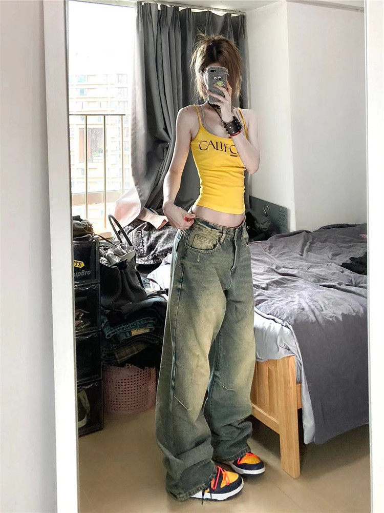 Длинные ретро осенние джинсы, штаны, в американском стиле, свободный крой