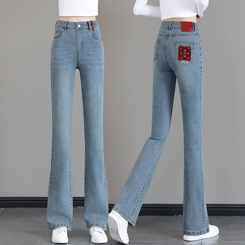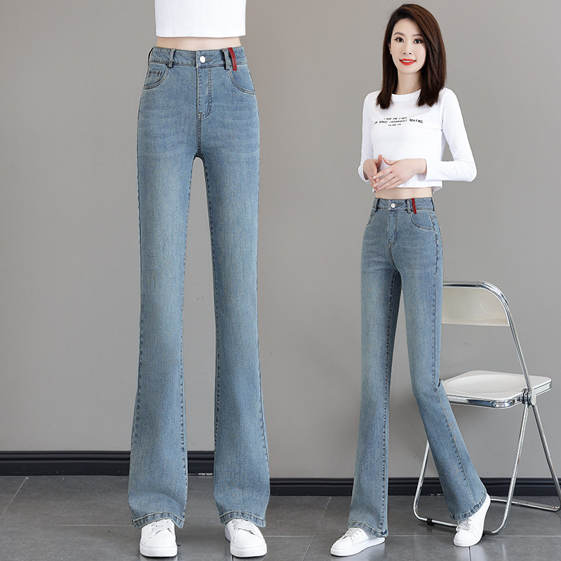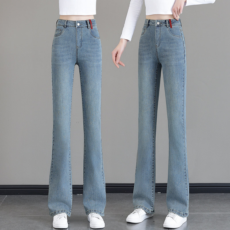 Синие джинсы, весенние осенние штаны, штаны-клёш, 2025 года, высокая талия, свободный прямой крой