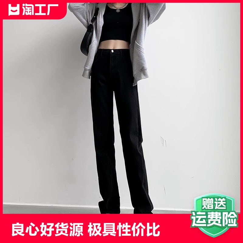 Черные прямые свободные джинсы, тонкие длинные штаны, высокая талия