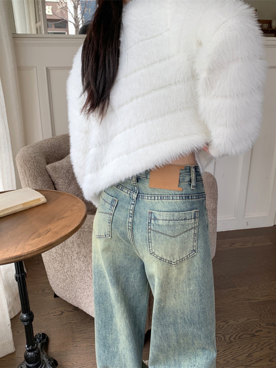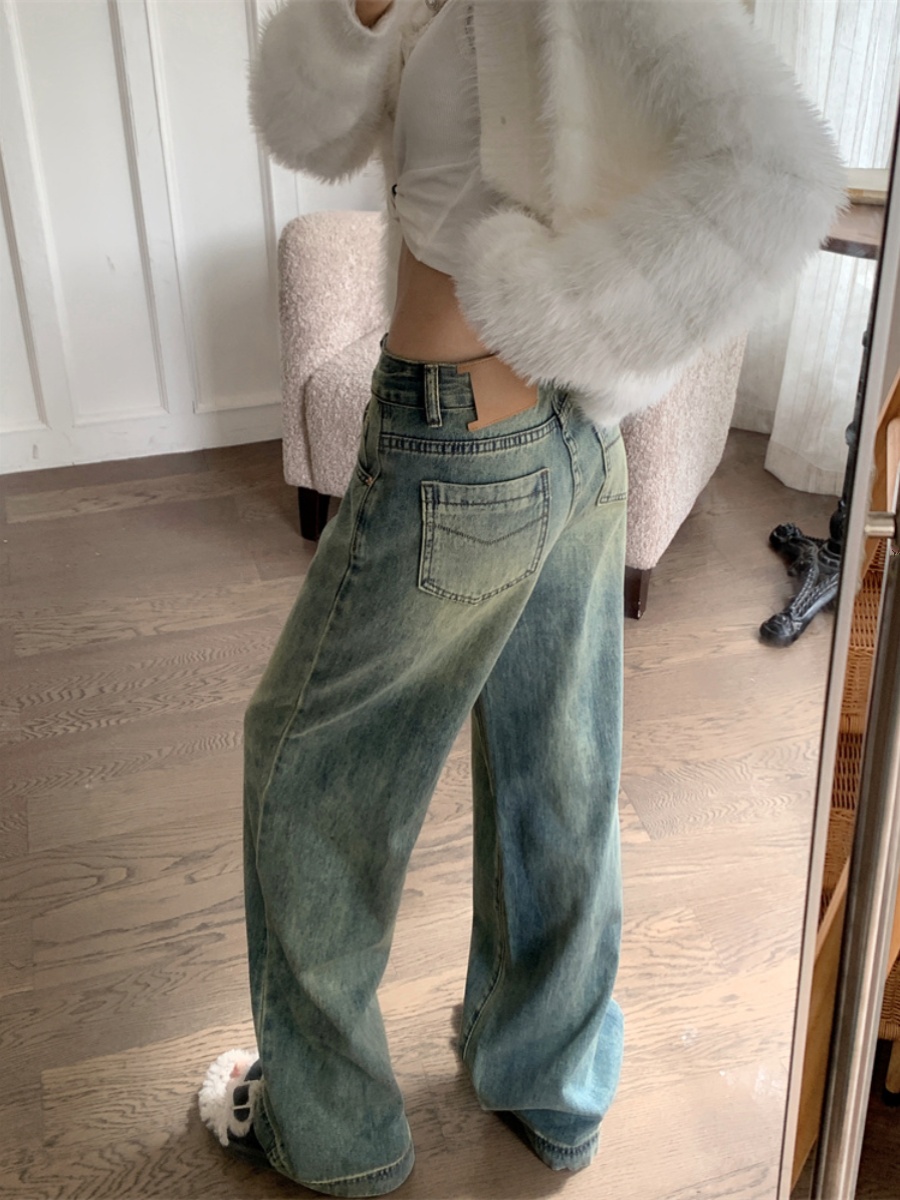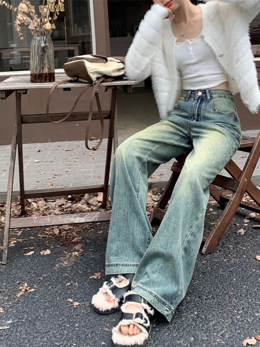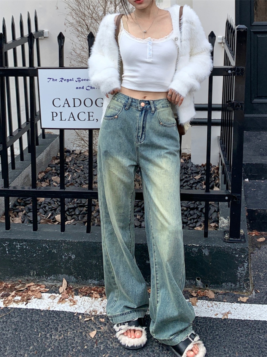 Синие джинсовые весенние приталенные штаны, высокая талия, свободный прямой крой