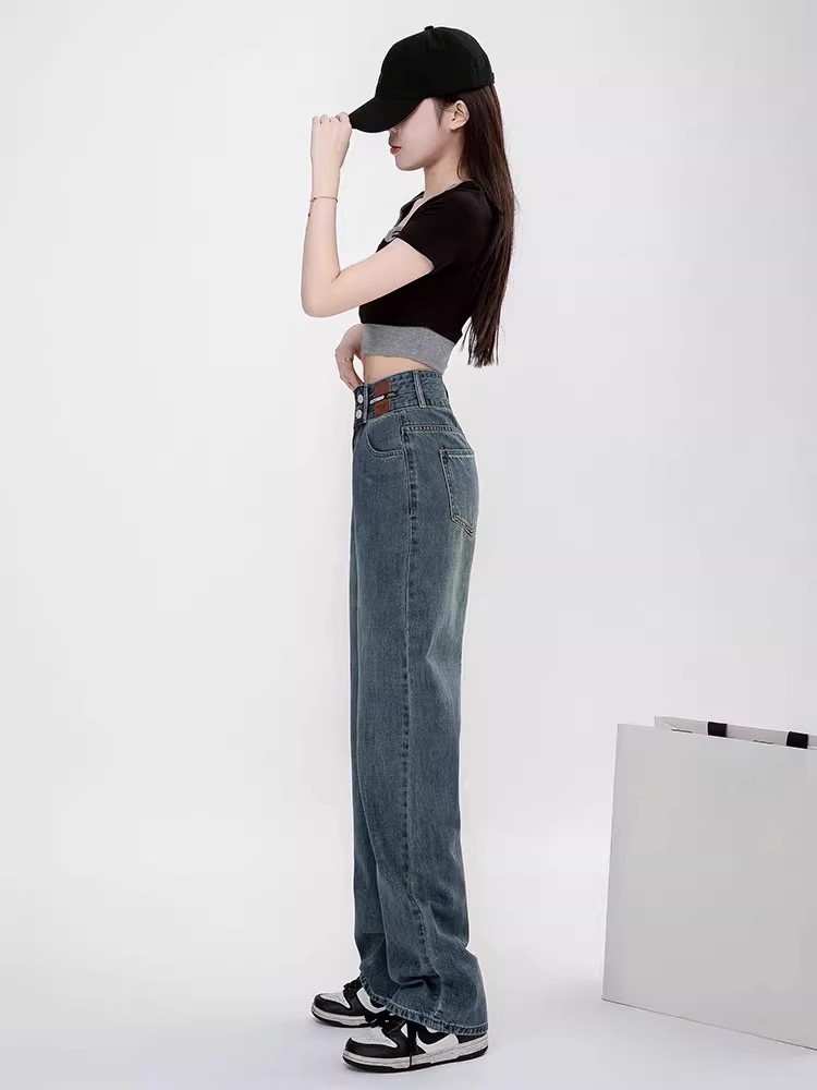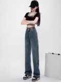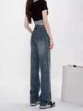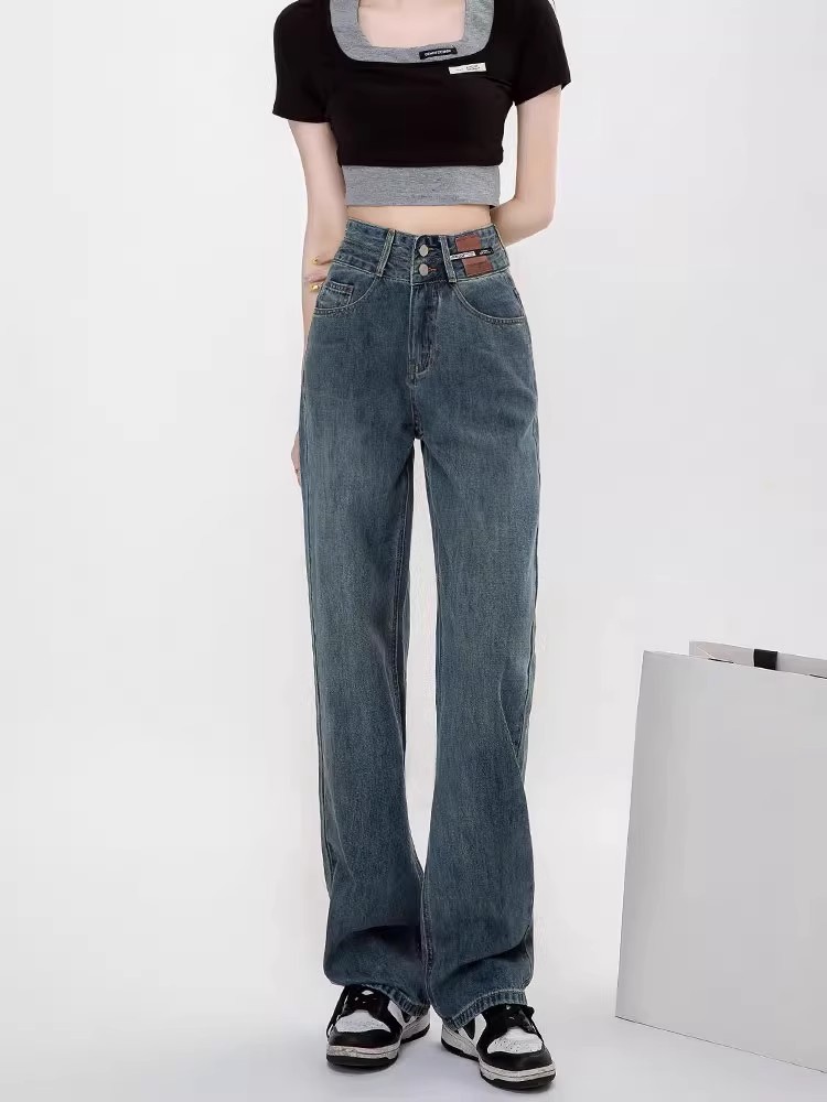 Осенние джинсы, штаны, леггинсы, высокая талия, свободный прямой крой