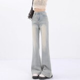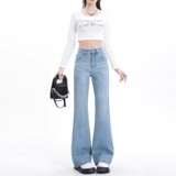 Весенние джинсы, штаны, приталенный мегафон, новая коллекция, высокая талия, свободный крой