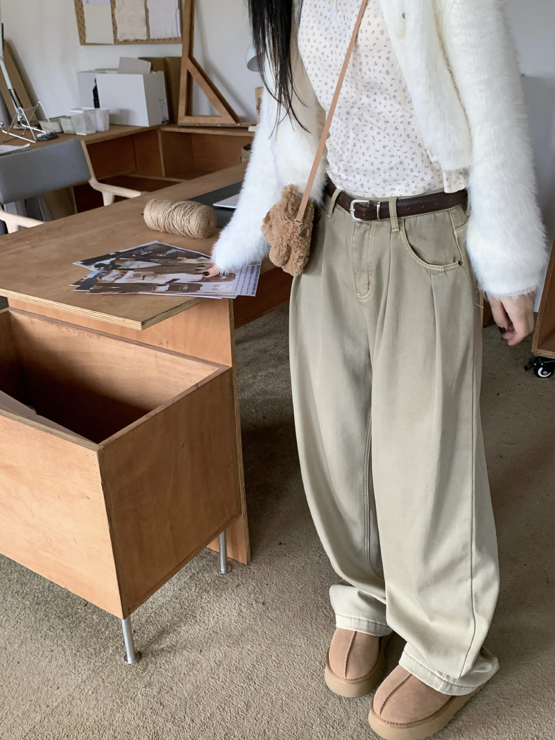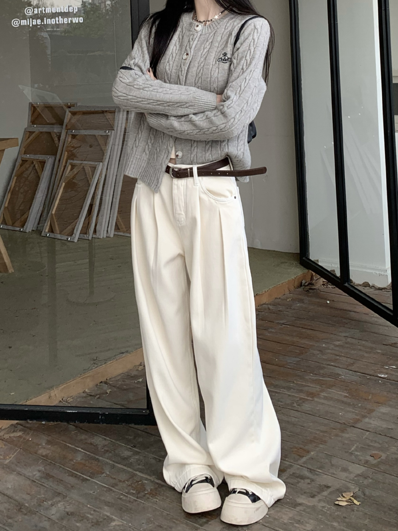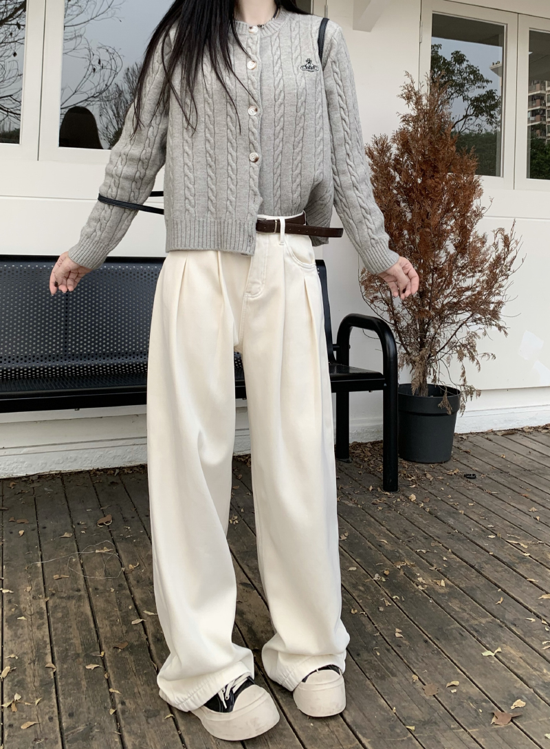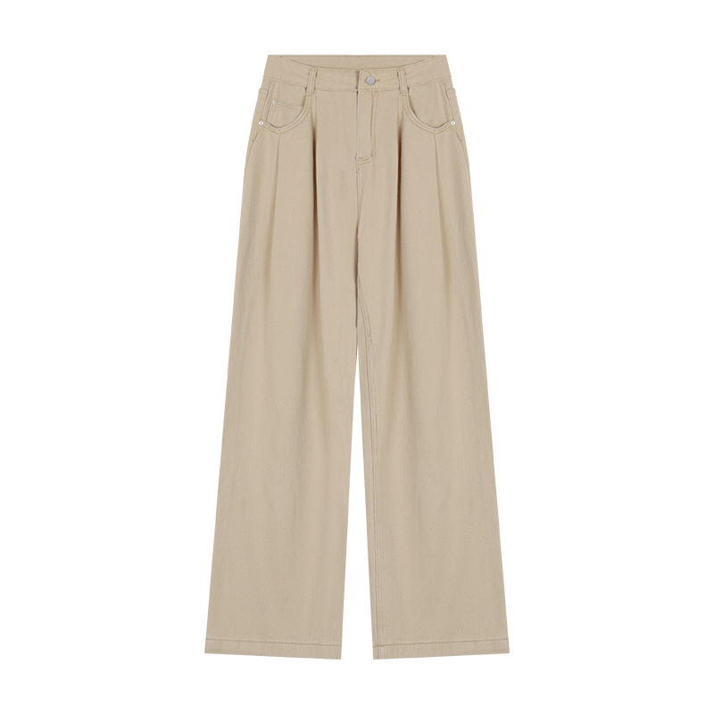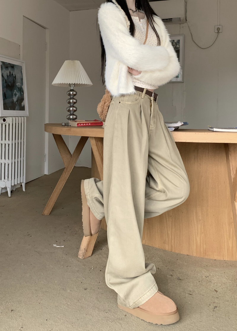 Белые ретро джинсы, осенние штаны, хаки леггинсы, высокая талия, свободный прямой крой