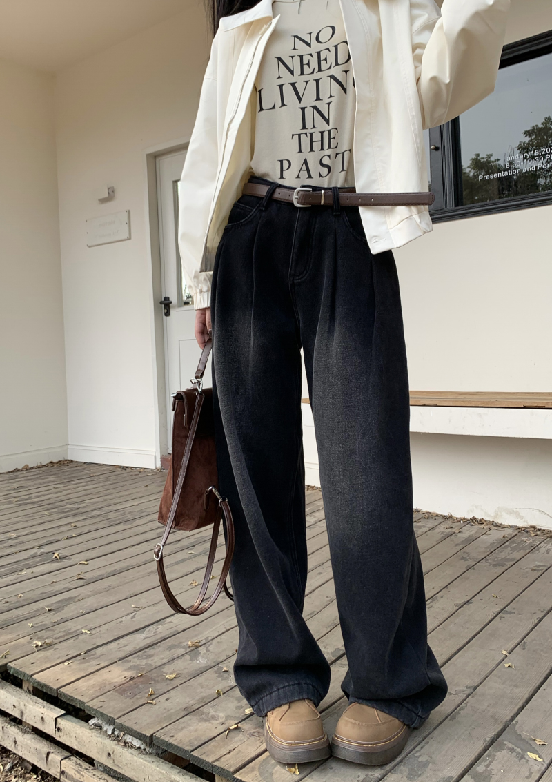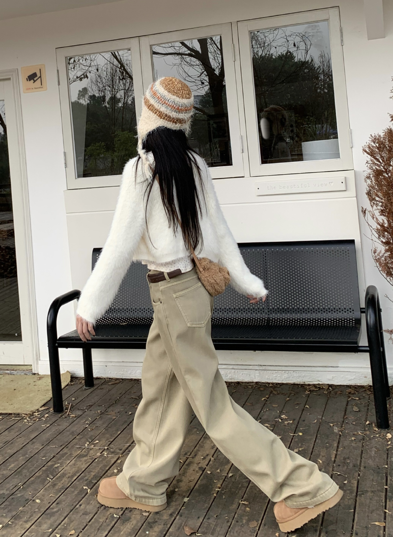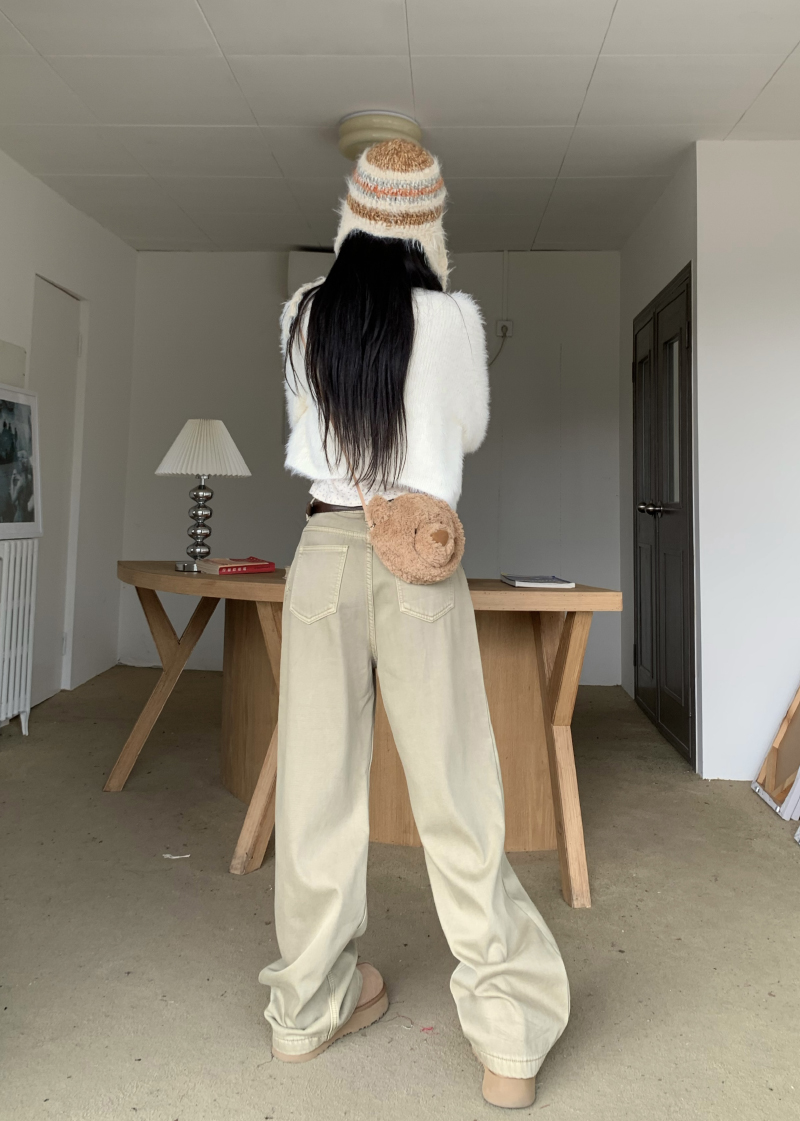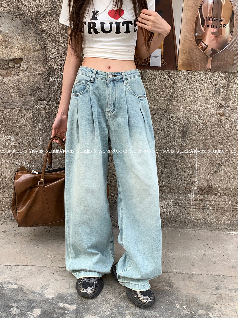 Белые ретро джинсы, осенние штаны, хаки леггинсы, высокая талия, свободный прямой крой