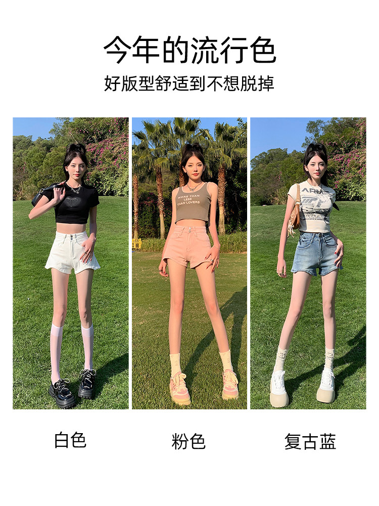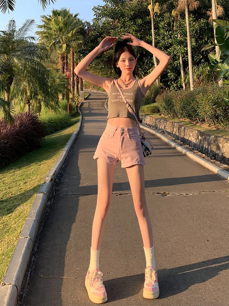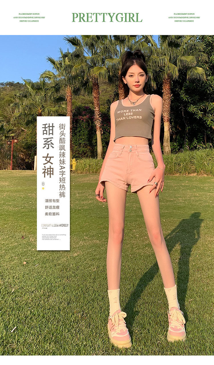 Розовая джинсовая юбка, шорты, летние тонкие приталенные штаны, высокая талия, по фигуре, подходит для подростков, А-силуэт