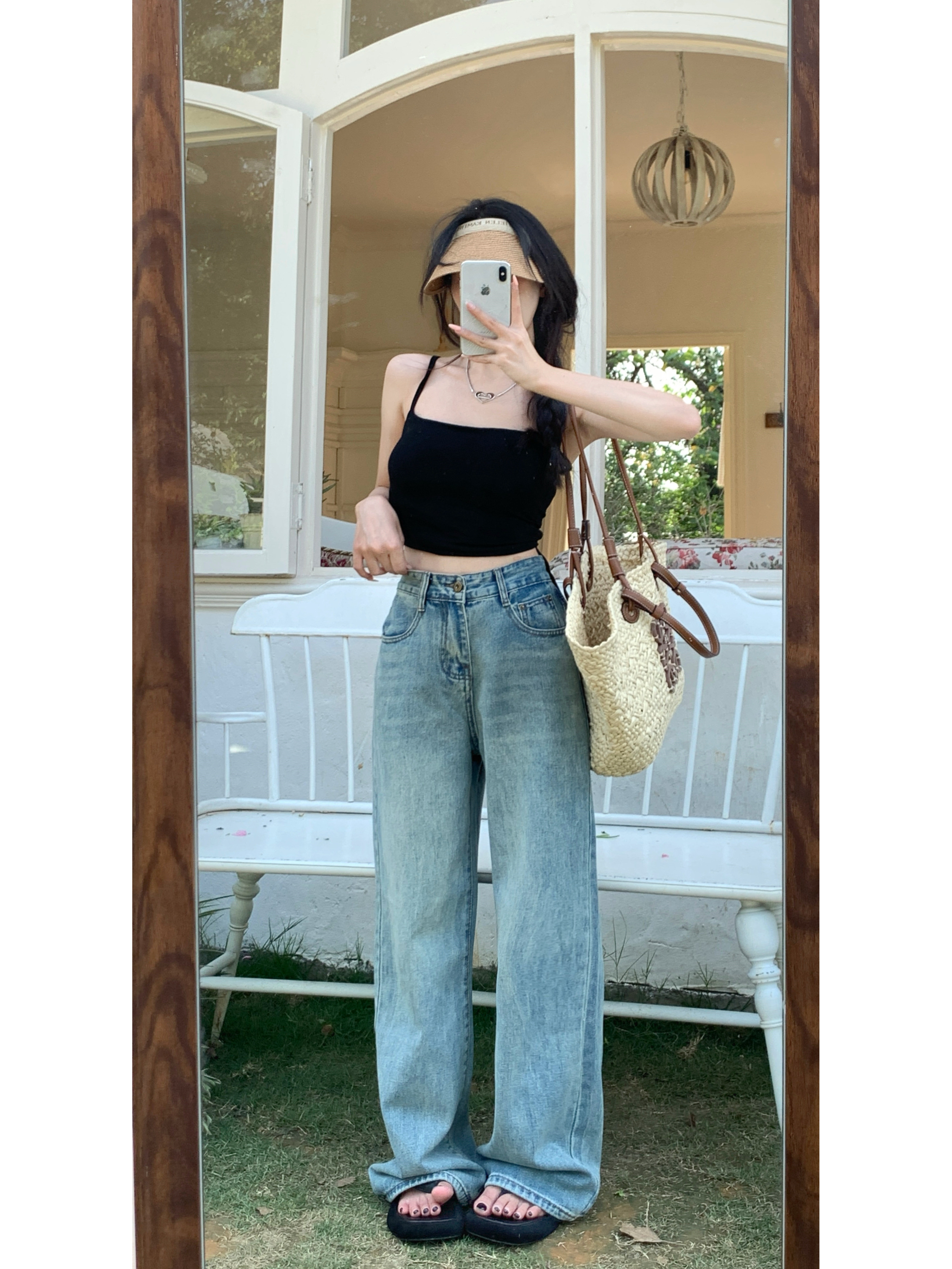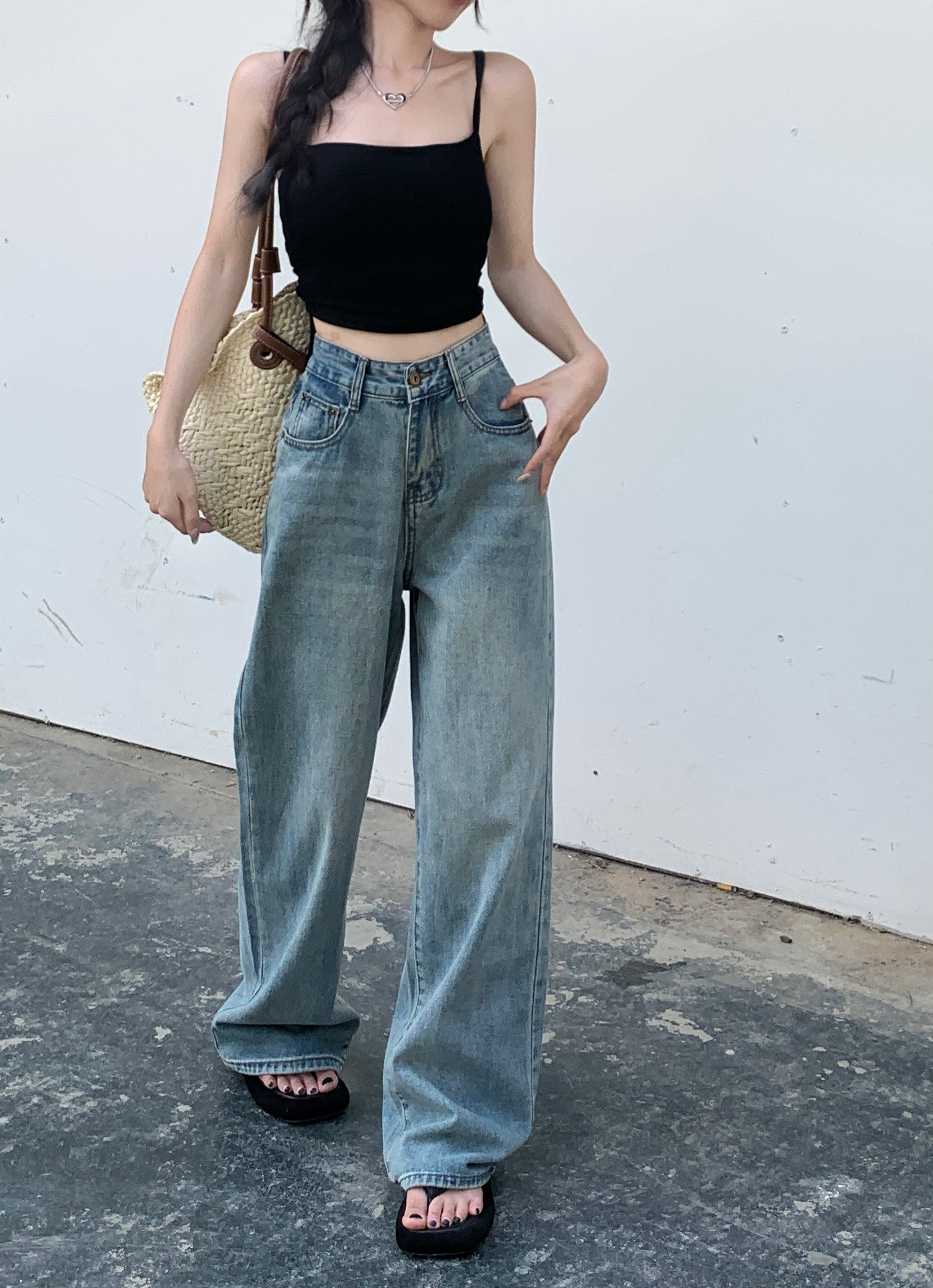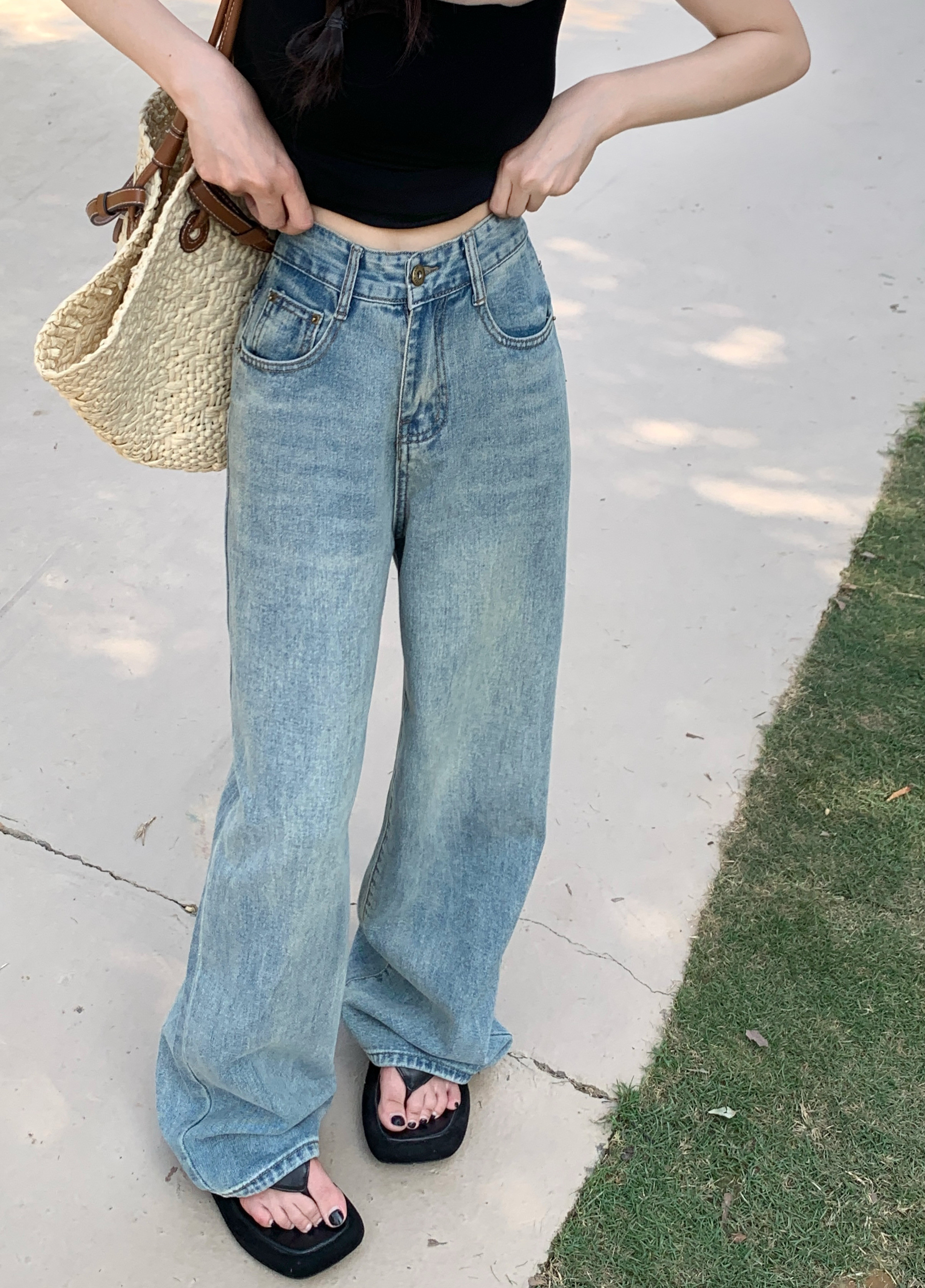 Джинсы, весенние штаны, высокая талия, свободный прямой крой