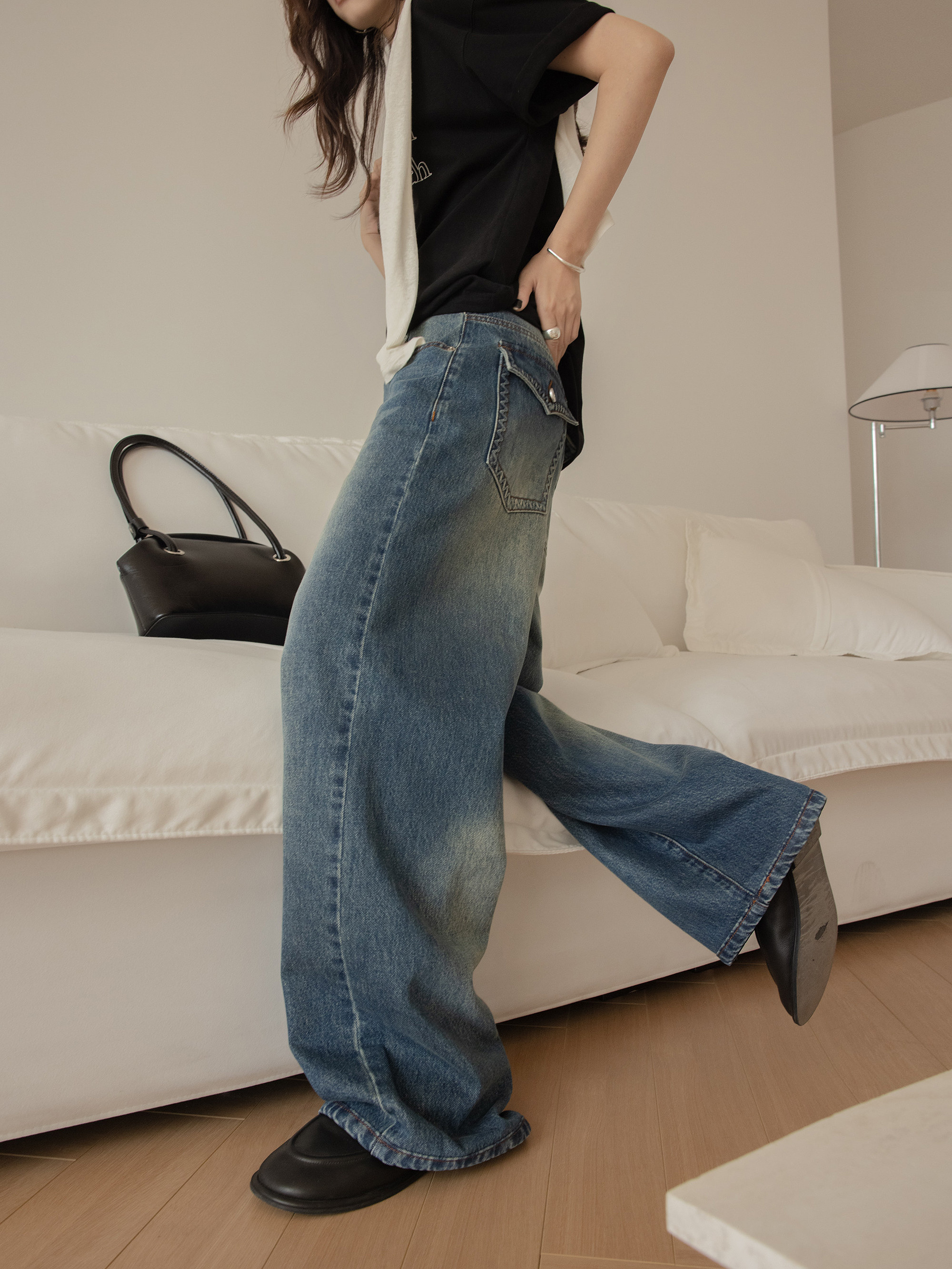 YA YILI RETROСвободные джинсовые брюки, толщина толщины четырех сезонов,
