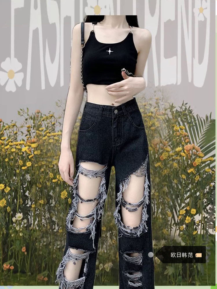 Черные джинсы, дизайнерские приталенные штаны, большой размер, 2024 года, тренд сезона, высокая талия, свободный прямой крой