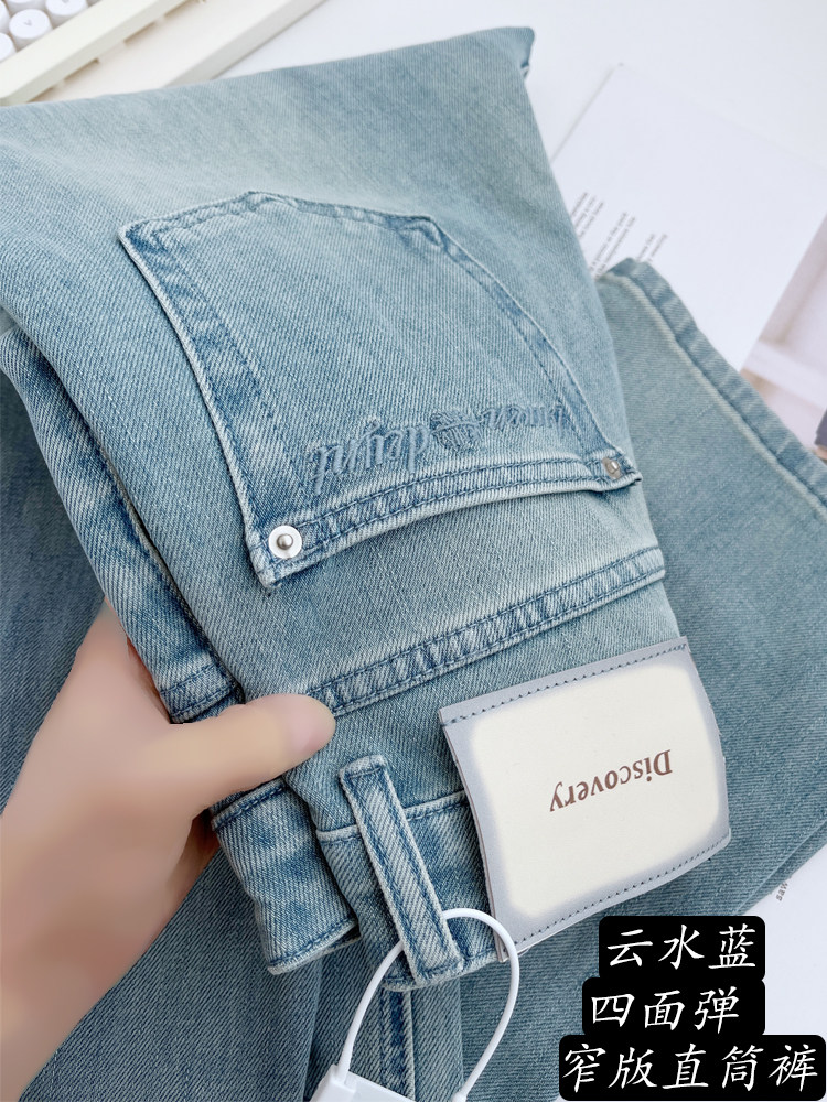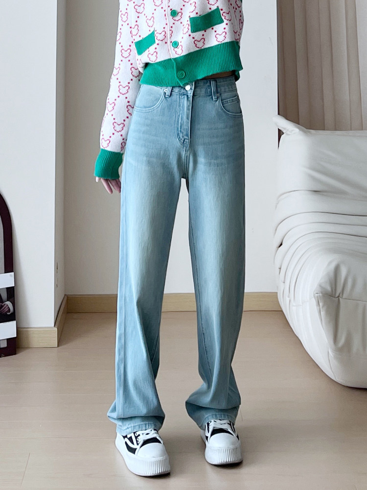 Синие весенние штаны, джинсы, высокая талия, свободный прямой крой